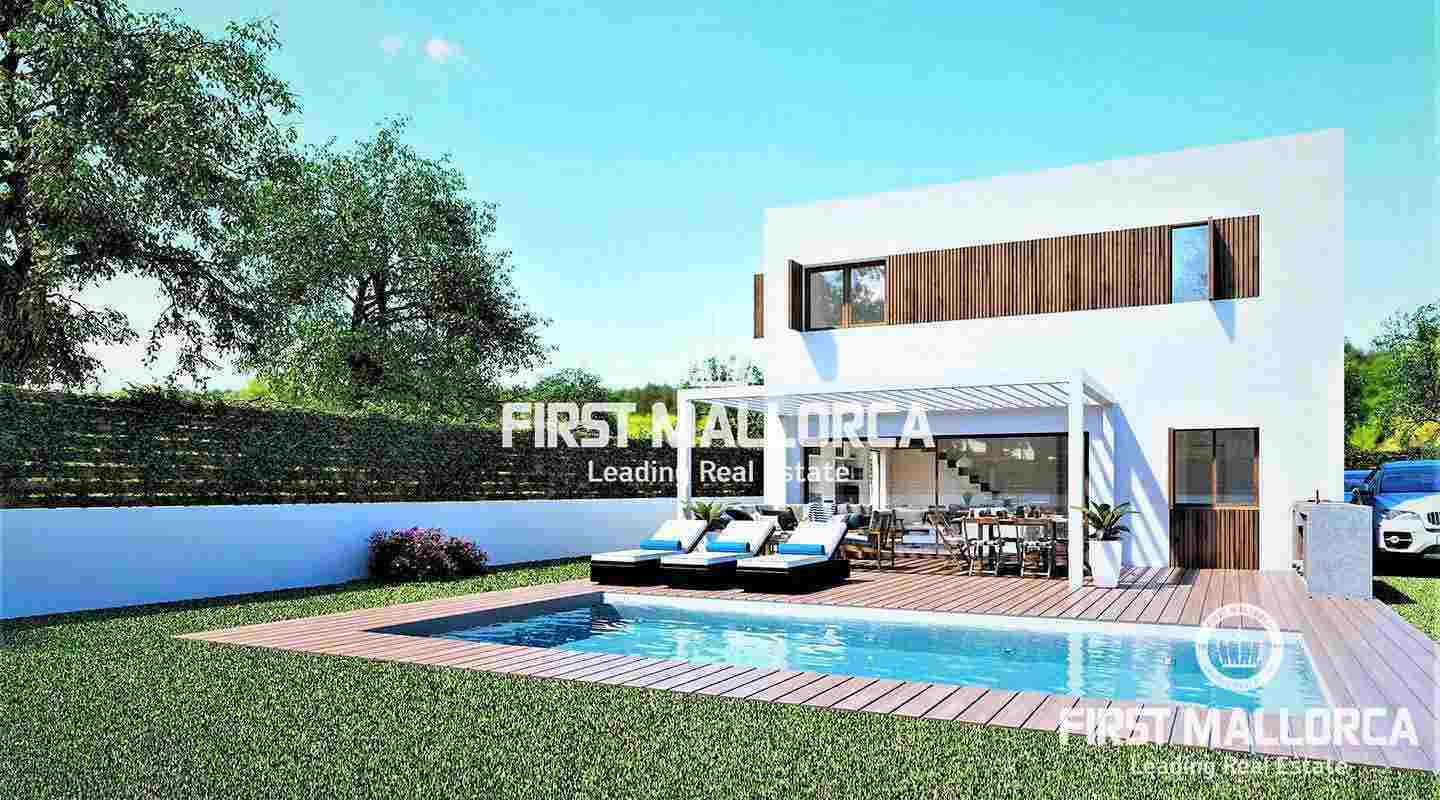 This new energy-efficient house with modern architecture enjoys a beautiful outdoor area with pool and bioclimatic pergola.