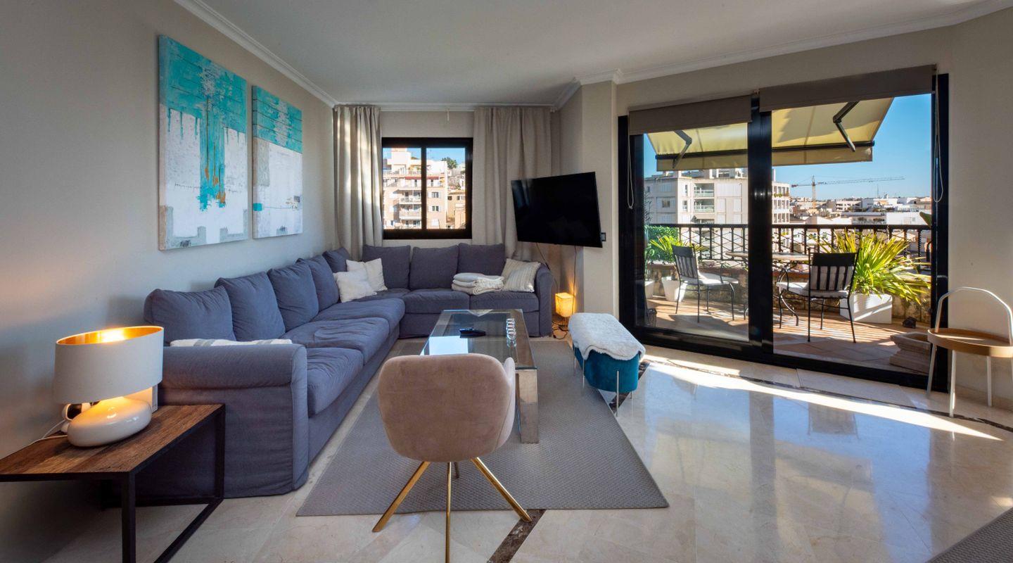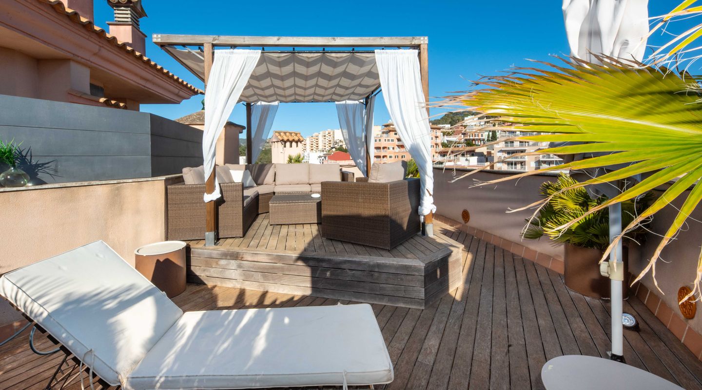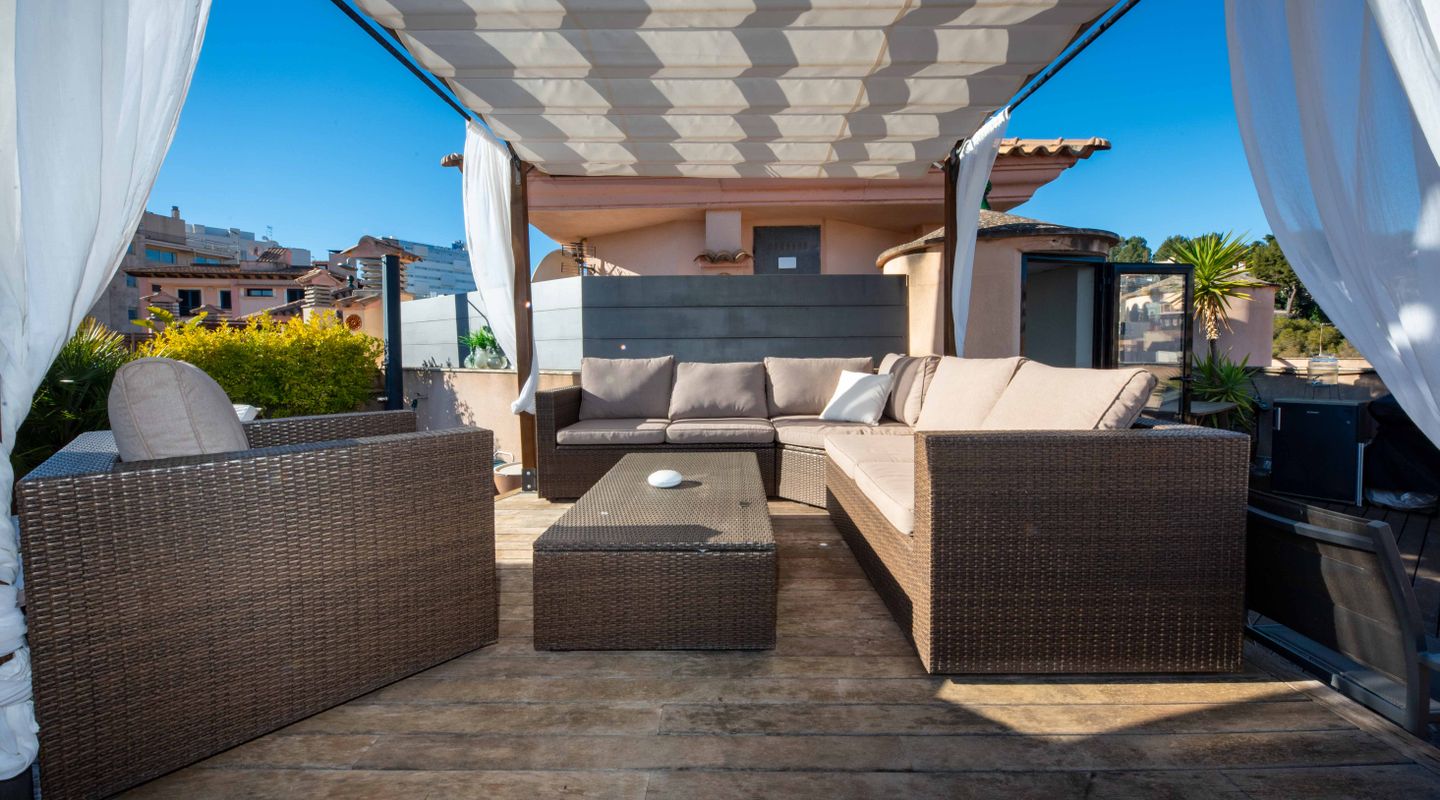 An absolute highlight is the spacious roof terrace with its magnificent views of the city and the port of Palma de Mallorca. From here, you can also enjoy a partial sea view – the perfect place to relax or watch the sunset.