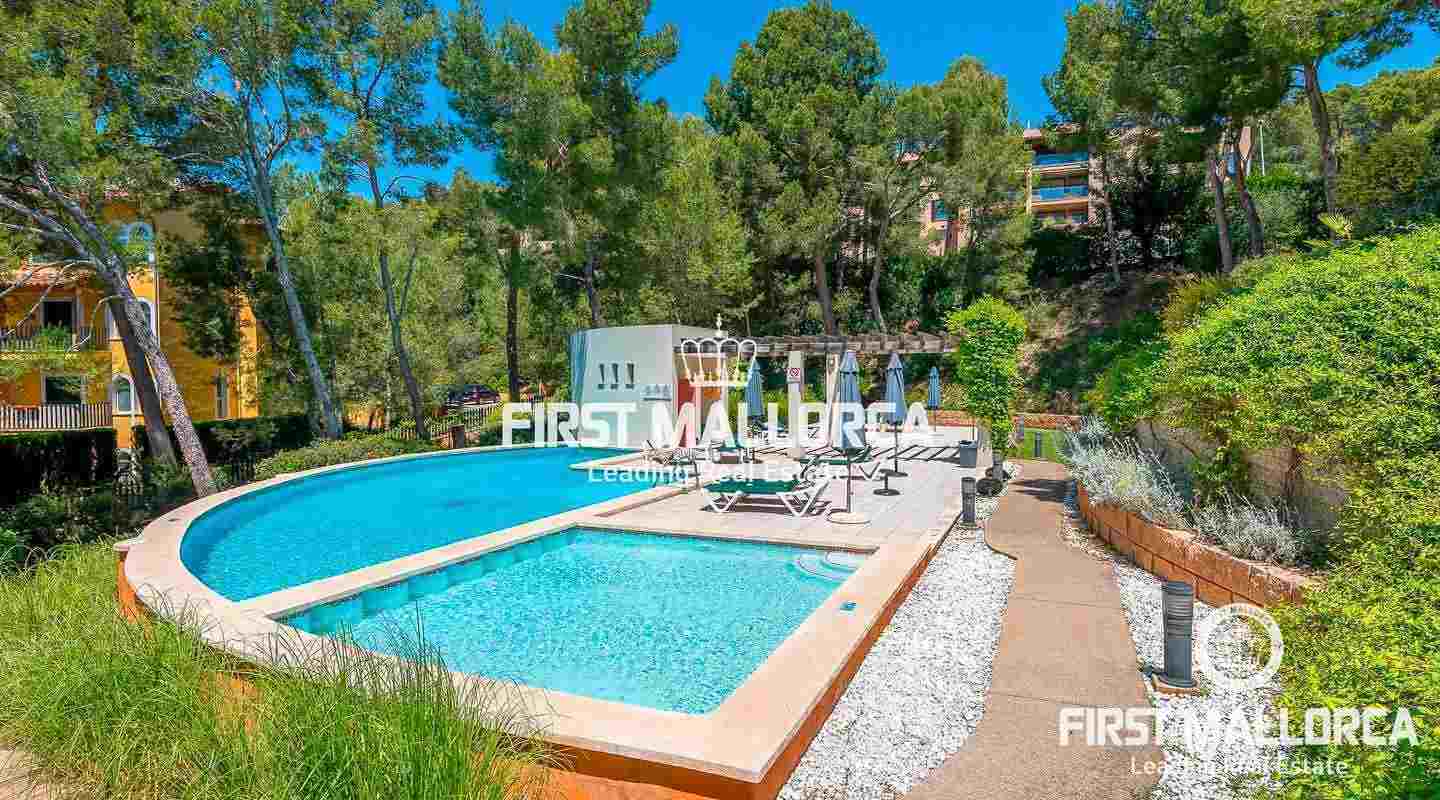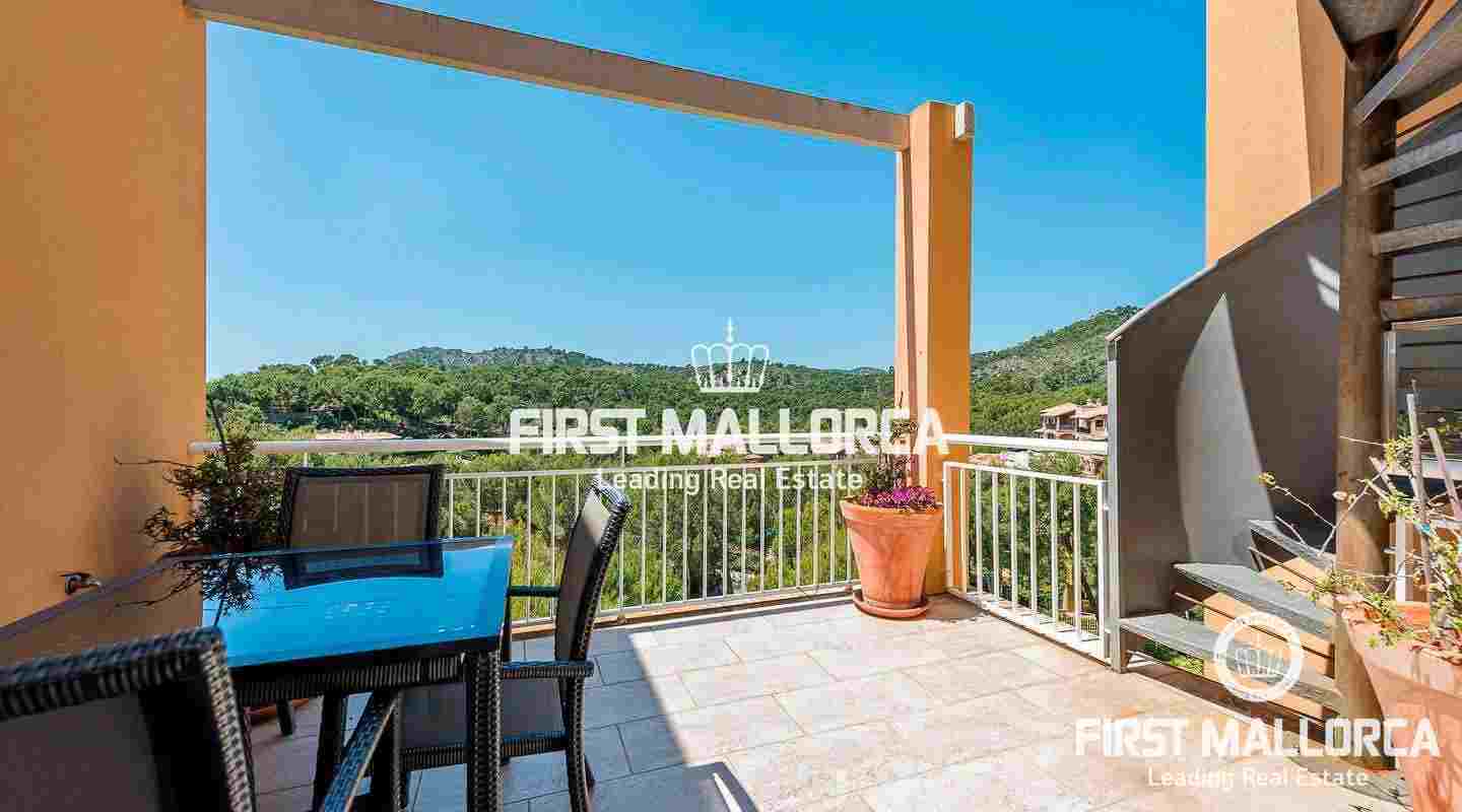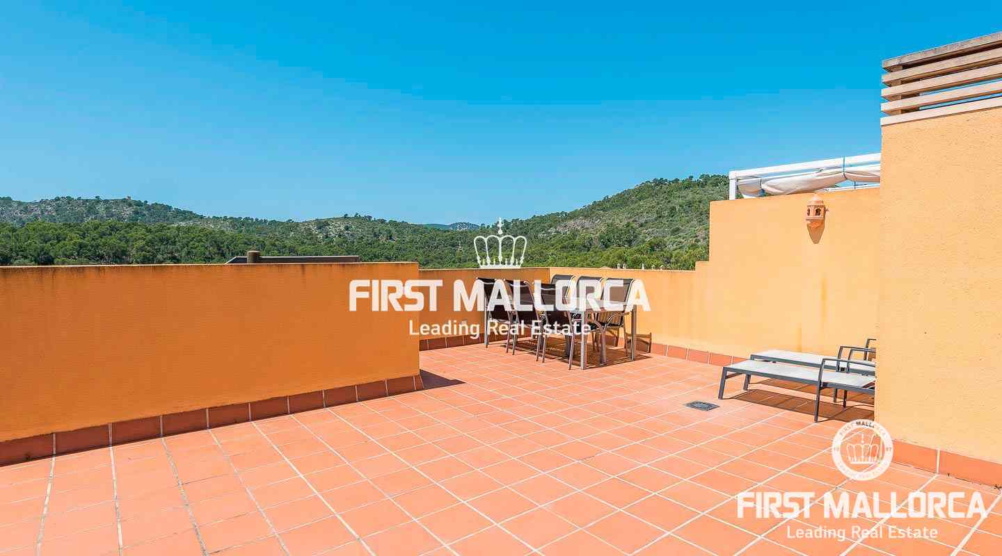 This excellent penthouse with a spacious roof terrace enjoys a fantastic location in a pleasant garden environment, just 200 metres from the beautiful beach of Cala Fornells.