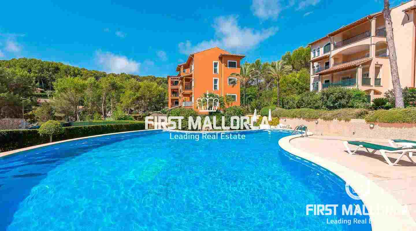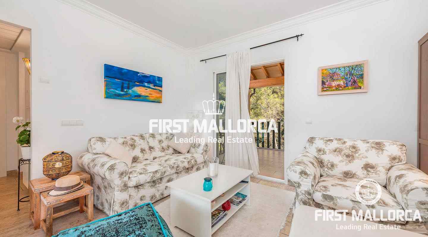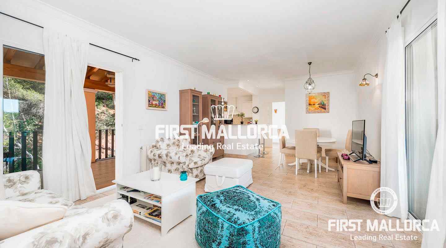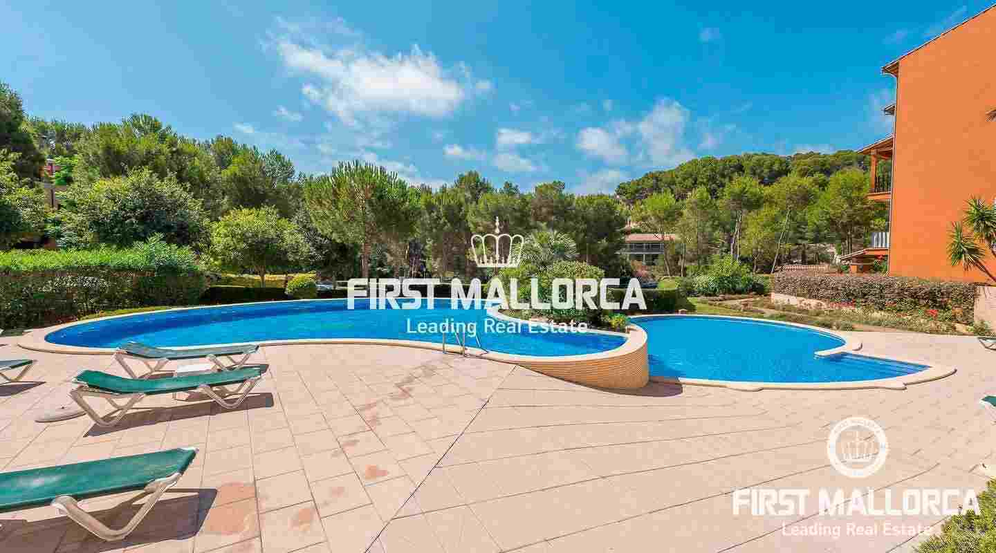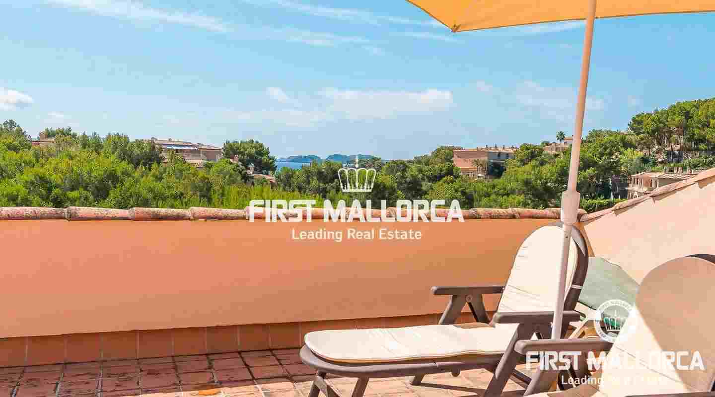This delightful penthouse enjoys a very spacious roof terrace of 49 m² with splendid views over the community swimming pool, the garden and to the sea. The property is located only 3 minutes walk from the beautiful bay of Cala Fornells and just a few minutes from shops, restaurants and bars.