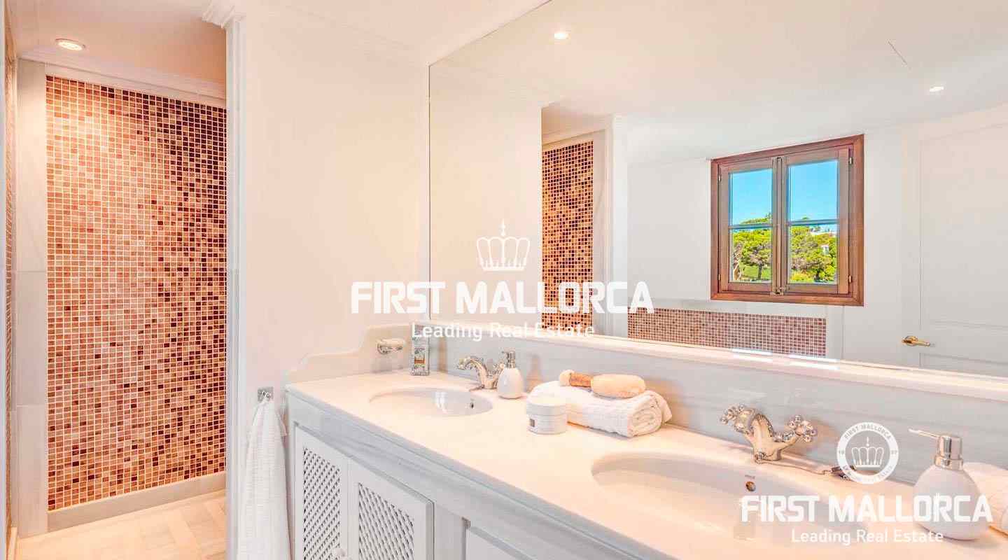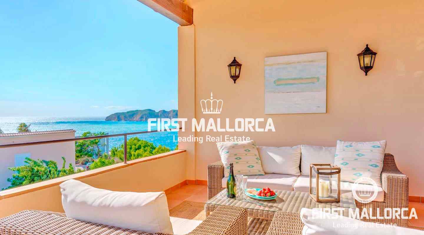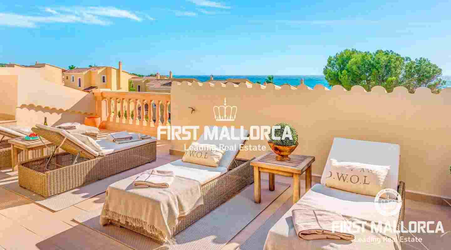 This penthouse in mint condition offers spectacular views of the sea and the emblematic Malgrat islands from its privileged position on the sea's edge in a sought-after area of Nova Santa Ponsa. The property, which is sold partially furnished, is unusually bright and sunny thanks to its south orientation and it offers a very attractive and relaxing Mediterranean atmosphere thanks to its spacious live-out terraces. The gated community is extremely well-kept with a large swimming pool, gardens and it offers 24 hours security as well as underground parking and a storage room. The exclusive marina of Port Adriano is within a 10 minute walk and the centre of Palma is reached under 20 minutes by car.