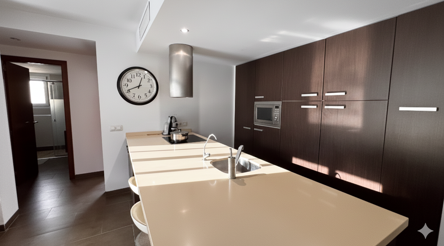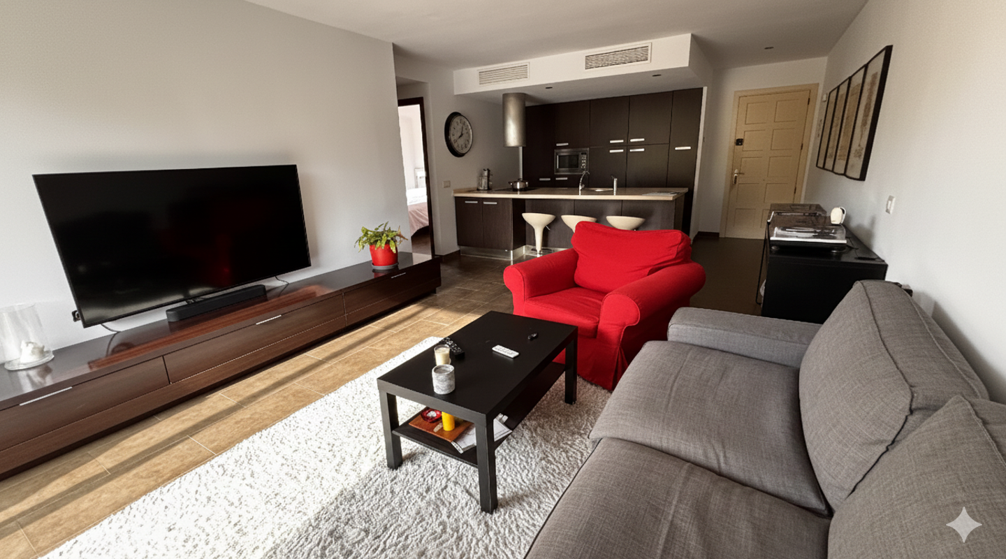 The apartment features two bedrooms and a contemporary bathroom equipped with high-quality Bosch appliances. Additional features include a private rooftop terrace with jacuzzi, energy-efficient double-glazed windows, air conditioning, and an elevator, ensuring maximum comfort.