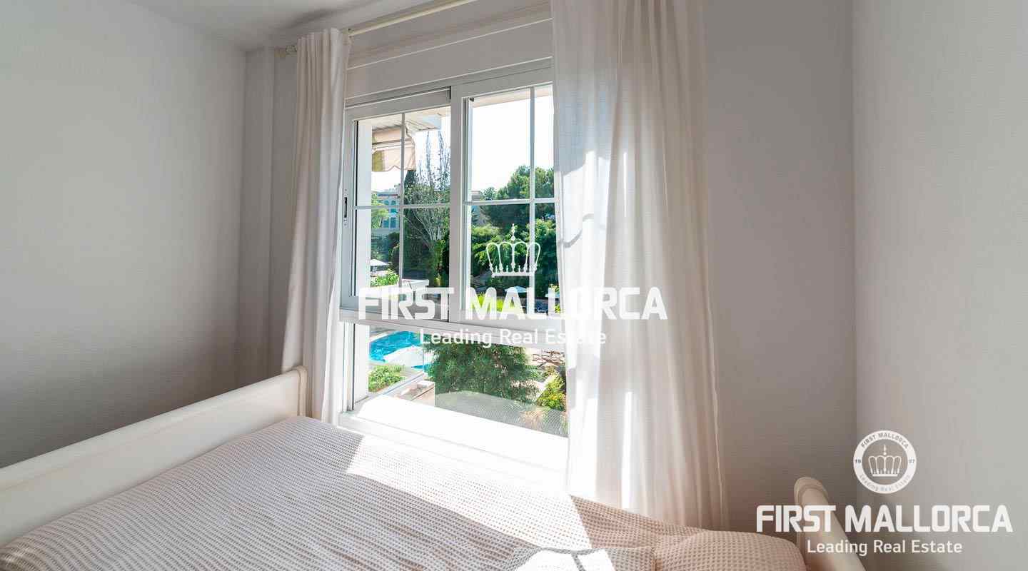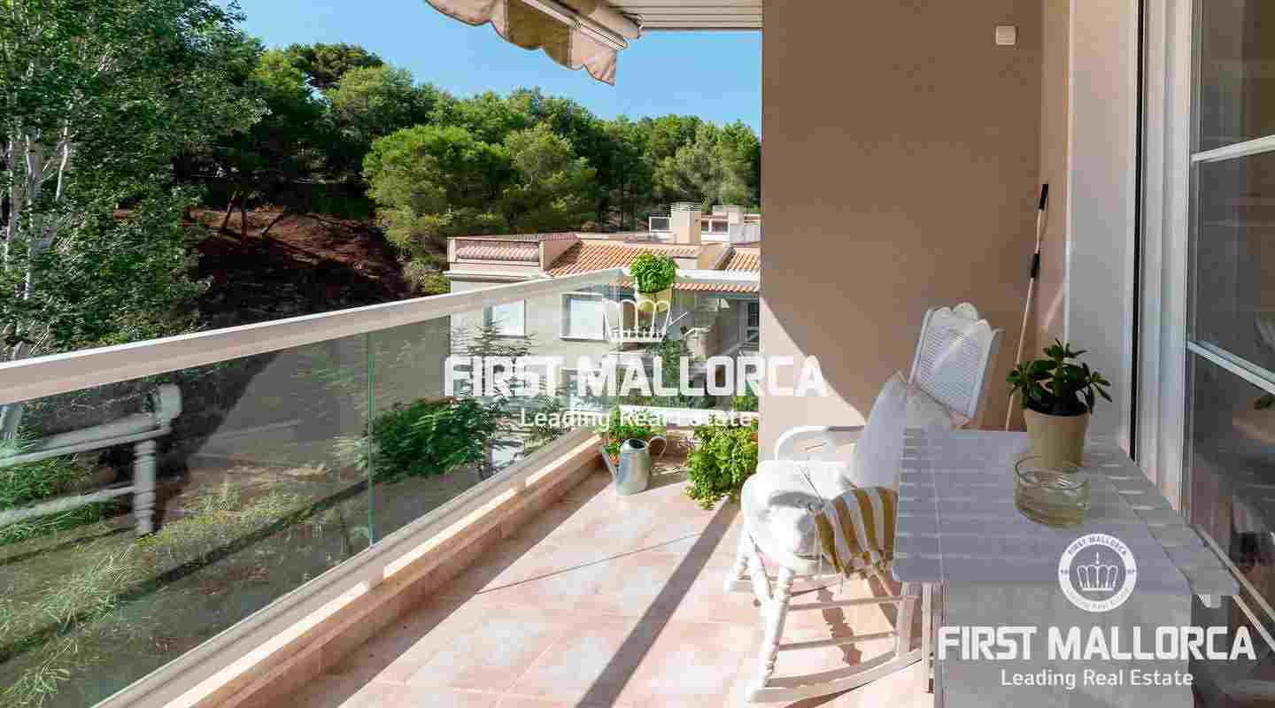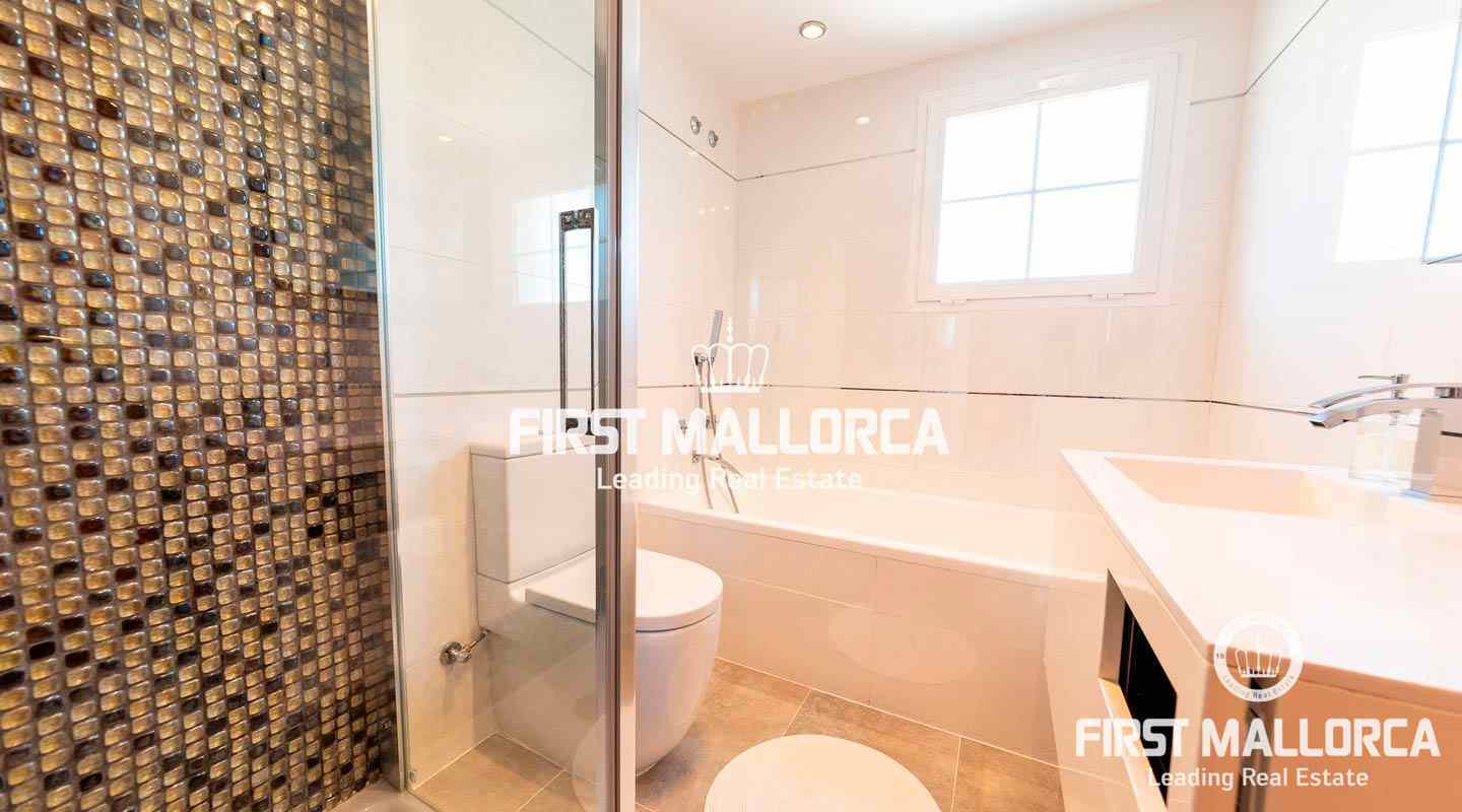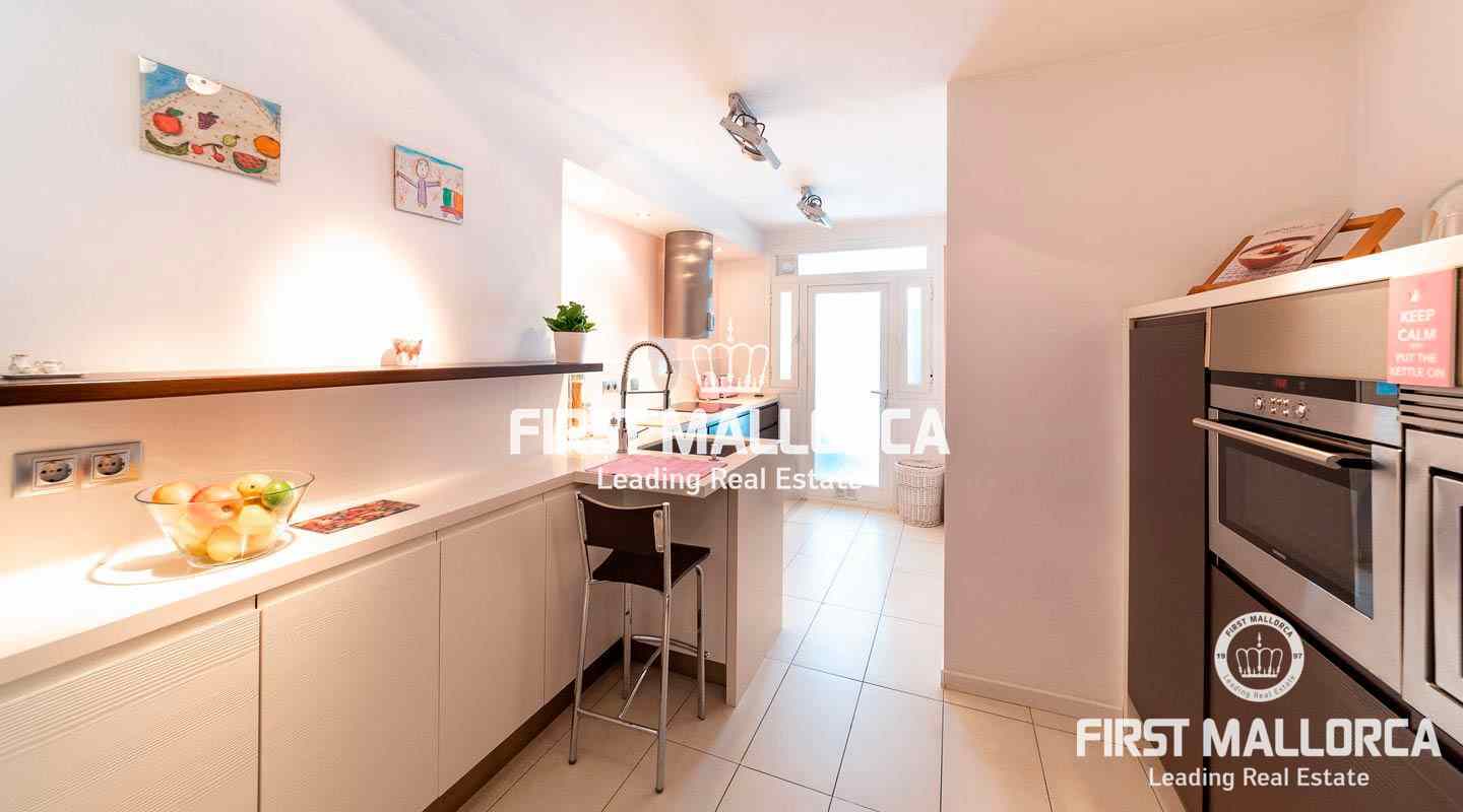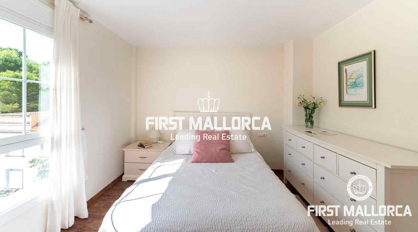 This penthouse in a well-kept, popular complex in the Bonanova district of Palma impresses with its large roof terrace and the view of the Castell Bellver. The east-facing apartment offers 3 bedrooms, 2 bathrooms, an equipped kitchen, living room, a utility room and a guest toilet. The residential complex offers 2 community pools with an outside toilet.