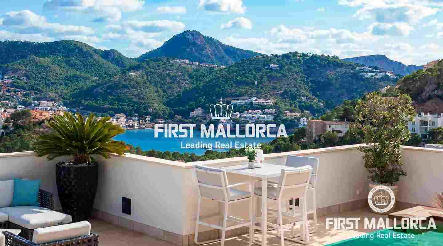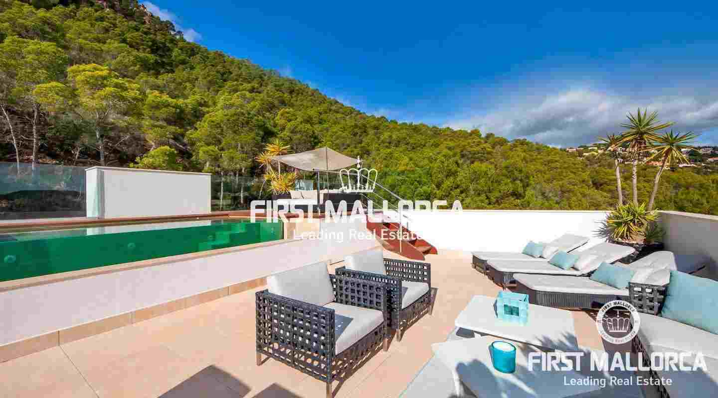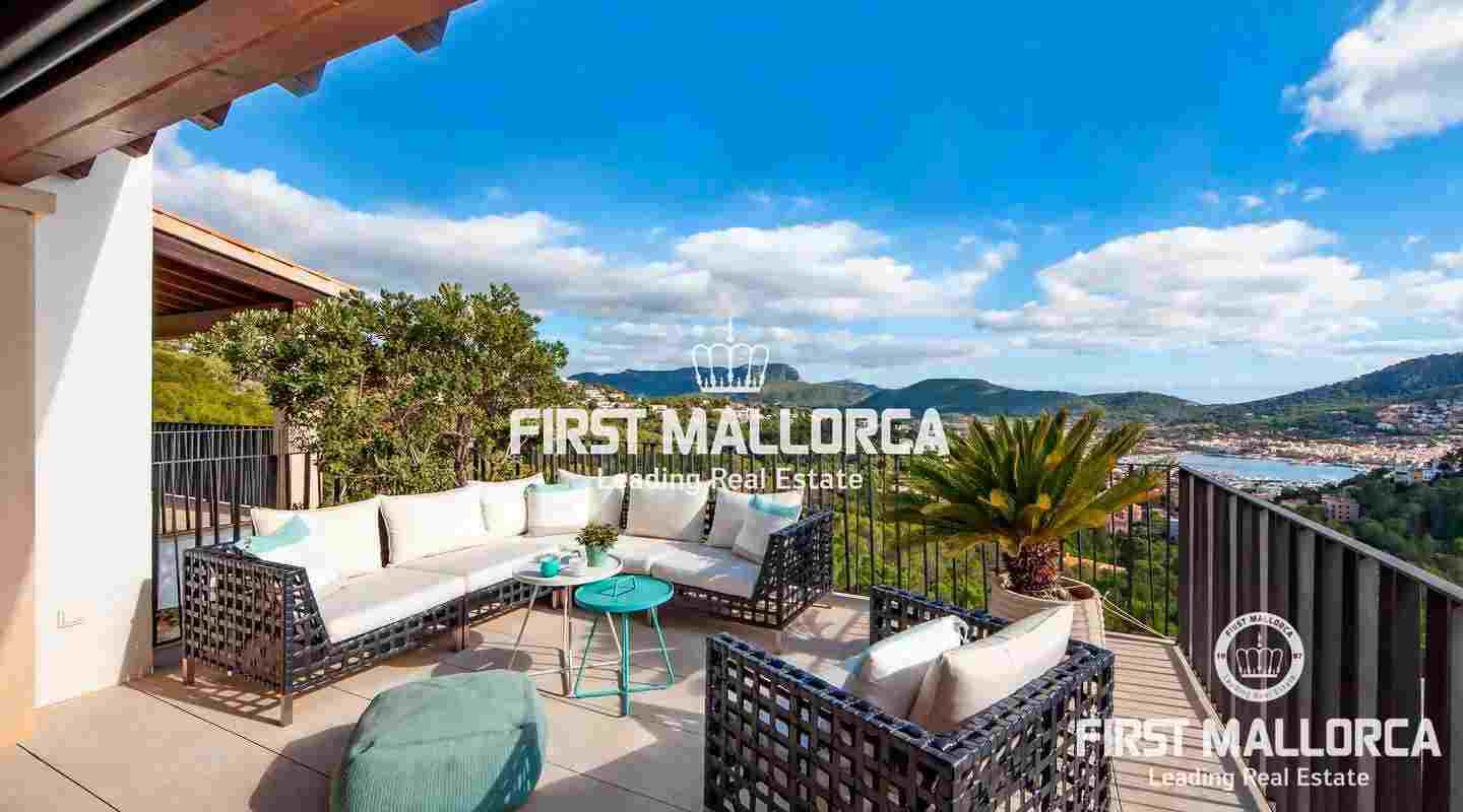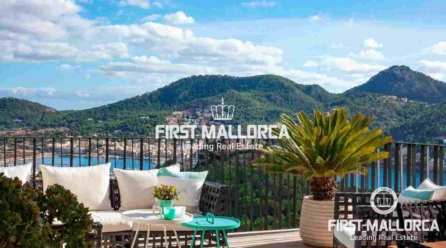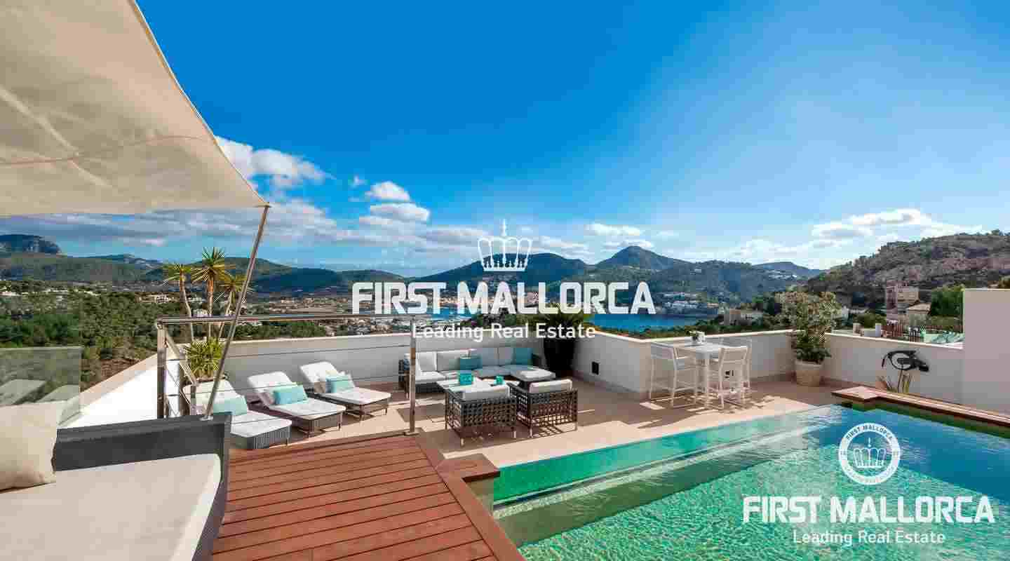 Penthouse with 3 bedrooms in popular location of Port Andratx. In addition to panoramic views of the harbor and the mountains, this modern property offers a rooftop terrace with plunge pool where you can enjoy the sun all day long - about 300 days a year.