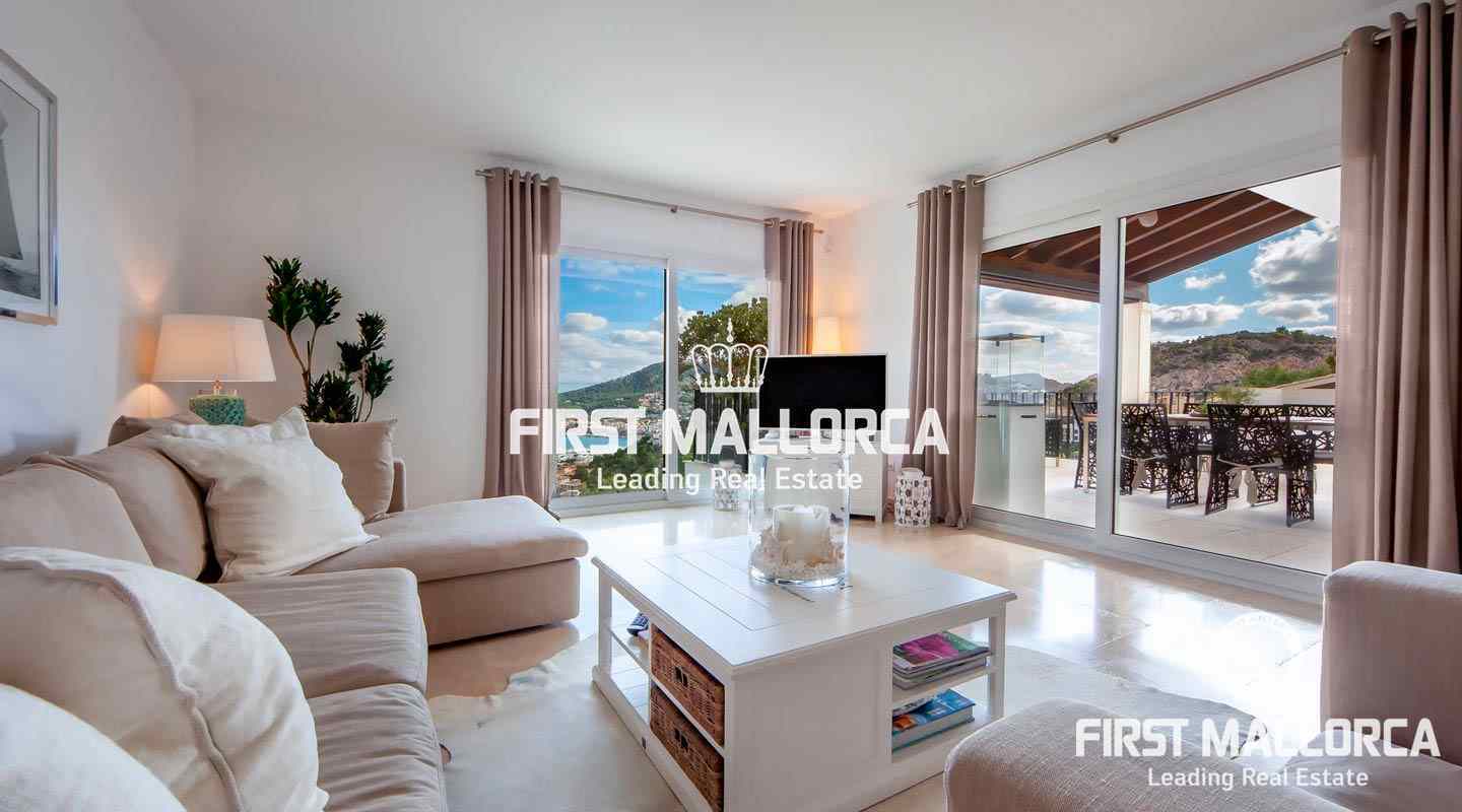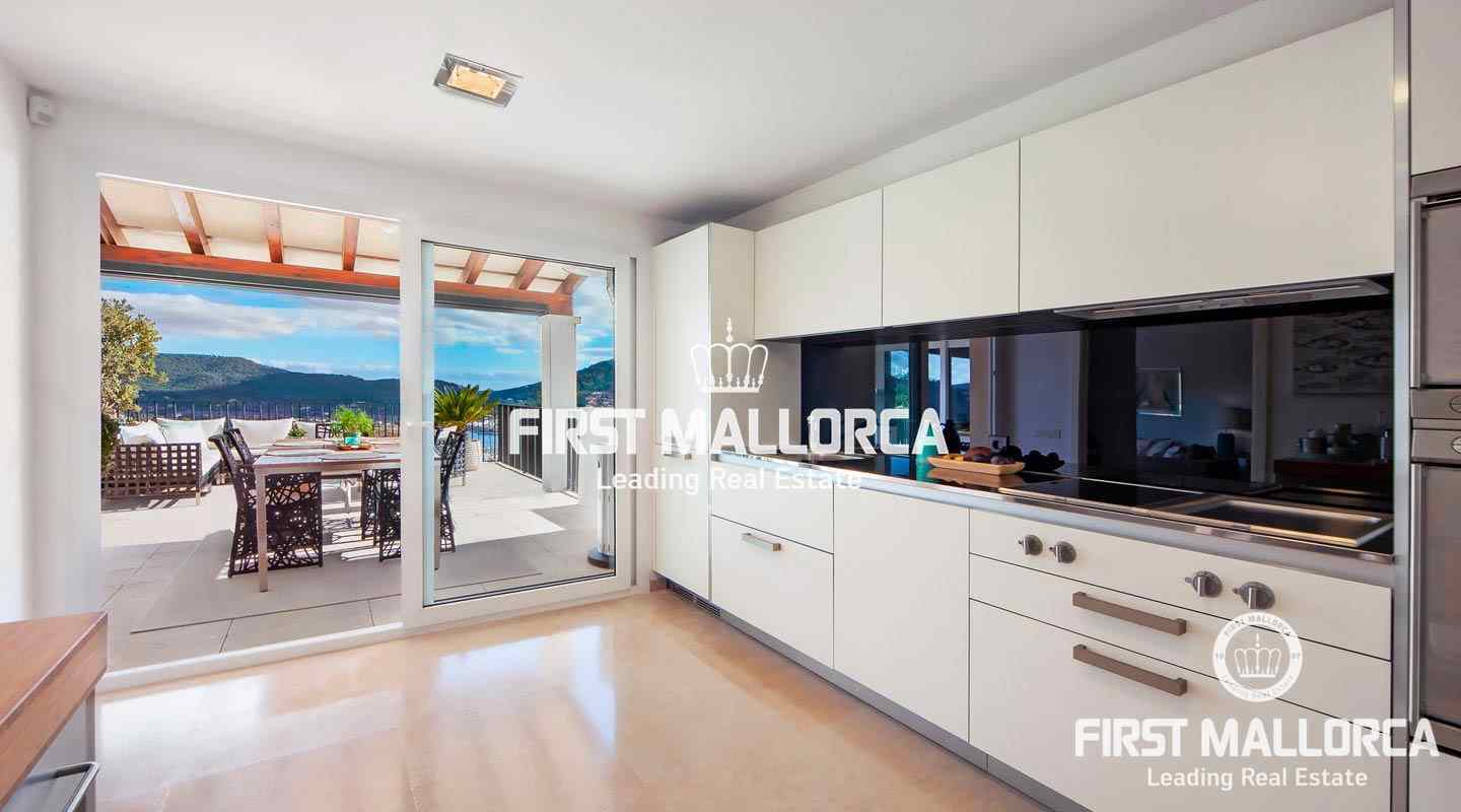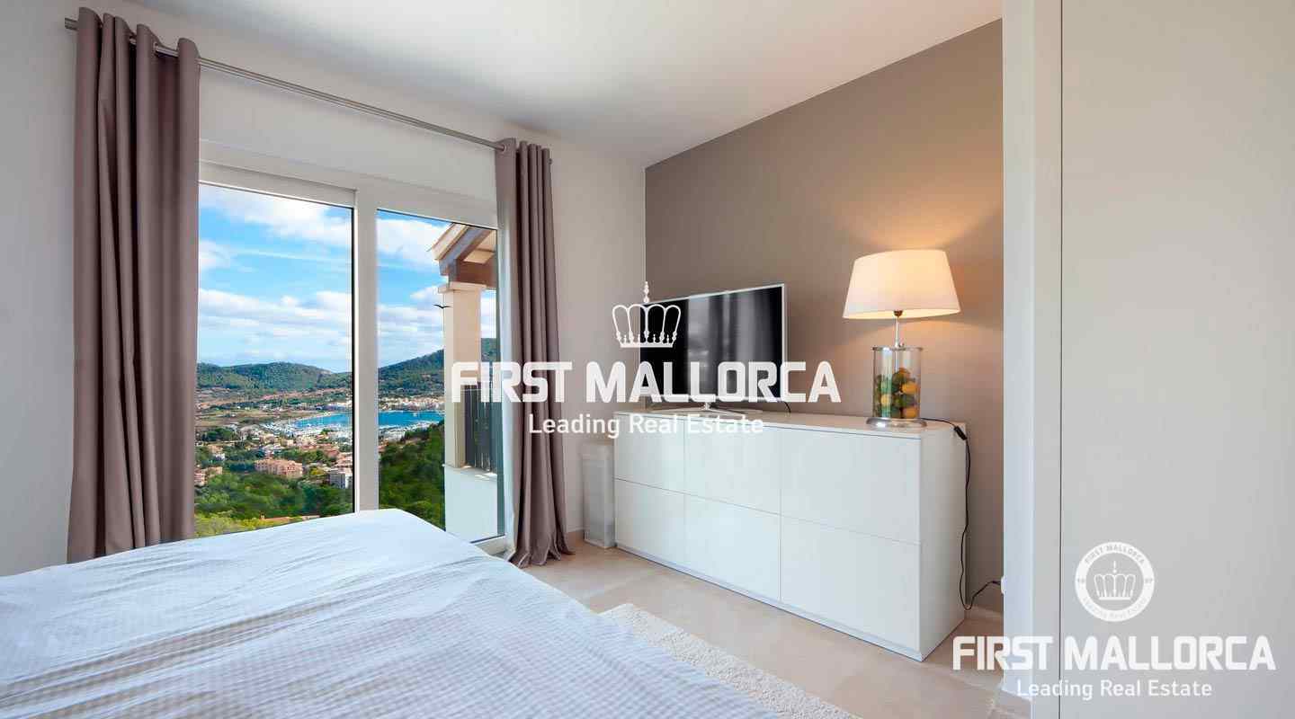 The kitchen is fully equipped and open plan. From the living area you can access the cozy terrace. Due to the smooth climate on the sunny island you can even relax there in winters. The interior is of very high quality and the community, thanks to only 18 units, very quiet. Further you will find air conditioning and underfloor heating as well as a spacious commuinty pool. The port of Andratx is only a few minutes away, as well as numerous bays and sandy beaches.