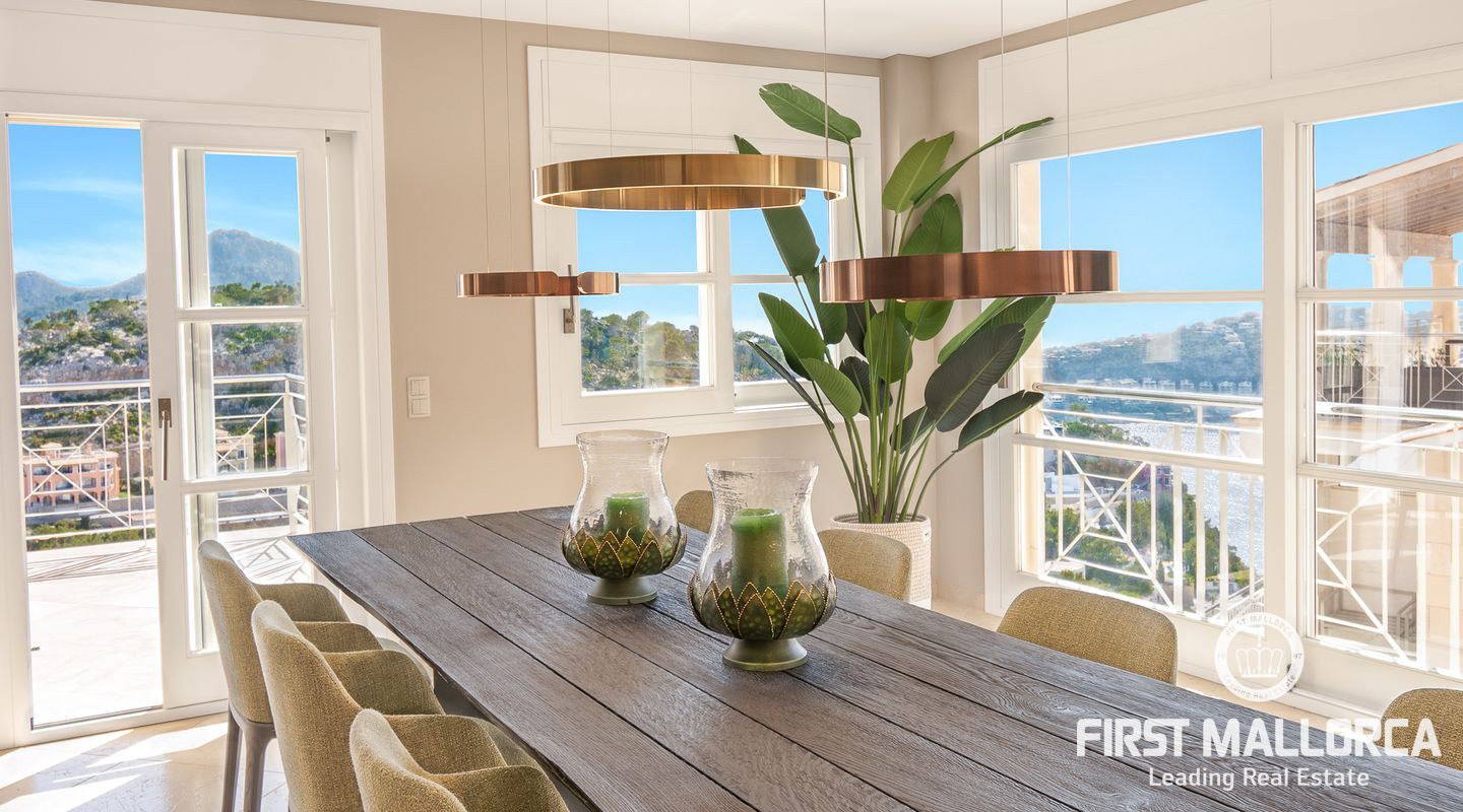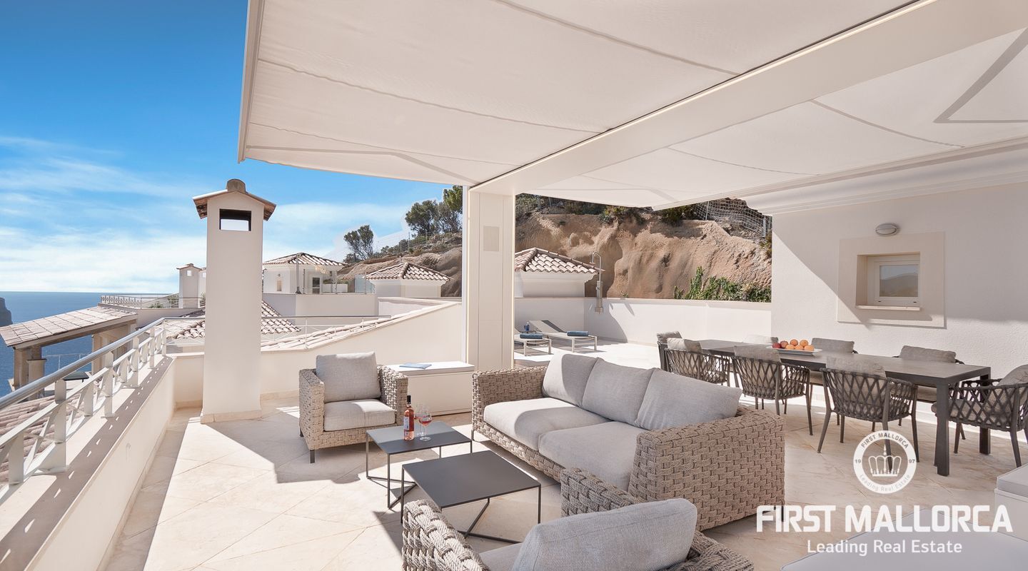 This luxury penthouse in the best residential comunity in Port Andratx offers incredible views of the entire harbour as well as open sea. Consisting of 3 spacious en-suite bedrooms and open plan designer kitchen, fantastic covered and open terrace accessible from the living room as well as impressive roof terrace accessed privately from the apartment, completely fitted with outdoor shower, outdoor furniture, a private BBQ area and an option to install a whirlpool. The property is sold fully furnished with high quality designer inventory. Admire the vibrant harbour with the fishermen´s boats and luxury yachts coming in and out, as well as the Unesco World Heritage Tramuntana mountains in the backdrop.