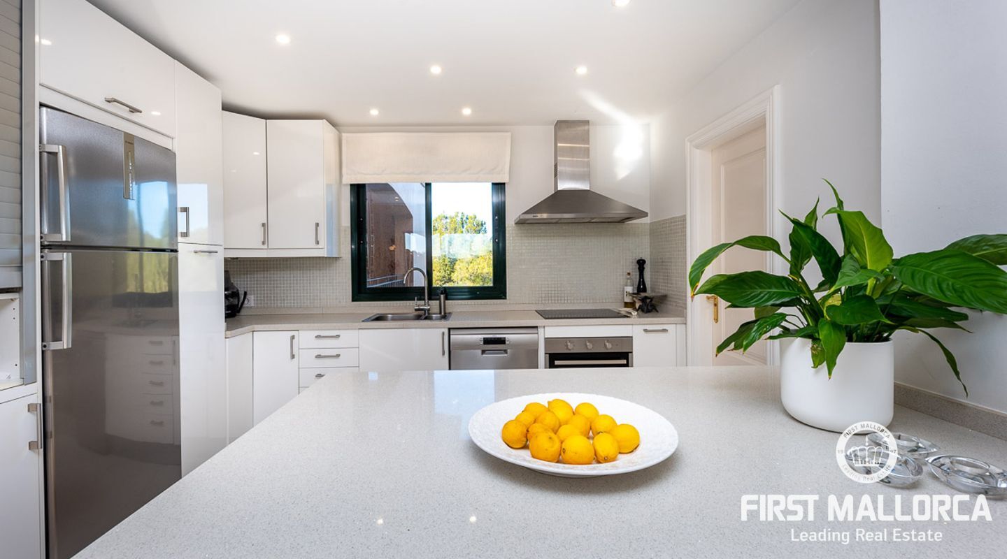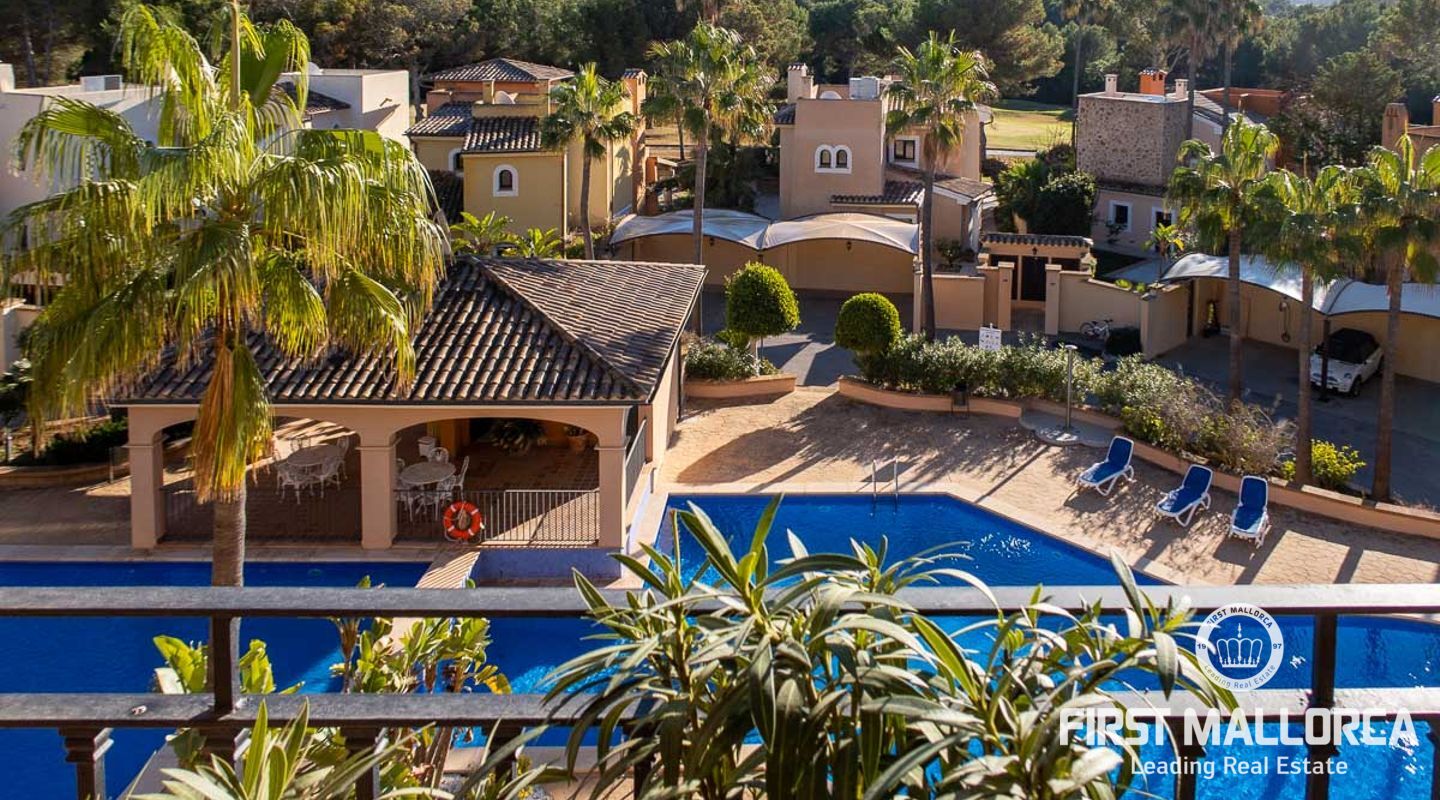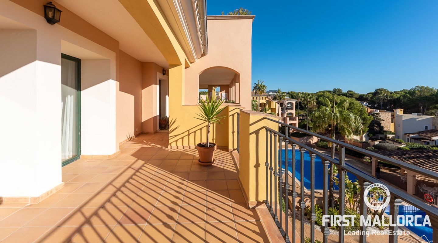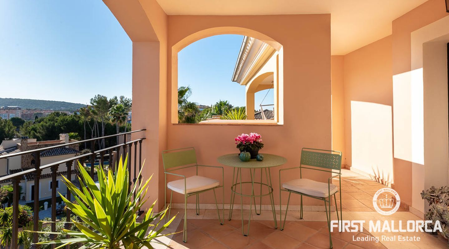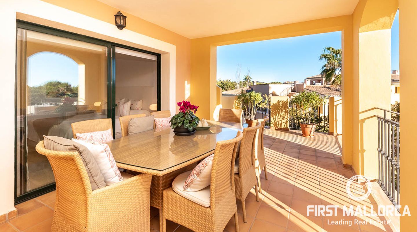 This 4 bedroom penthouse within walking distance of Port Adriano harbour truly deserves to be called "unique", properties of this type are few and far between and rarely, if ever, come on the market. With approx. 240 m² living space, 4 bedrooms and 4 bathrooms, 3 of them ensuite, it offers the comfort of a villa, but is much easier to maintain. From the underground car park, the lift takes you directly to the flat, which occupies the entire top floor in the building. The property radiates an overwhelming elegance and exclusivity as soon as you enter, with high ceilings and lots of light. The room concept is open plan, including a luxury fitted kitchen with breakfast bar, a large dining area and the living room. From everywhere you can enjoy the view towards the golf course and over the charming residence with the beautiful swimming pool area. Numerous open and covered terraces provide ample space for relaxing or dining with family and friends. Very sun-seekers walk up a comfortable stone staircase to the approx. 300 m² roof terrace, which offers 360 degree views of the sea, mountains, golf courses and surrounding area. The equipment of this fantastic penthouse includes: Air conditioning hot/cold, aluminium windows with double glazing, marble floors, utility room, 2 underground parking spaces, 2 storage rooms. Please do not hesitate to contact our friendly team at Port Adriano for a viewing.