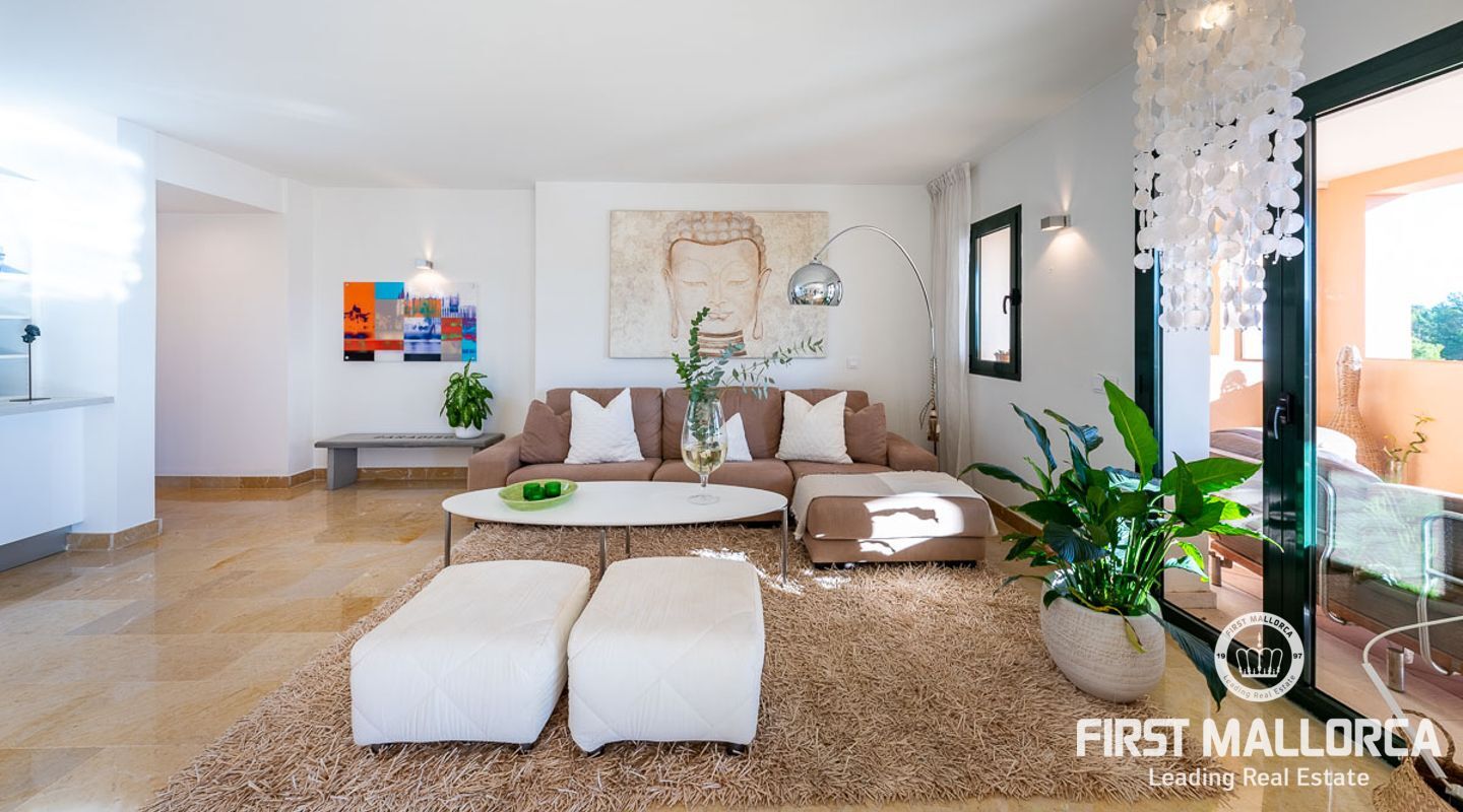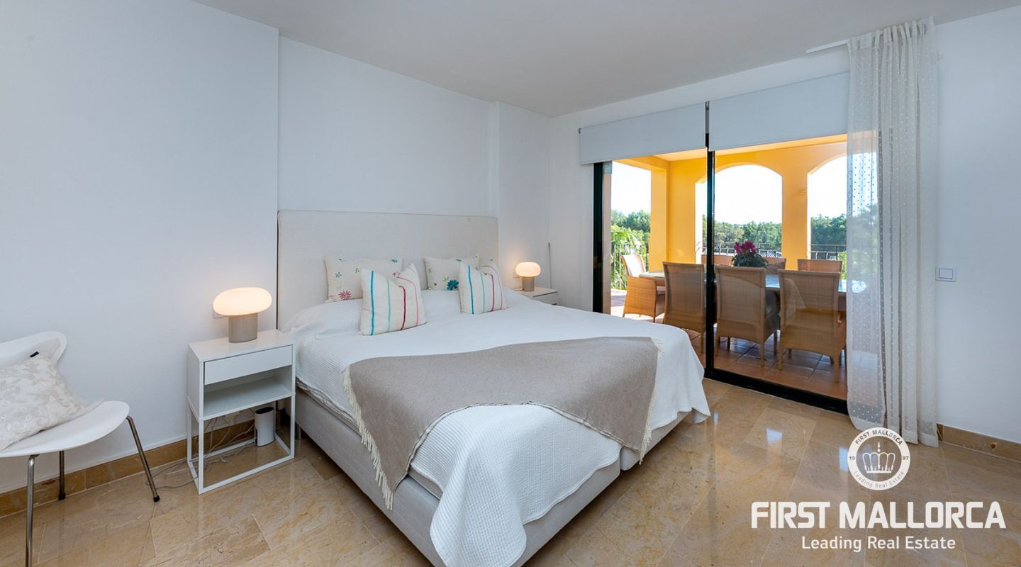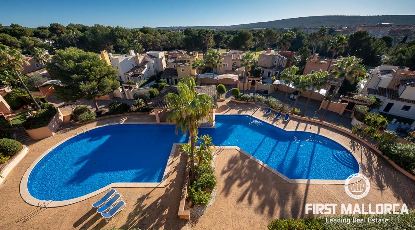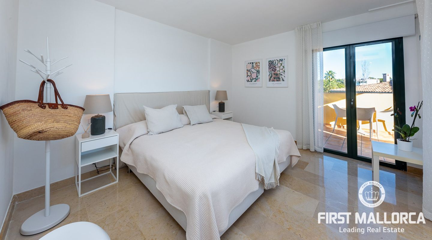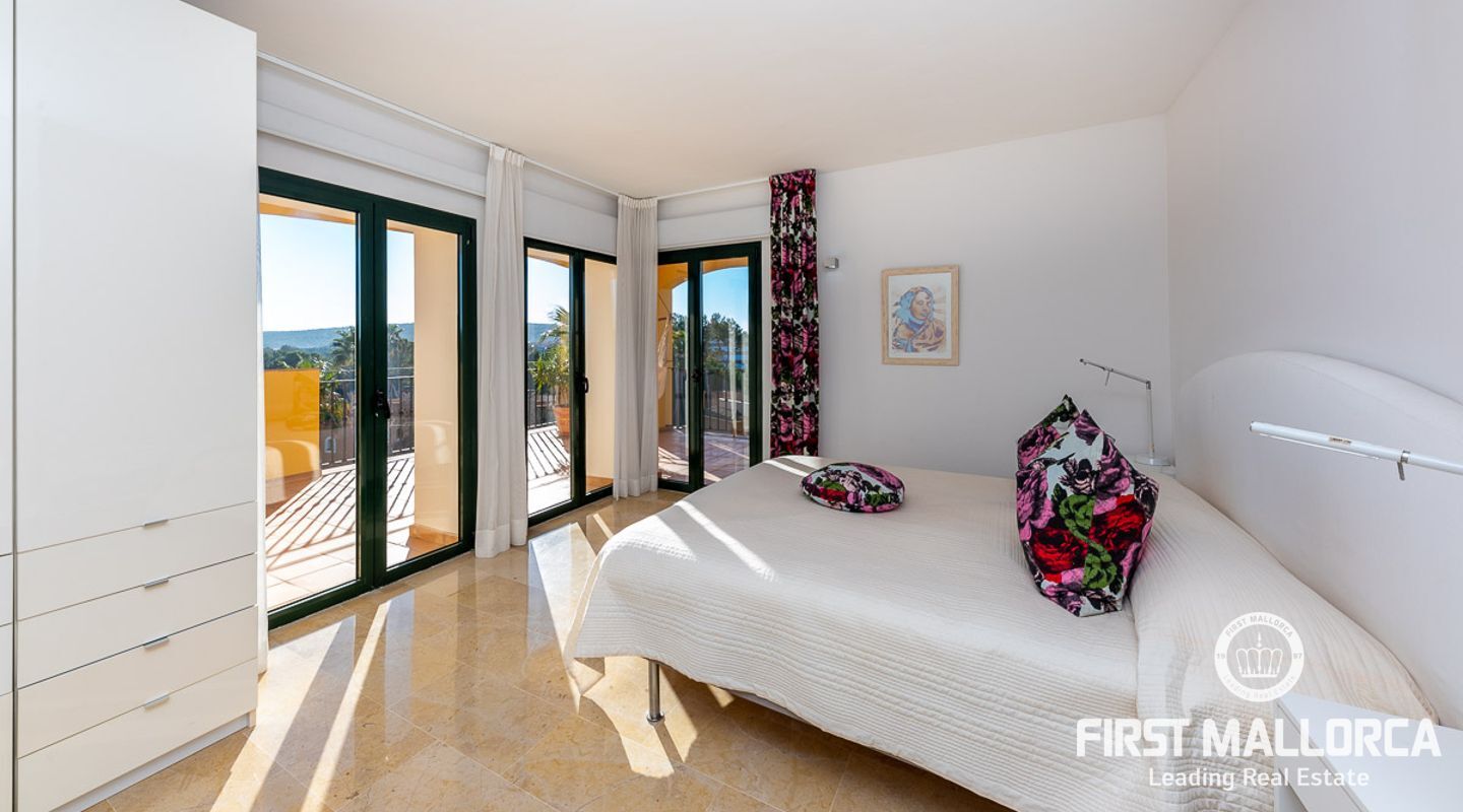 This 4 bedroom penthouse within walking distance of Port Adriano harbour truly deserves to be called "unique", properties of this type are few and far between and rarely, if ever, come on the market. With approx. 240 m² living space, 4 bedrooms and 4 bathrooms, 3 of them ensuite, it offers the comfort of a villa, but is much easier to maintain. From the underground car park, the lift takes you directly to the flat, which occupies the entire top floor in the building. The property radiates an overwhelming elegance and exclusivity as soon as you enter, with high ceilings and lots of light. The room concept is open plan, including a luxury fitted kitchen with breakfast bar, a large dining area and the living room. From everywhere you can enjoy the view towards the golf course and over the charming residence with the beautiful swimming pool area. Numerous open and covered terraces provide ample space for relaxing or dining with family and friends. Very sun-seekers walk up a comfortable stone staircase to the approx. 300 m² roof terrace, which offers 360 degree views of the sea, mountains, golf courses and surrounding area. The equipment of this fantastic penthouse includes: Air conditioning hot/cold, aluminium windows with double glazing, marble floors, utility room, 2 underground parking spaces, 2 storage rooms. Please do not hesitate to contact our friendly team at Port Adriano for a viewing.