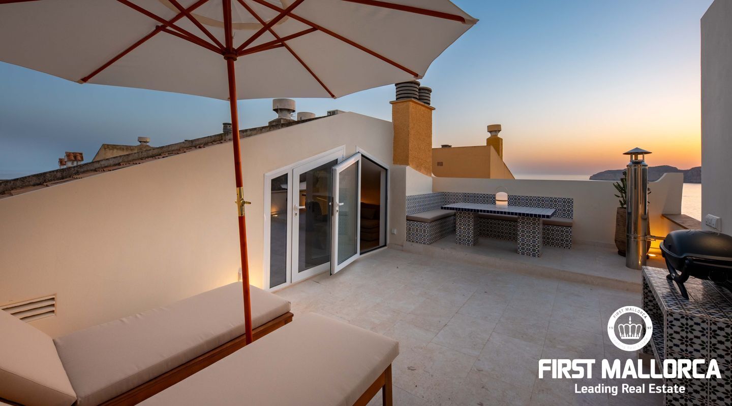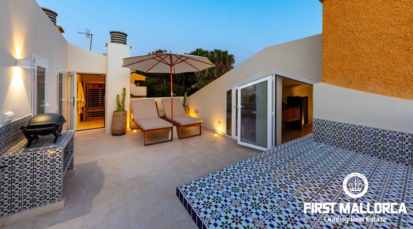 2 Bedrooms, 2 en-suite Bathrooms and guest toilet: Elegant and spacious, designed with premium materials and meticulous attention to detail. Convertible Guest Area: A versatile space that can easily be transformed into a third bedroom, complete with private access. Open Plan Kitchen: Modern and fully equipped, perfect for both everyday living and entertaining. Underfloor Heating and fireplace: Enjoy a warm and cozy atmosphere year-round. Sauna: Relax and unwind in your very own private sauna. Outdoor Kitchen & Al Fresco Dining: Ideal for hosting gatherings while enjoying breathtaking panoramic sea views of the Malgrat Islands. Amazing Panoramic Sea Views: Soak in the stunning vistas and serene beauty of the coast. Parking Space Included: Convenient and secure parking. 2 Community Pools: Access to well-maintained pools for relaxation and recreation. Located close to Port Adriano and Santa Ponsa, this penthouse combines modern luxury with an unbeatable location. Don’t miss the opportunity to own this exceptional property.