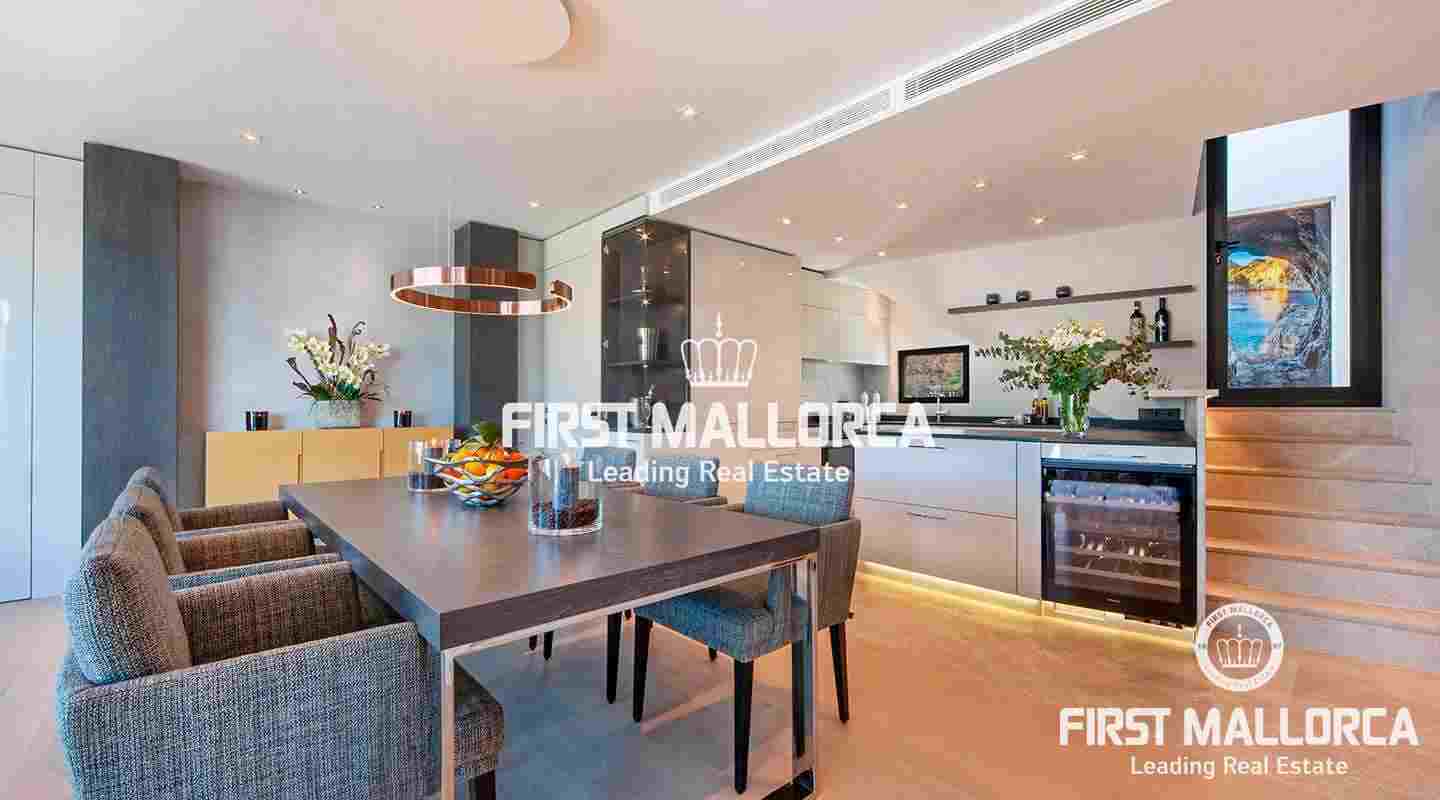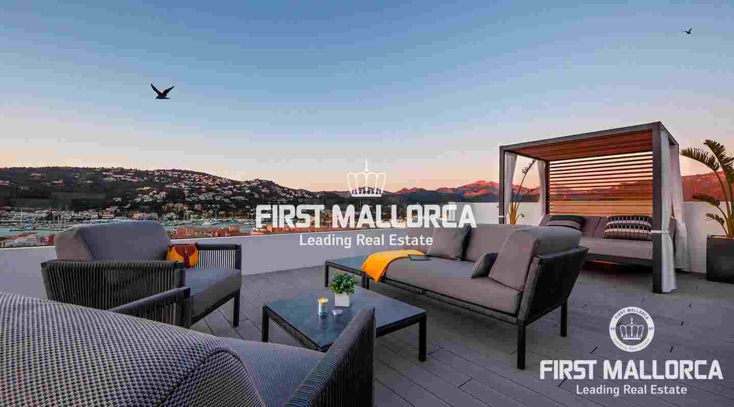 This ultra-modern, luxuriously appointed, apartment-villa is set in a privileged location, in the picturesque port of Andratx. All 6 exclusive homes in the development boast a fantastic view of the harbour and the entrance to the port of Andratx. Only three minutes from the beach promenade, with its stylish restaurants, bars and shops, this elegant "ONLY SIX" villa of apartments is one of the top properties in the southwest of Mallorca. The opulent penthouse extends over 298 square metres (this surface area includes terraces and balconies). From their own roof terrace with private pool and barbecue area the penthouse residents enjoy a marvellous view over the roofs of Andratx, out to the glamorous marina and the small fishing fleet setting out at dawn to land its catch in the harbour in the afternoon.