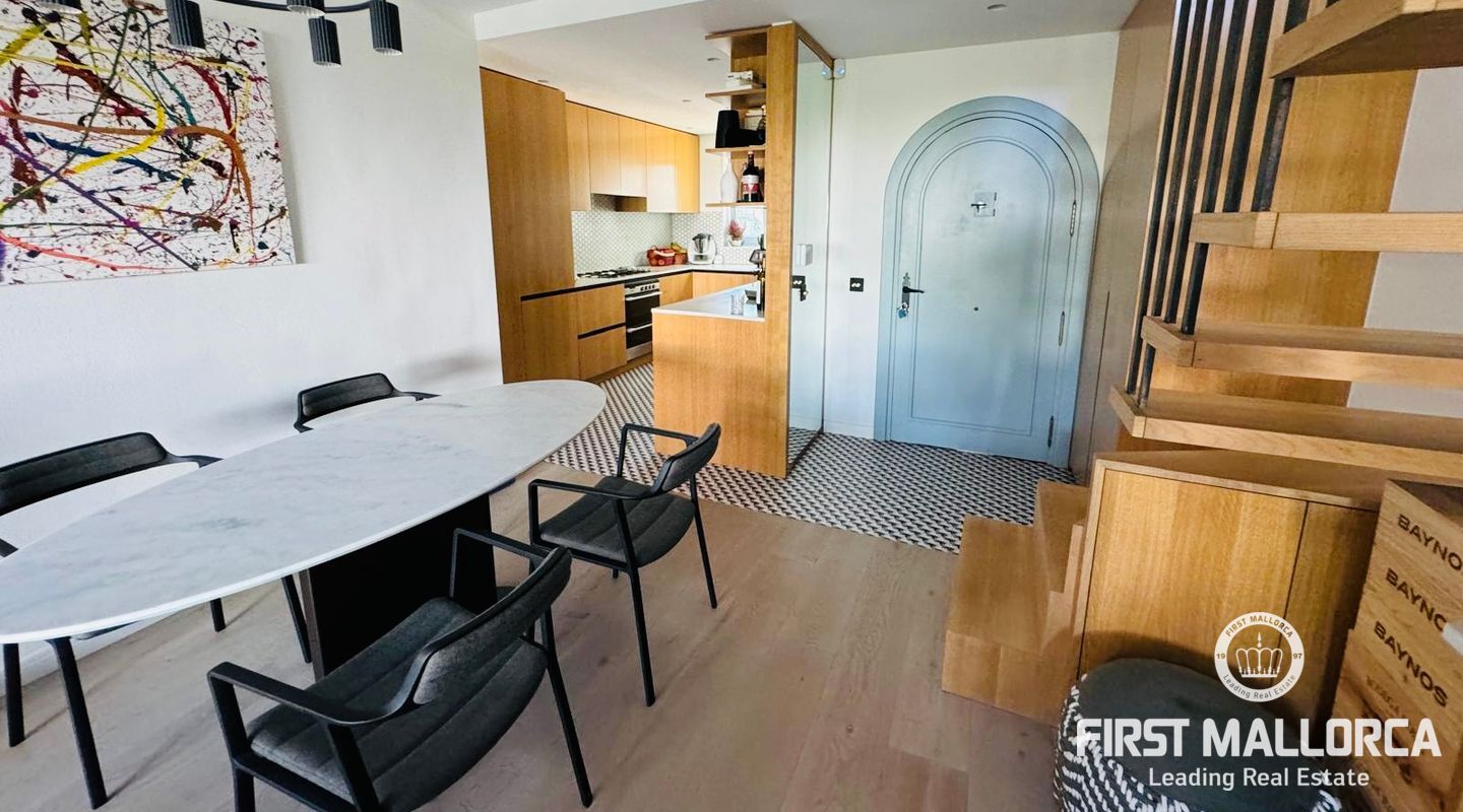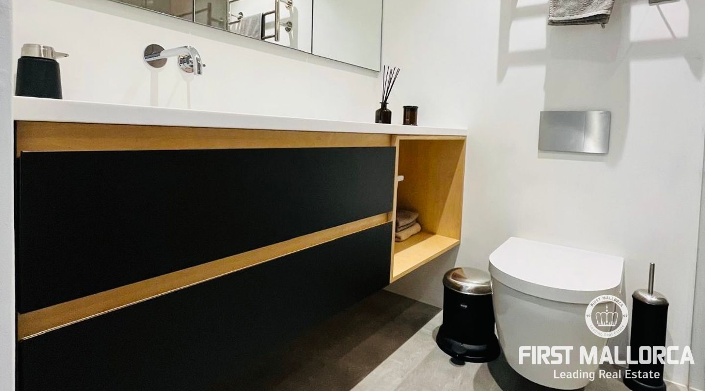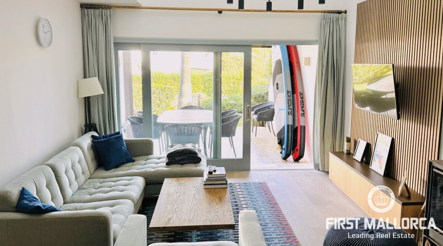 On the first floor you will find a spacious living-dining room with direct access to one of the two private terraces, perfect for outdoor dining or relaxing in the sun. The fully equipped kitchen has a functional and elegant design.