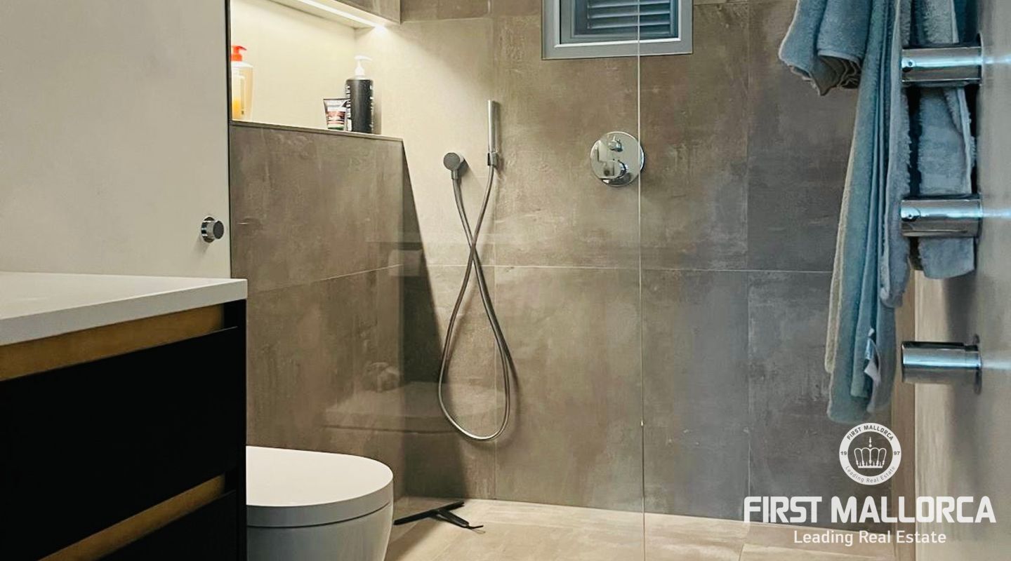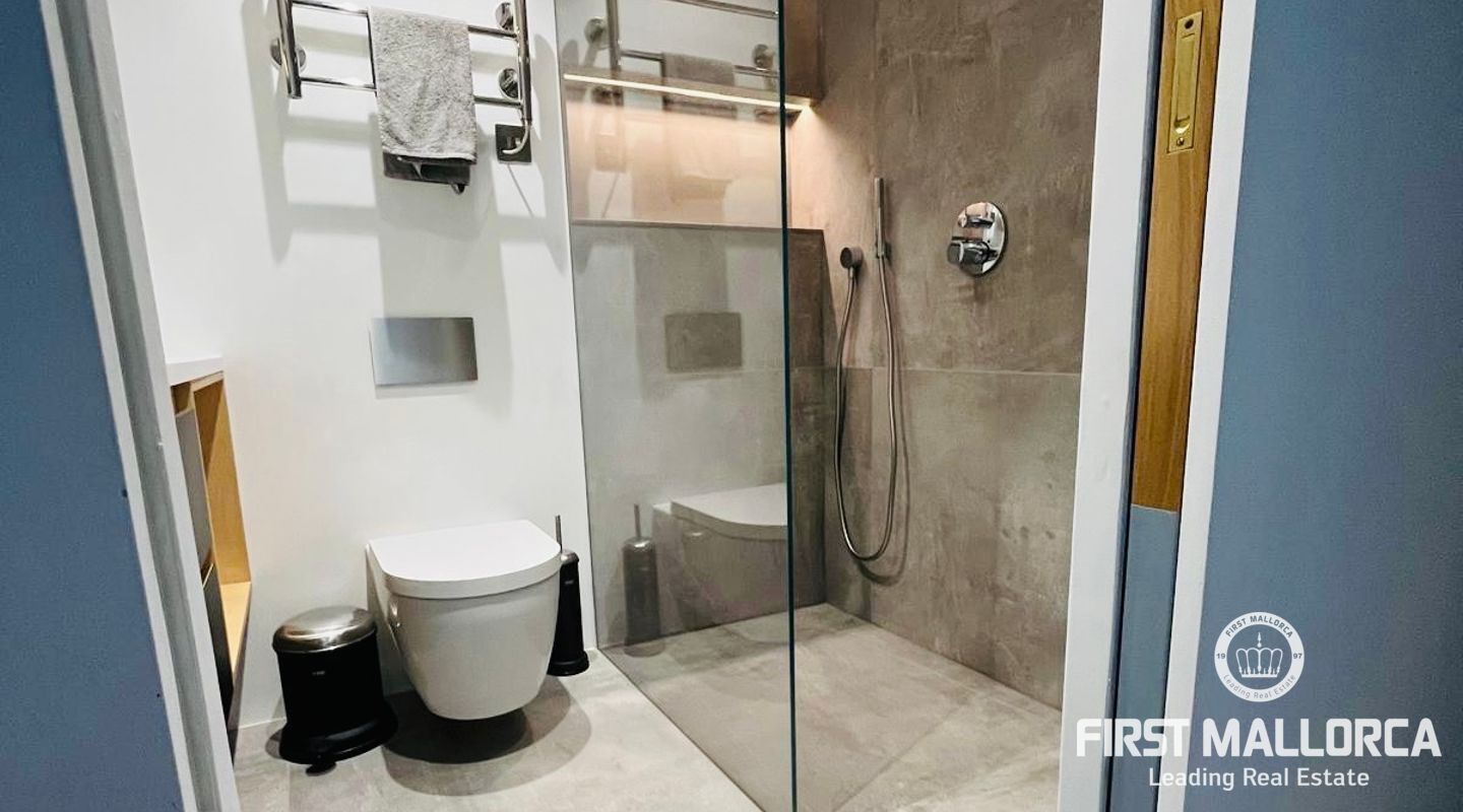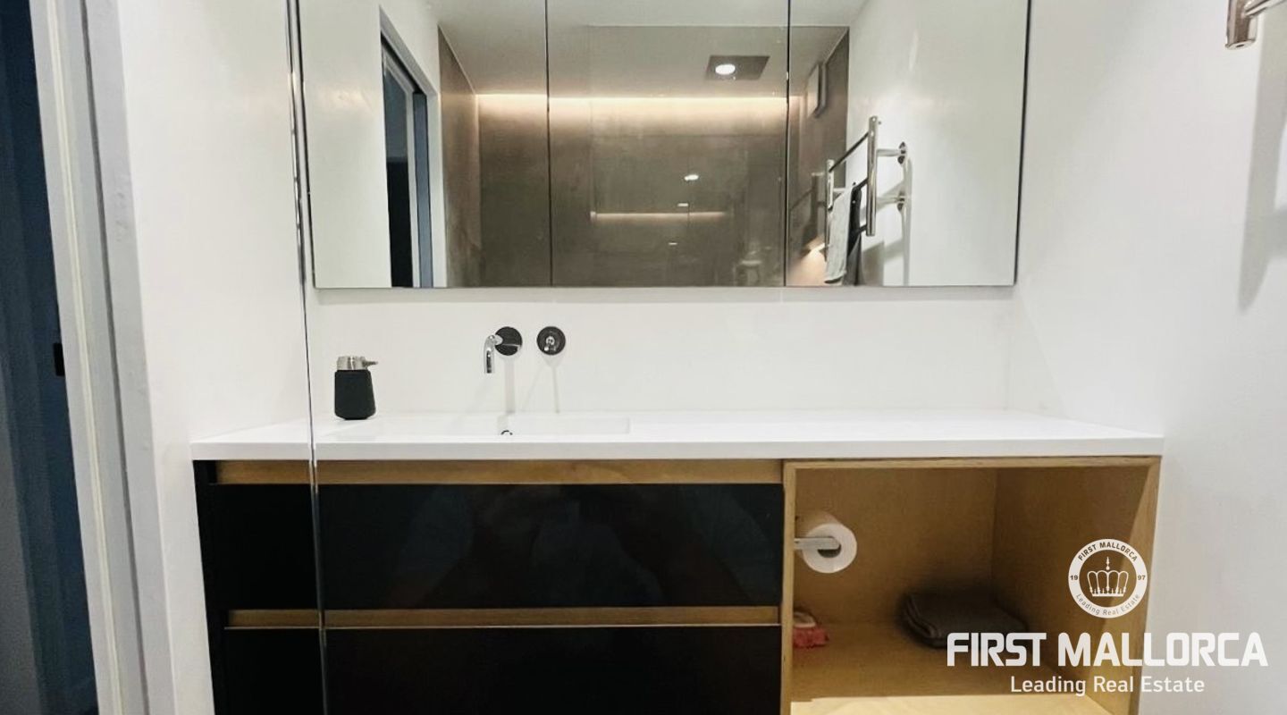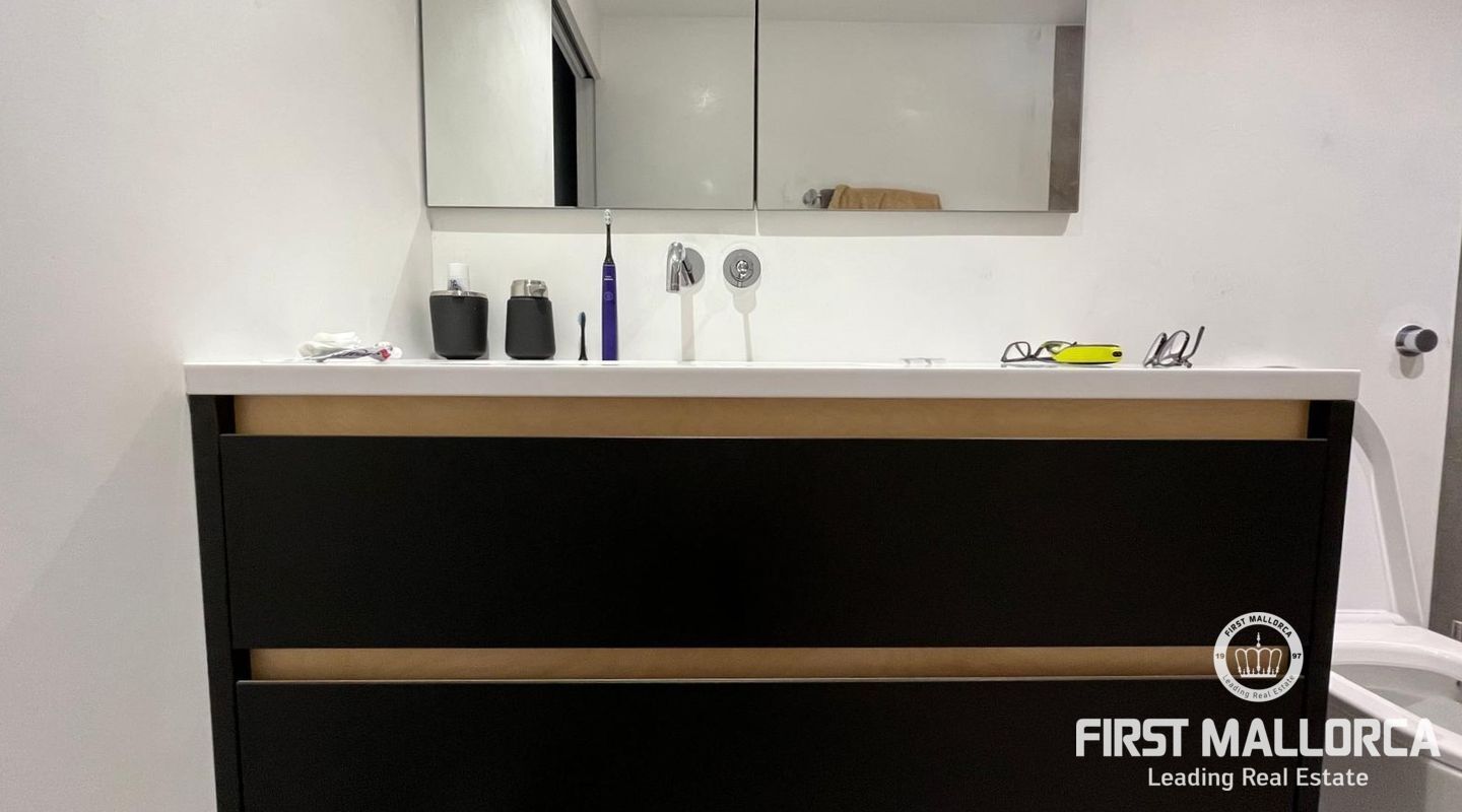 On the first floor you will find a spacious living-dining room with direct access to one of the two private terraces, perfect for outdoor dining or relaxing in the sun. The fully equipped kitchen has a functional and elegant design.