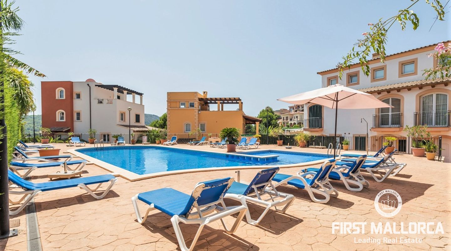 This wonderful property is located in the first line to the golf course of Camp de Mar, in a very sought-after residential complex. The community was renovated last year to a very high standard and with great taste.