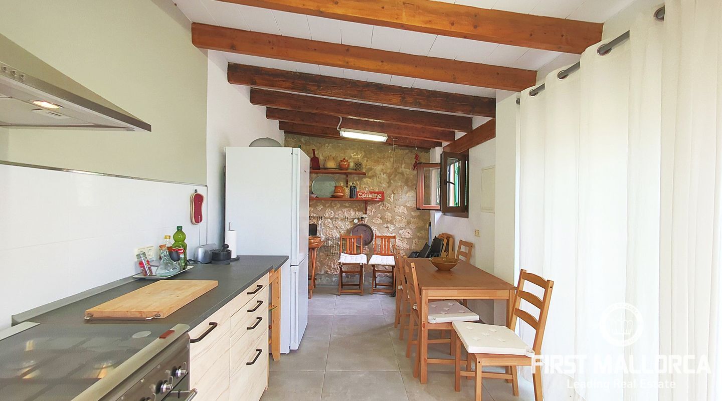 Exclusively with First Mallorca! Situated in a quiet area close to the centre of Montuiri, this large townhouse offers privacy and charm. The beautiful garden boasts fruit trees such as orange, lemon, plum and grapefruit trees as well as an orchard, a salt water jacuzzi, a summer kitchen and a garage for two cars.