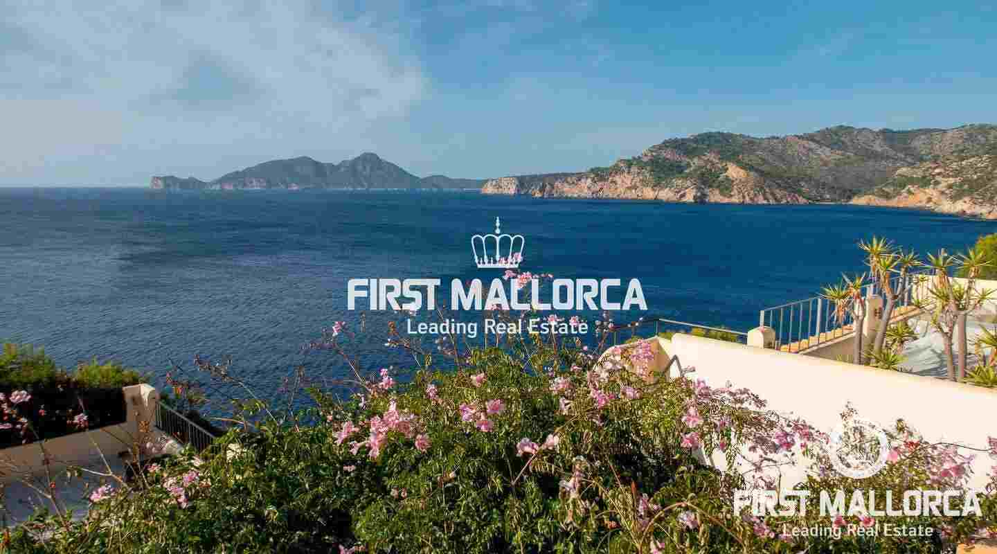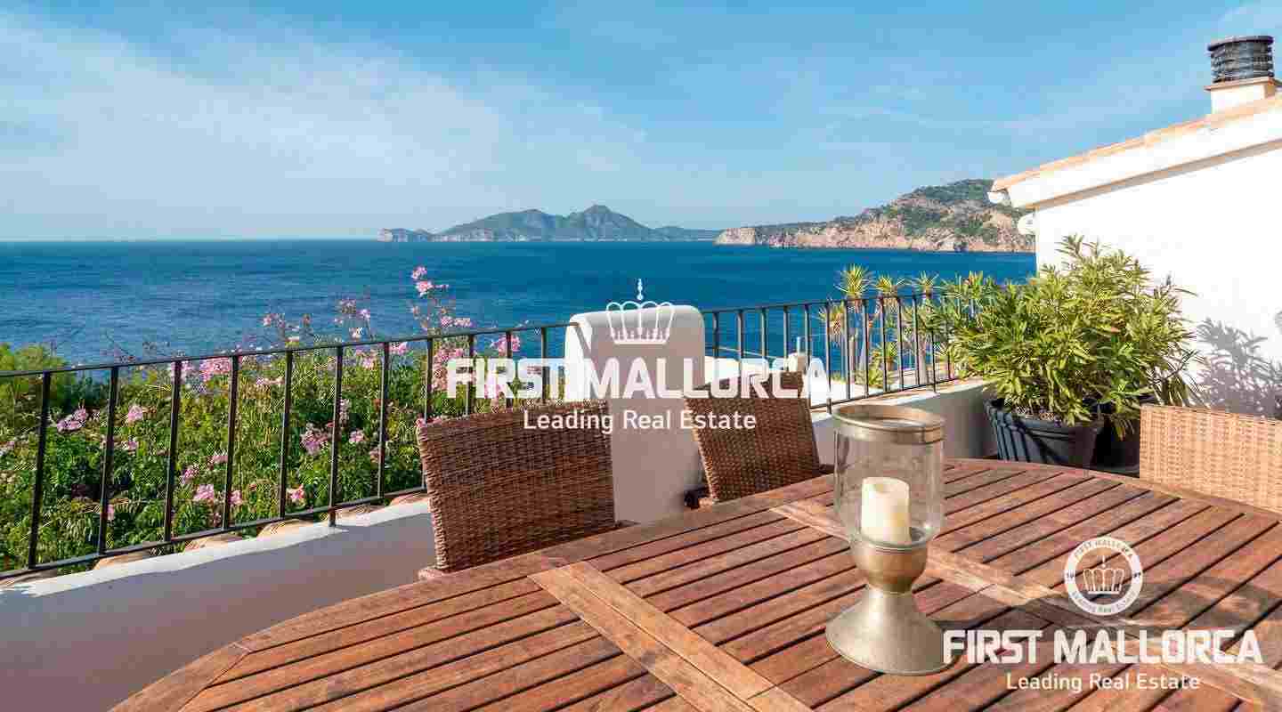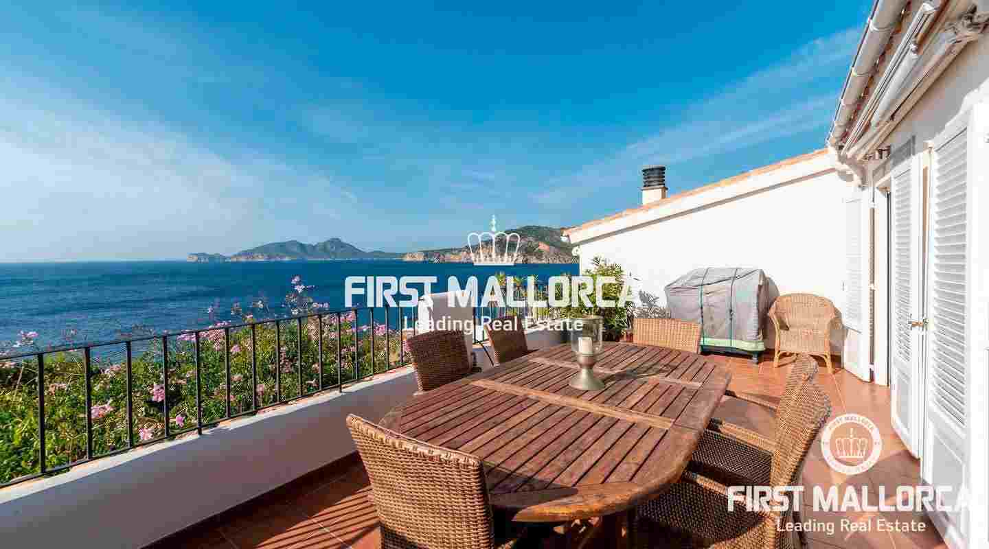 A semi-detached house in a frontline location and in a truly spectacular position with exceptional sea views and marvellous sunsets over the island of Dragonera. The comfortable 4 bedroom, 2 bathrooms and 1 guest toilet property has a constructed area of 165 m2 plus 54 m2 of uncovered terraces leading to the community swimming pool. Additional features include: Air conditioning hot/cold and a wood pellet stove. For additional information contact FIRST MALLORCA by email or telephone the harbourside office Puerto de Andratx (+34) 971 698 888