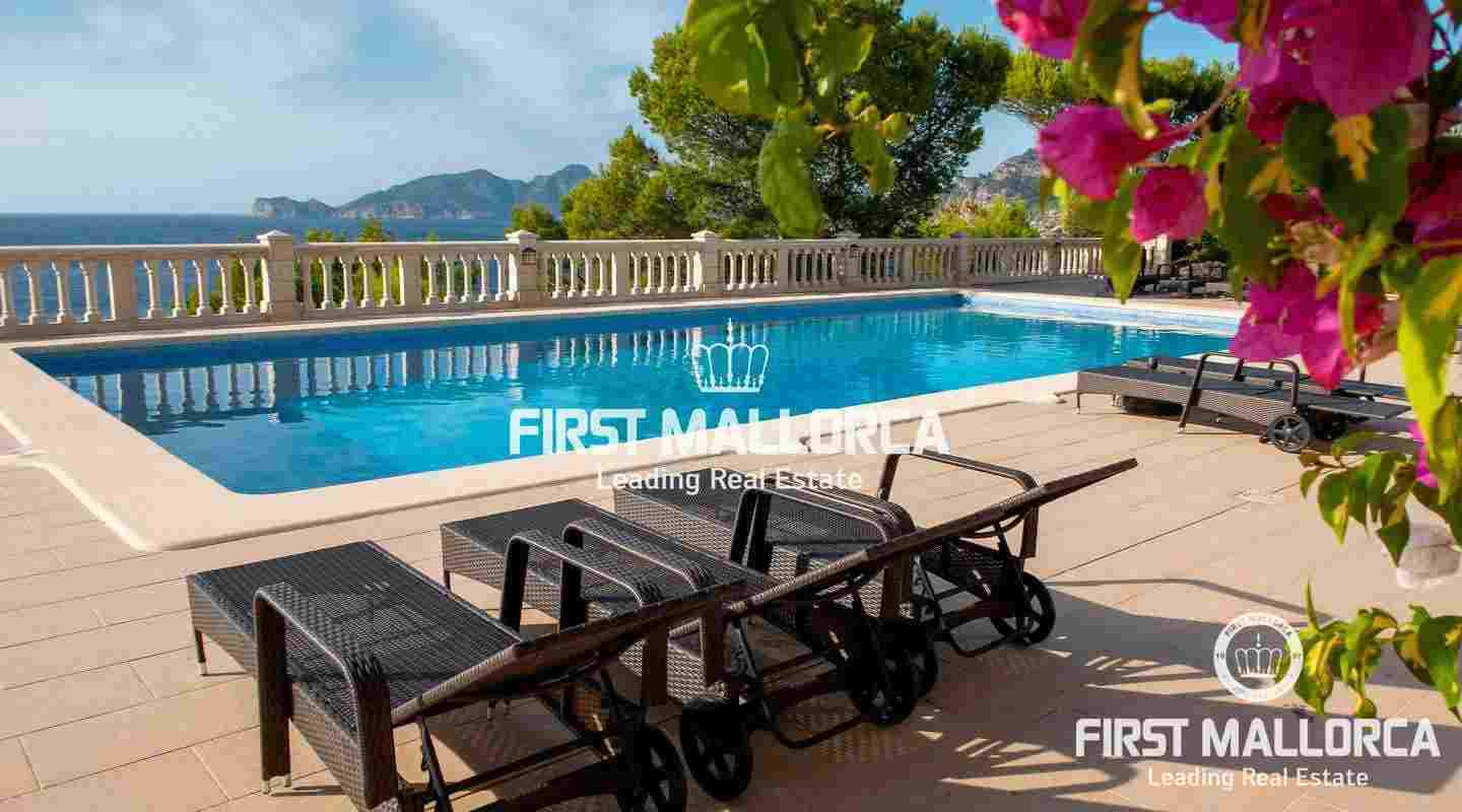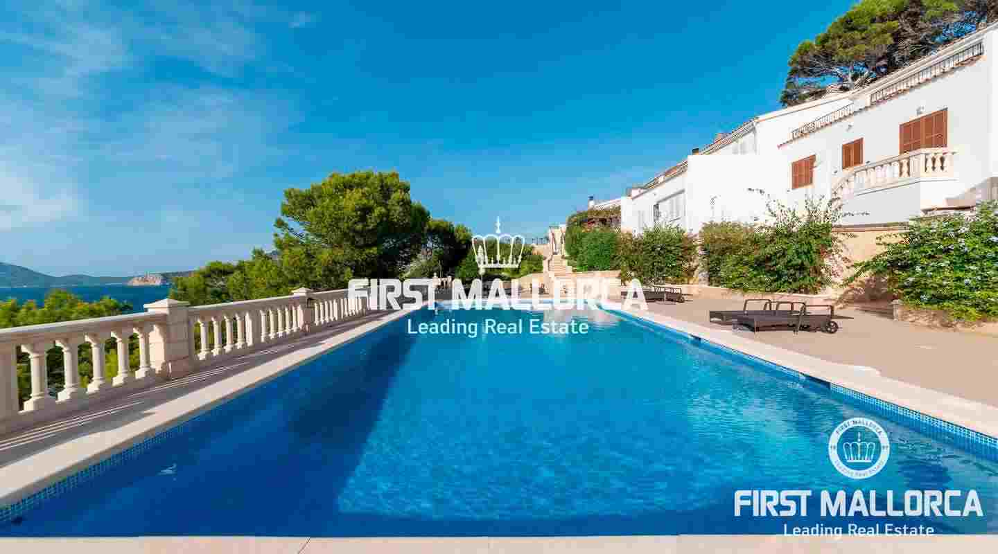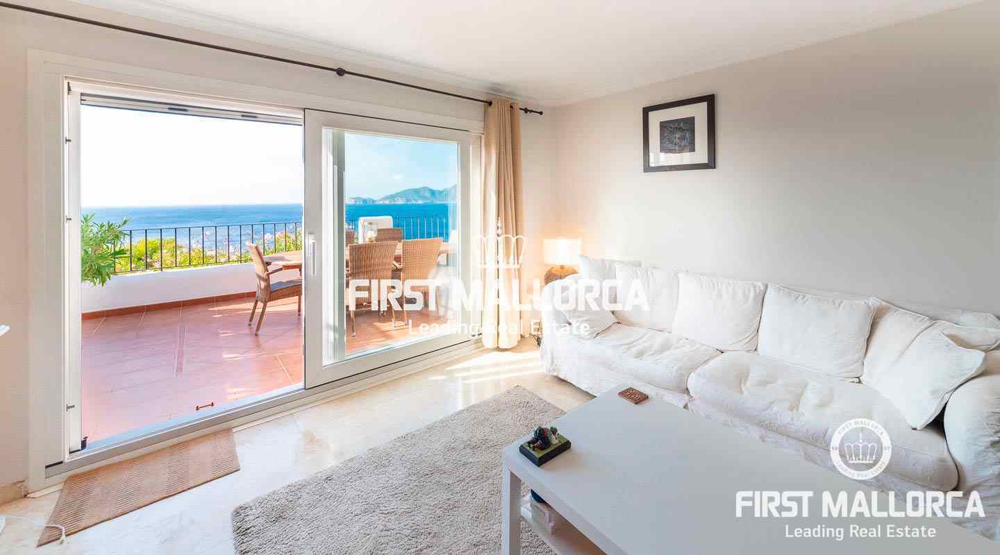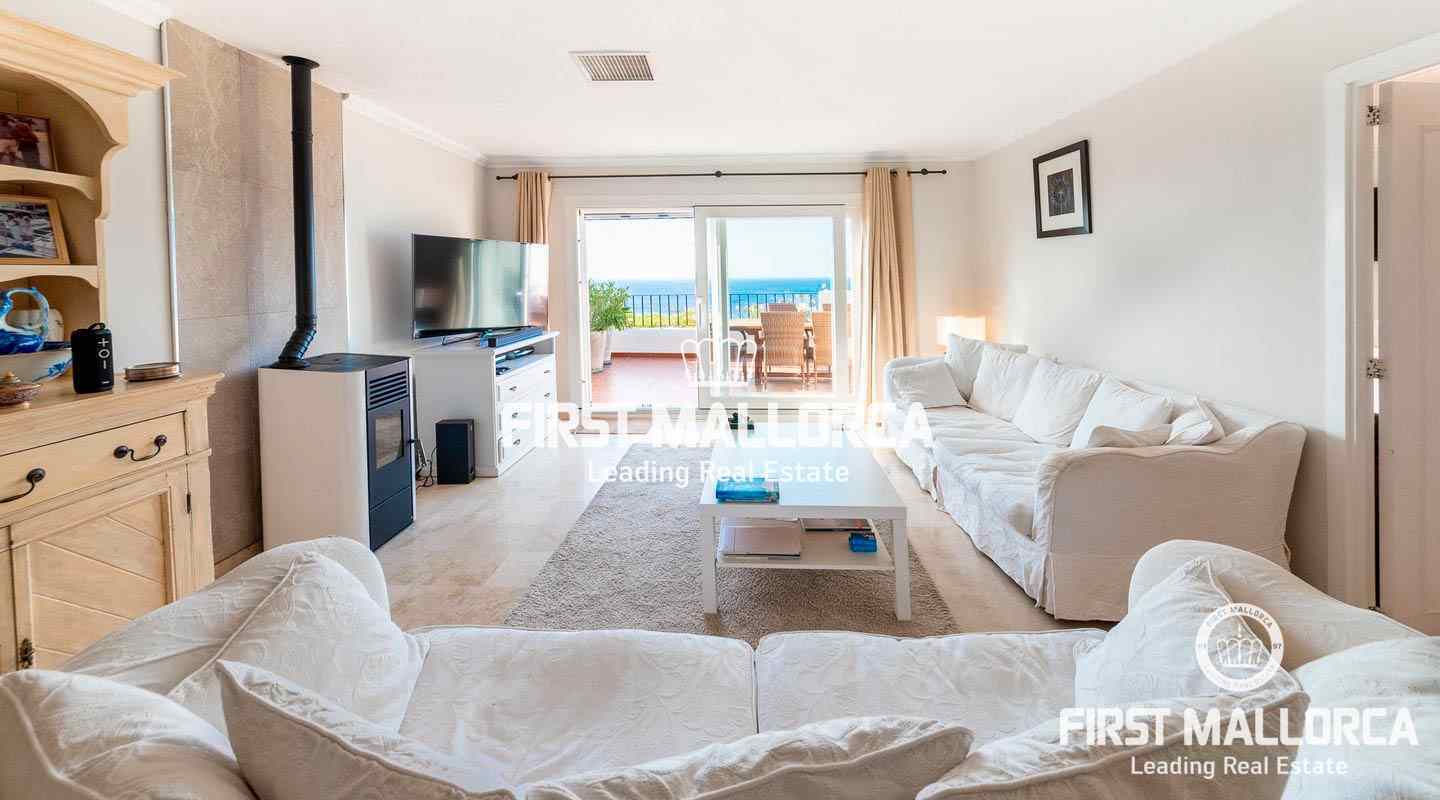 A semi-detached house in a frontline location and in a truly spectacular position with exceptional sea views and marvellous sunsets over the island of Dragonera. The comfortable 4 bedroom, 2 bathrooms and 1 guest toilet property has a constructed area of 165 m2 plus 54 m2 of uncovered terraces leading to the community swimming pool. Additional features include: Air conditioning hot/cold and a wood pellet stove. For additional information contact FIRST MALLORCA by email or telephone the harbourside office Puerto de Andratx (+34) 971 698 888