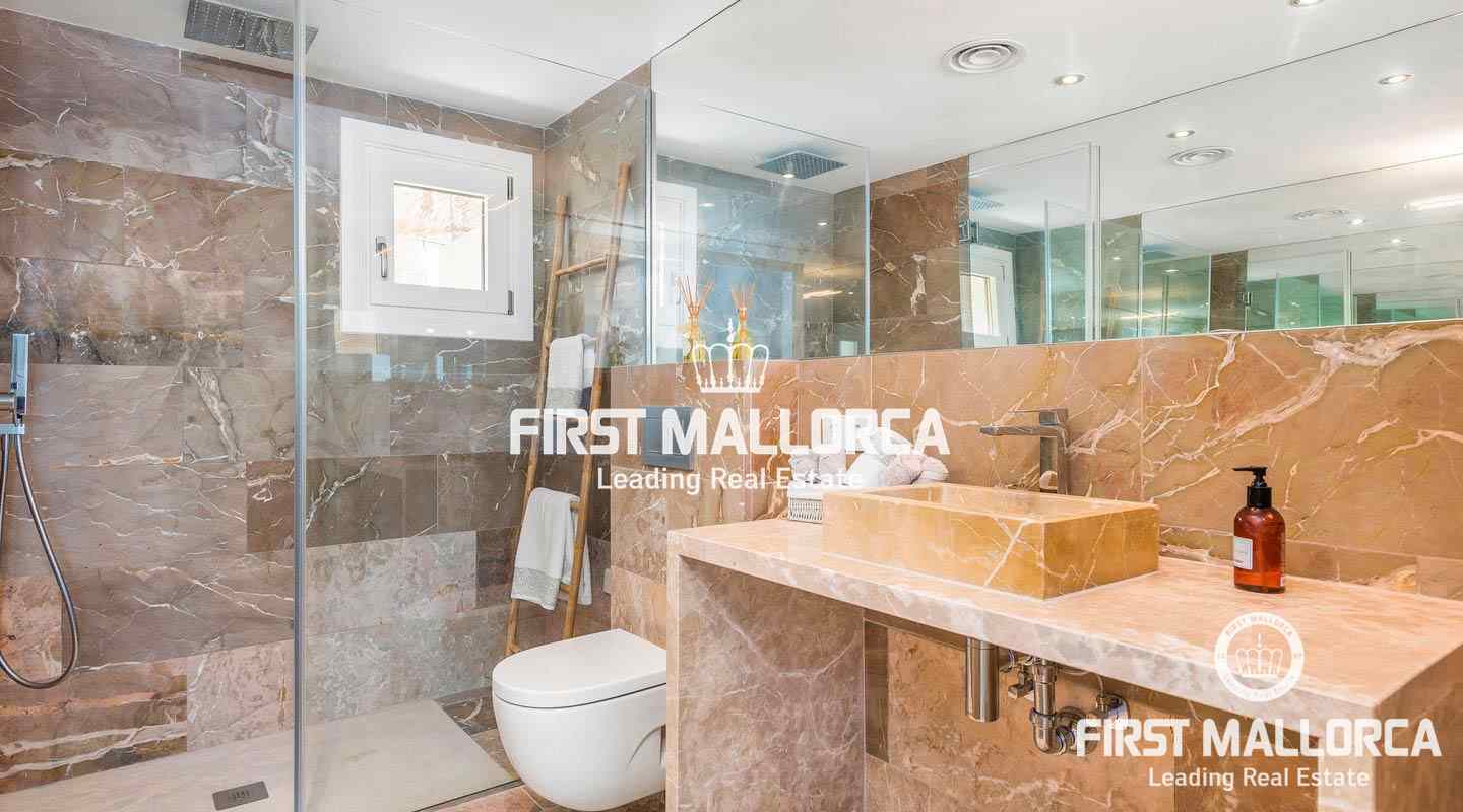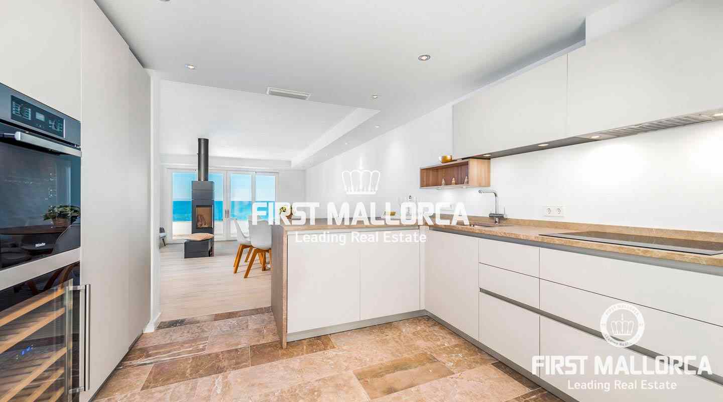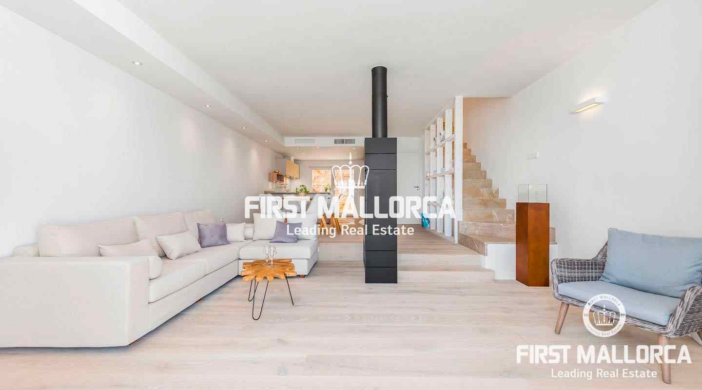 You can not have a better view of the Mediterranean, because this chic townhouse is located directly on the seafront. The property has been completely renovated in 2018 using only the highest quality materials. From the open plan living and dining area and from the two terraces you can enjoy a magnificent view of the Mediterranean Sea. Likewise, 2 of the 3 bedrooms have a fantastic sea view to the Bay of Palma. The property has a private garage, from which one enters directly into the house. Frontline to the sea in the southwest is a quiet and idyllic location, yet the neighbourhood offers a good year-round infrastructure and the island's capital Palma is only 15 km away.