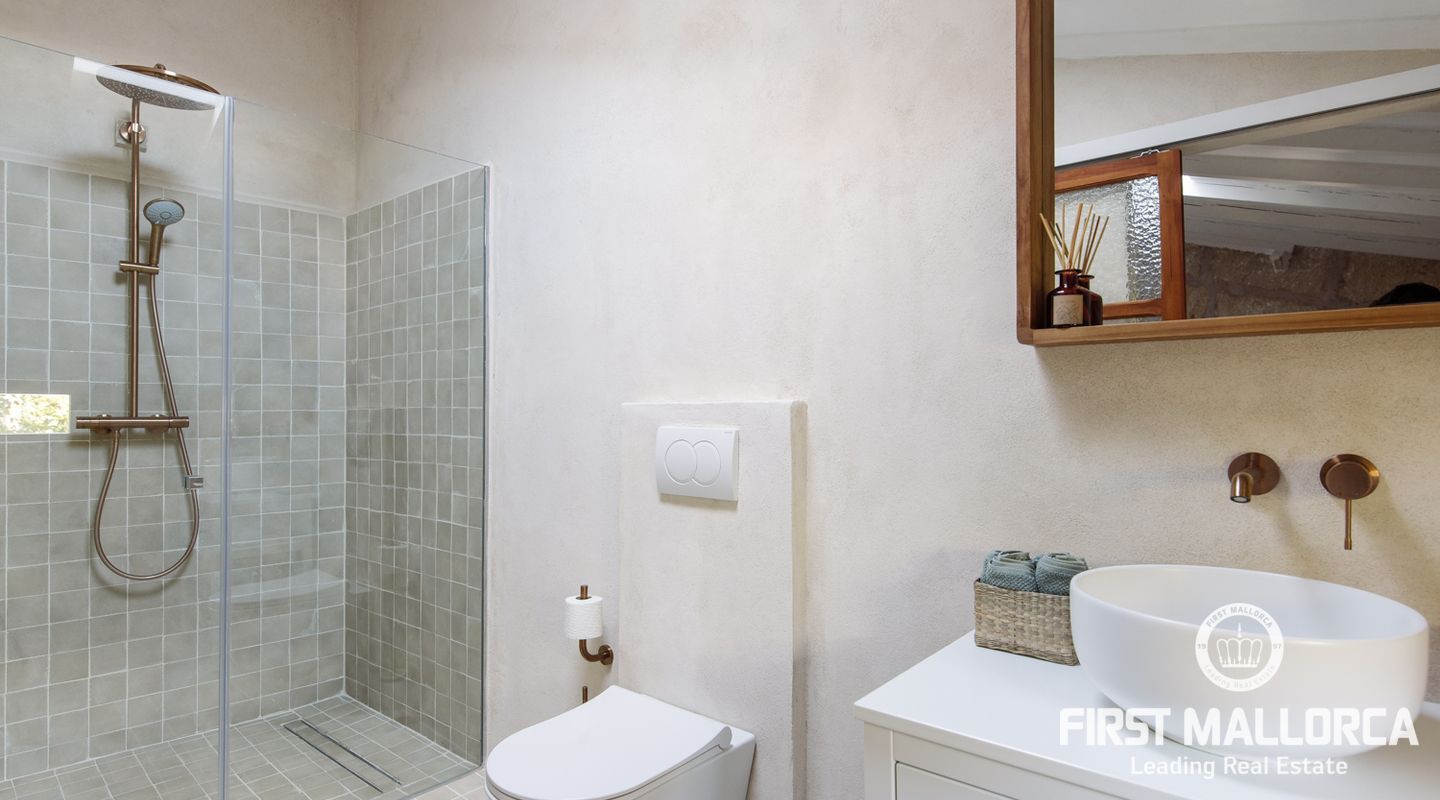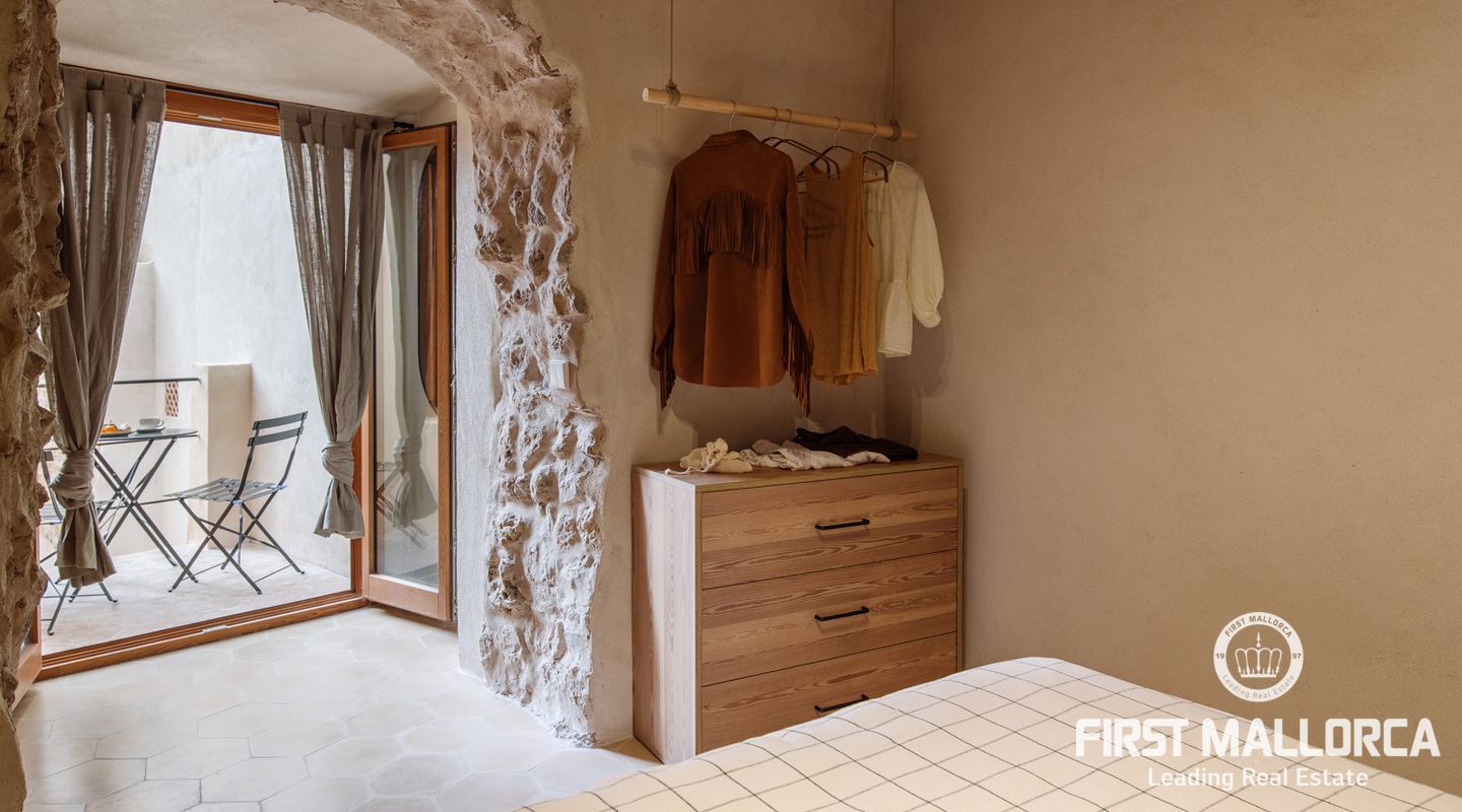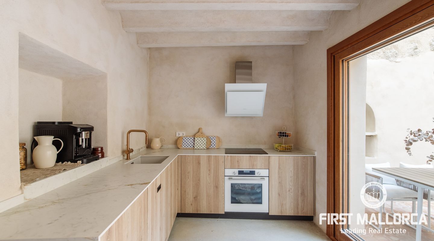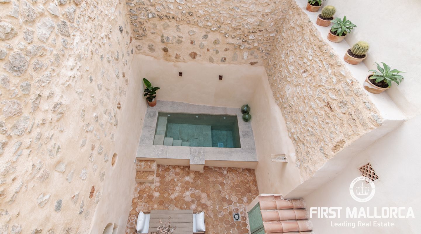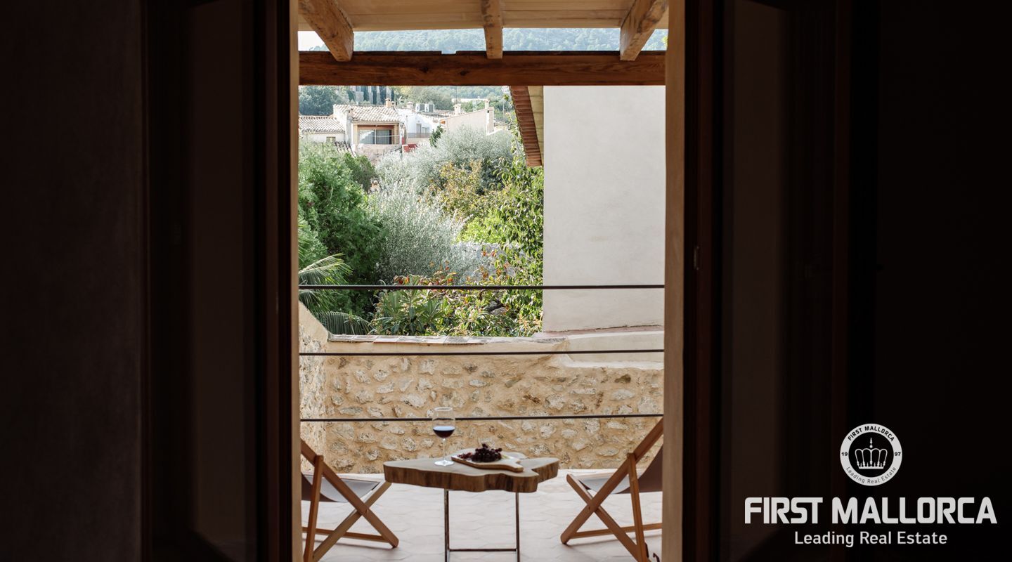 The property is distributed over three floors. On the ground floor, there is the living-dining room with an open kitchen and access to a spacious patio with a swimming pool and a guest toilet. On the first floor, two bedrooms with two en-suite bathrooms and terrace. On the second floor we find another room with an en-suite bathroom and a living room with a bright terrace. The original elements have been preserved, its wooden windows feature triple glazing and blinds, original old tile floors and other polished cement floors with underfloor heating. A unique opportunity to live in one of the most beautiful towns in the Tramuntana mountains.