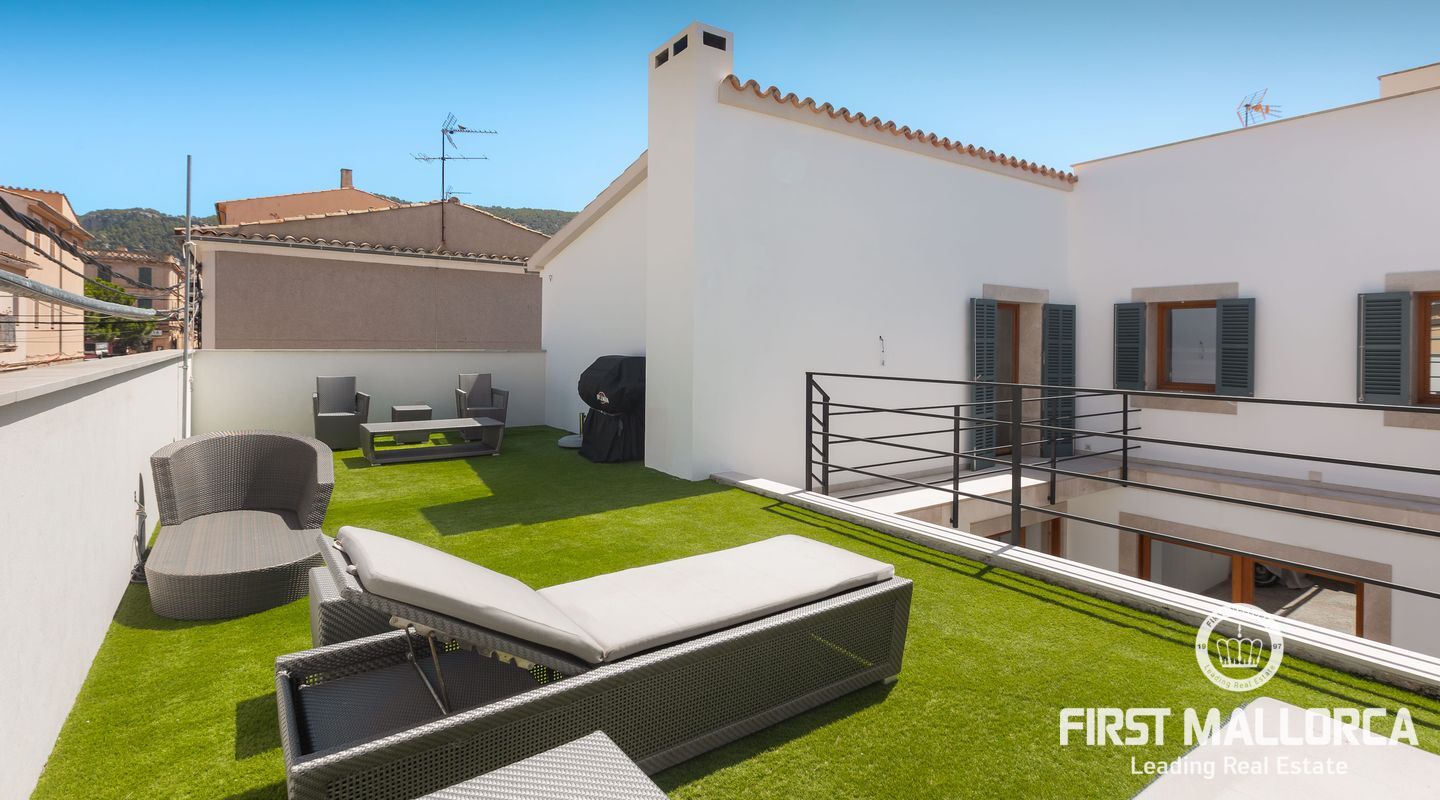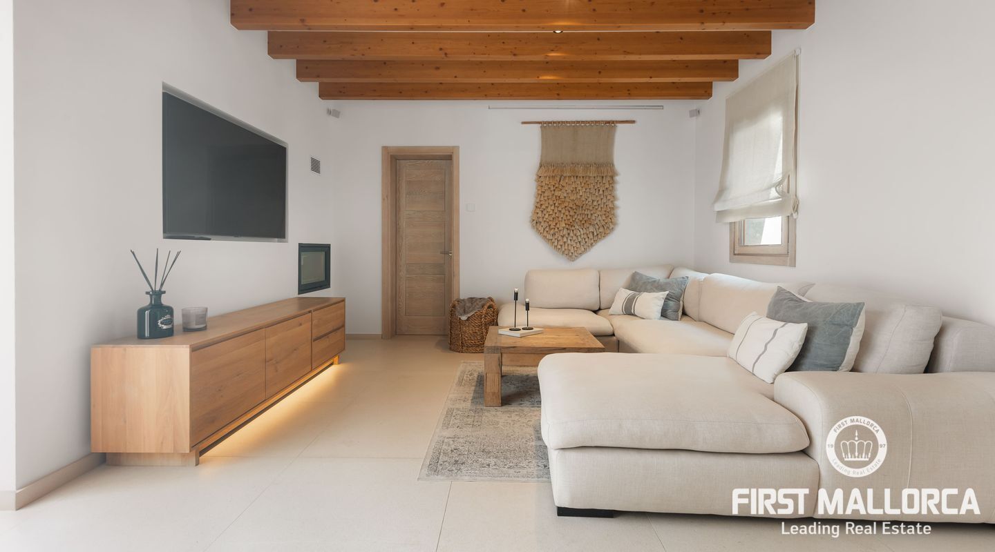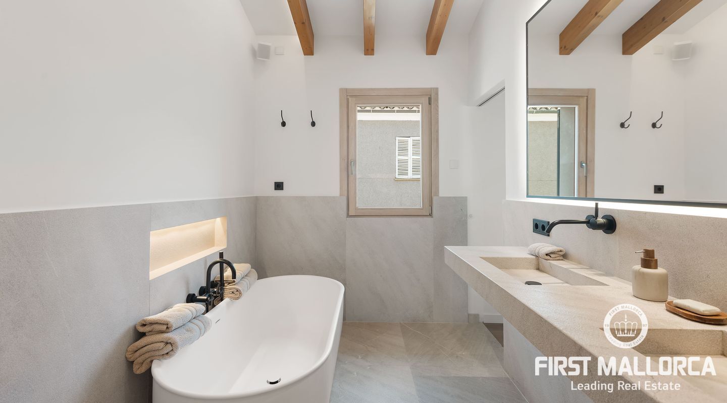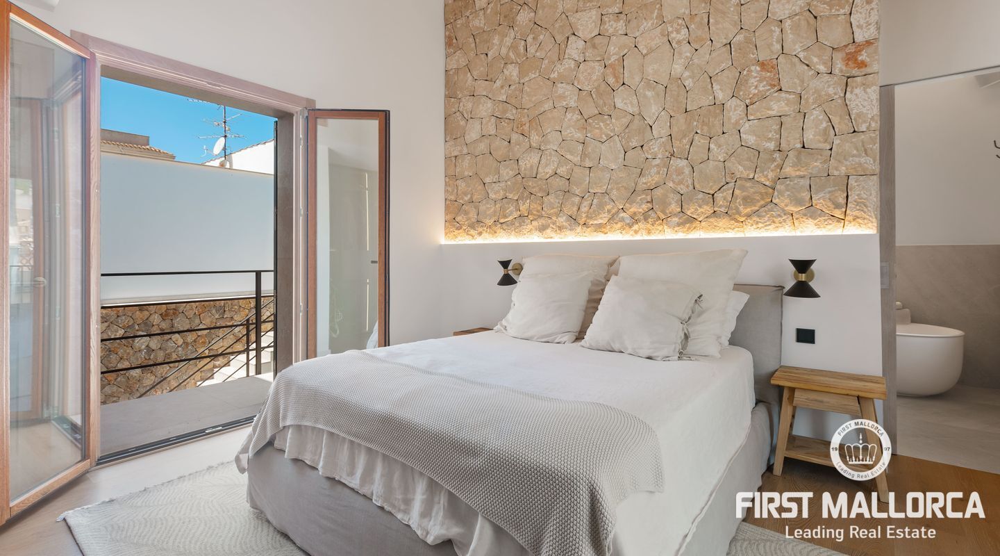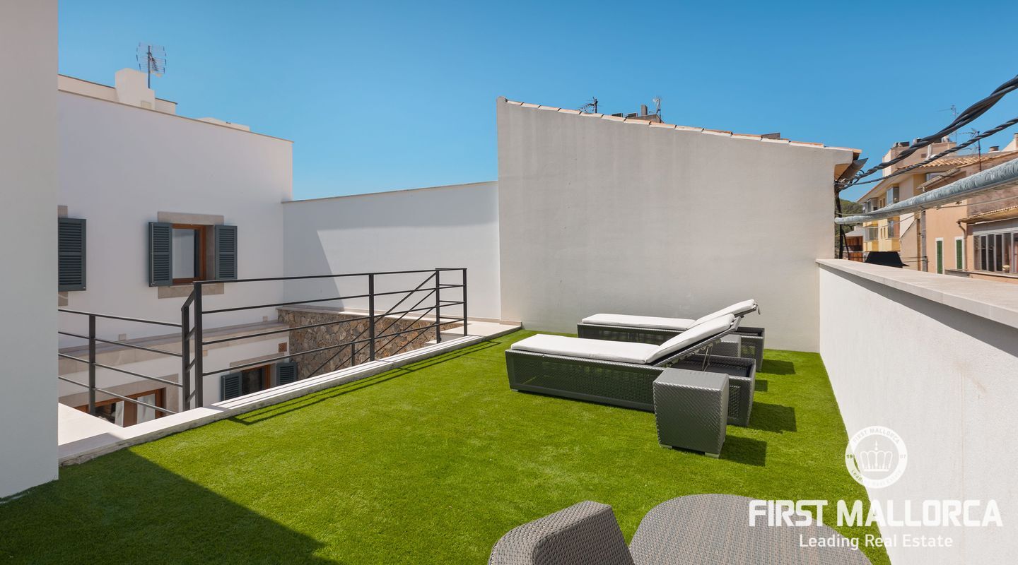 This stylish property has been carefully renovated to the highest standard and is ready for immediate occupation. Situated in a quiet street only a few steps away from the emblematic village square with its weekly local markets and lively restaurants. Filled with natural light flowing through the property, the interior design flawlessly combines the contemporary style with Mallorcan elements, such as wood beams, custom made carpentry, a designer kitchen with top-end appliances as well as a private central courtyard, perfect for entertaining and dining al-fresco. The modern Mediterranean atmosphere continues upstairs, where the 3 well appointed bedrooms and bathrooms invite to relax in a peaceful setting. Several generous outside spaces, such as the patio and the large sun lounge terrace with its own BBQ fulfill all your Mallorcan dreams. The practicality of this house is enhanced by a secure private double garage, well appointed and discreet laundry room, as well as a cozy wood burner, complementing a throughout under floor heating and hot and cold air conditioning system.