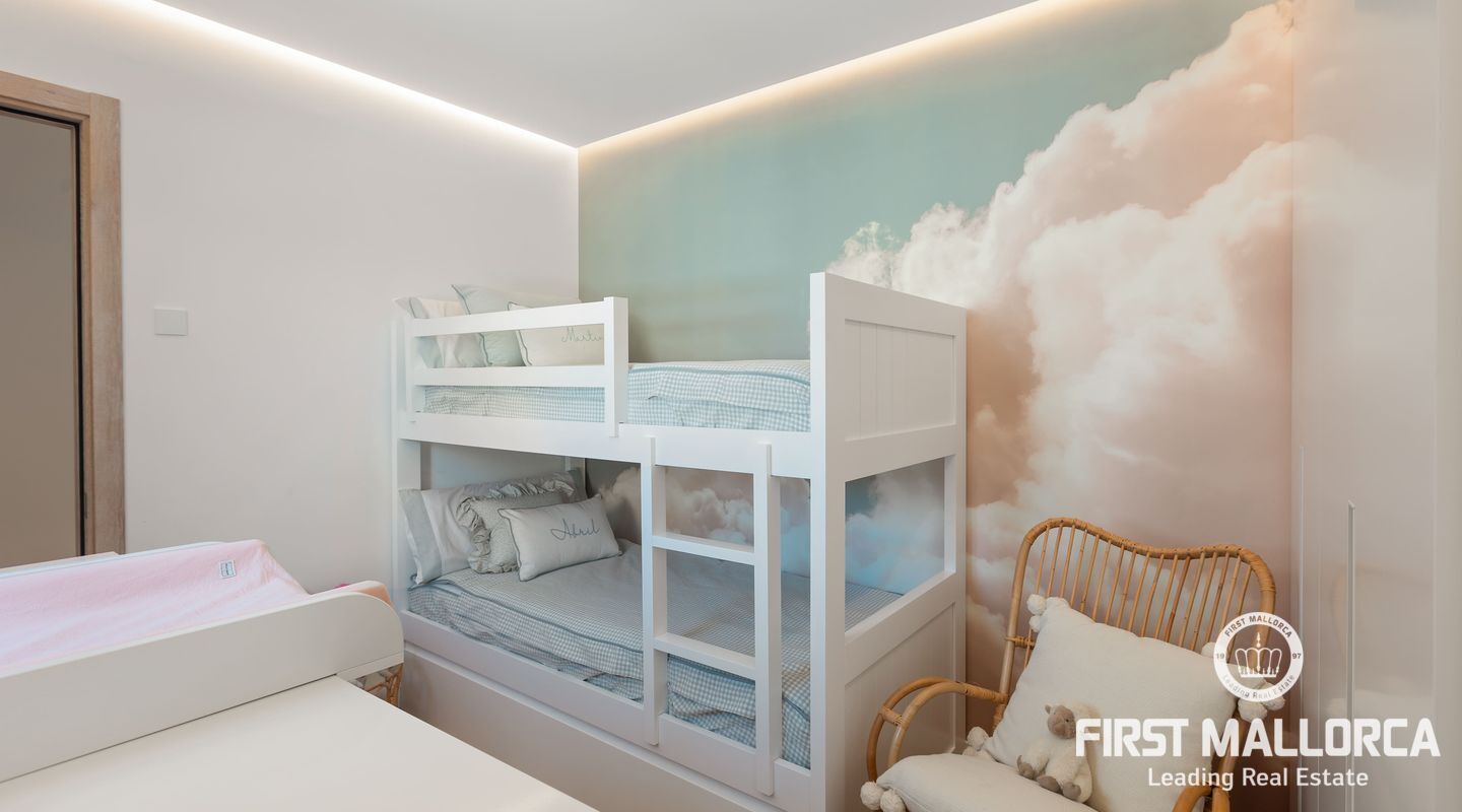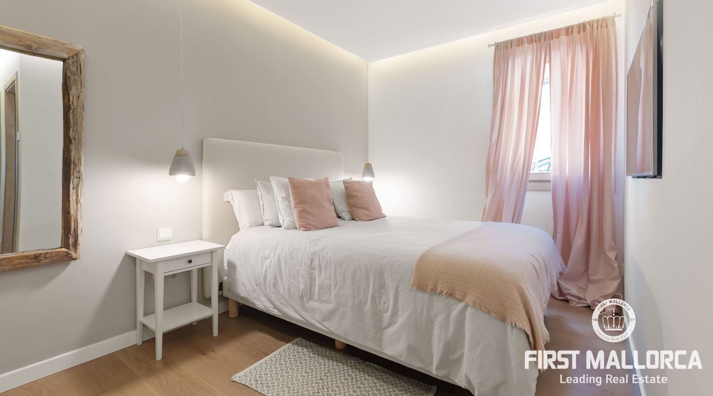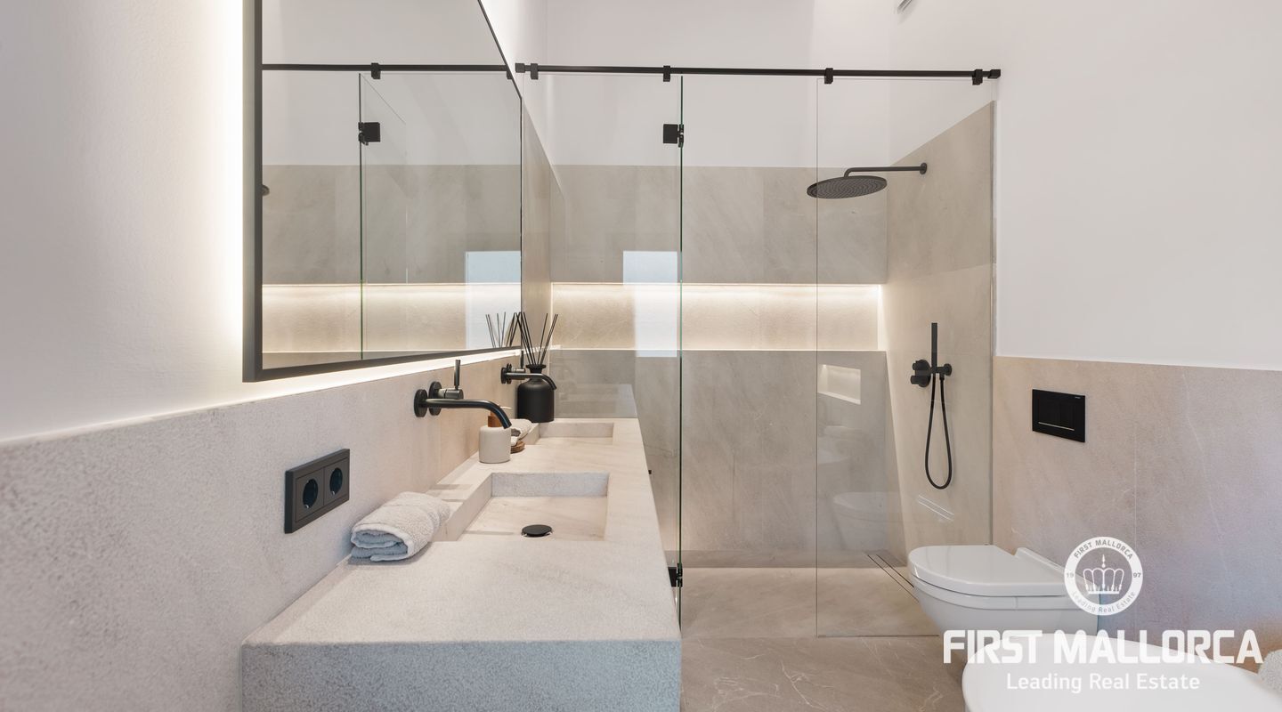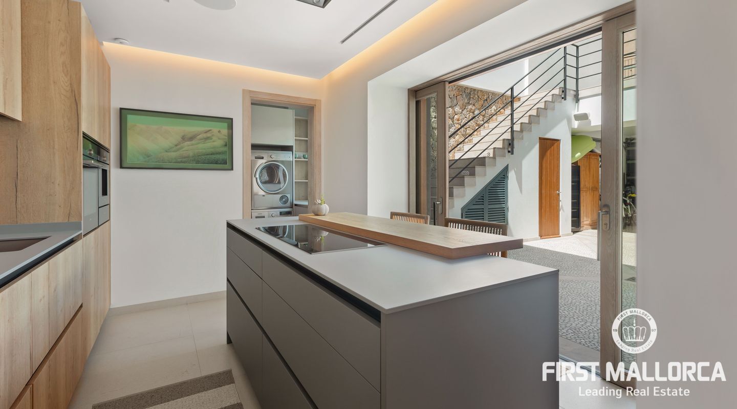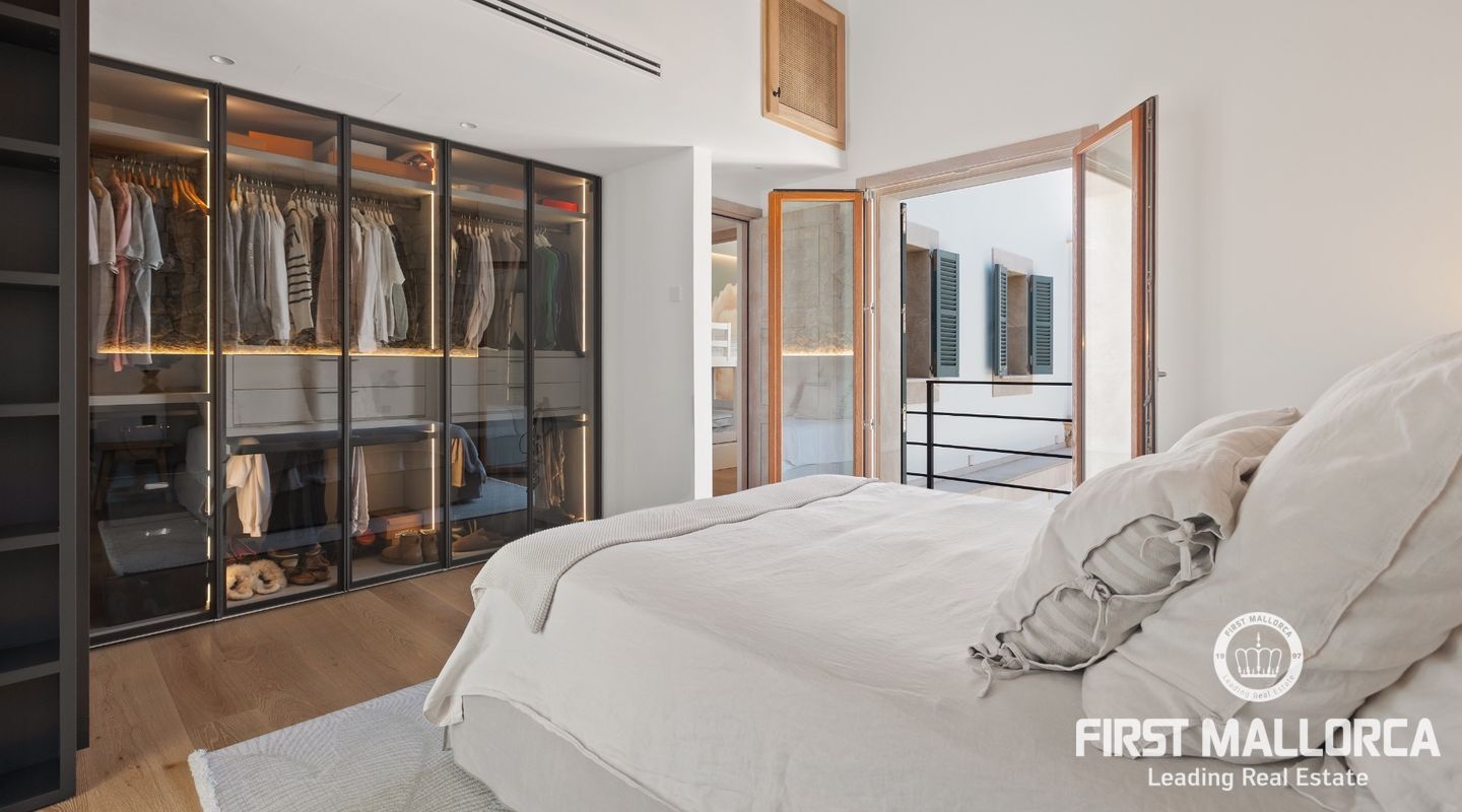 This stylish property has been carefully renovated to the highest standard and is ready for immediate occupation. Situated in a quiet street only a few steps away from the emblematic village square with its weekly local markets and lively restaurants. Filled with natural light flowing through the property, the interior design flawlessly combines the contemporary style with Mallorcan elements, such as wood beams, custom made carpentry, a designer kitchen with top-end appliances as well as a private central courtyard, perfect for entertaining and dining al-fresco. The modern Mediterranean atmosphere continues upstairs, where the 3 well appointed bedrooms and bathrooms invite to relax in a peaceful setting. Several generous outside spaces, such as the patio and the large sun lounge terrace with its own BBQ fulfill all your Mallorcan dreams. The practicality of this house is enhanced by a secure private double garage, well appointed and discreet laundry room, as well as a cozy wood burner, complementing a throughout under floor heating and hot and cold air conditioning system.