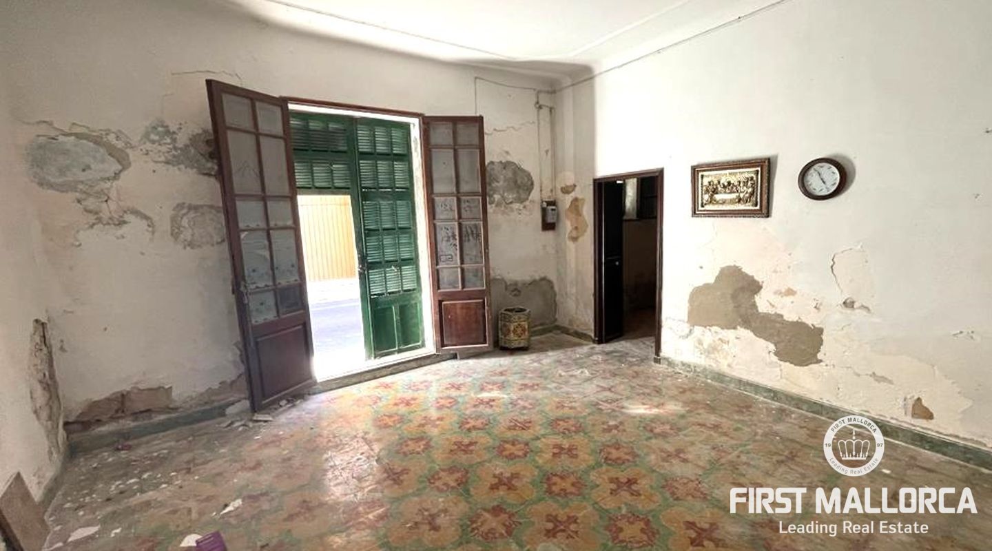 Townhouse to renovate, well located only a few metres from the main square of Muro. This house, which reaches from street to street, has approximately 260 m2 built on a plot of approx. 210 m2. The property needs a complete reform. It is divided between two floors and has a spacious entrance and 1 bedroom on the left side. On the ground floor there is also a big living room with a lot of light, independent kitchen, a bathroom, a pantry in the stairwell and the exit to the garden or patio which connects with the garage. On the upper floor we have two double bedrooms and an open plan room with endless possibilities.