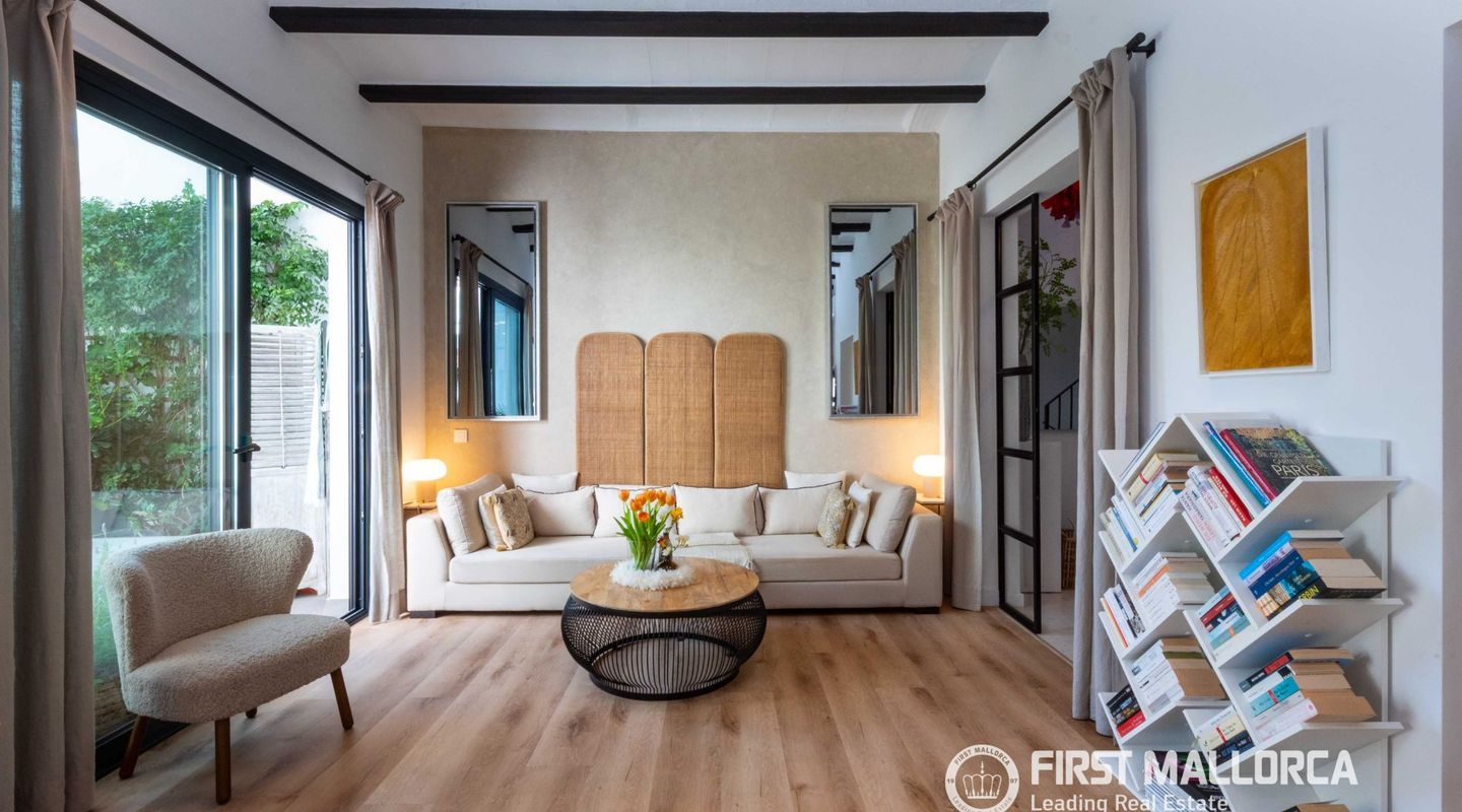 This exceptional, fully renovated townhouse combines Mediterranean elegance with modern lifestyle and offers a home full of light, space, and comfort across three levels. The open-plan living and dining area with high ceilings and large windows creates a bright, welcoming atmosphere where you immediately feel at ease. The modern, high-quality kitchen is separated by an elegant glass partition and invites you to cook and enjoy together.