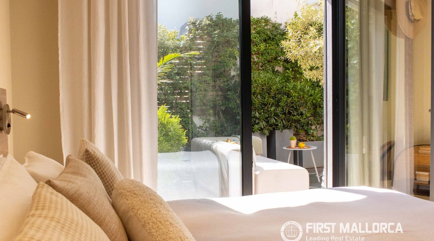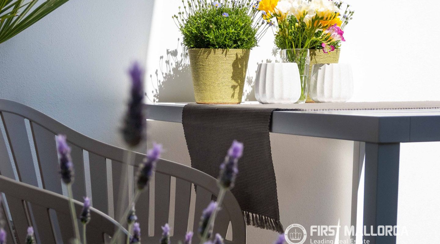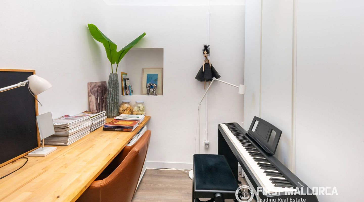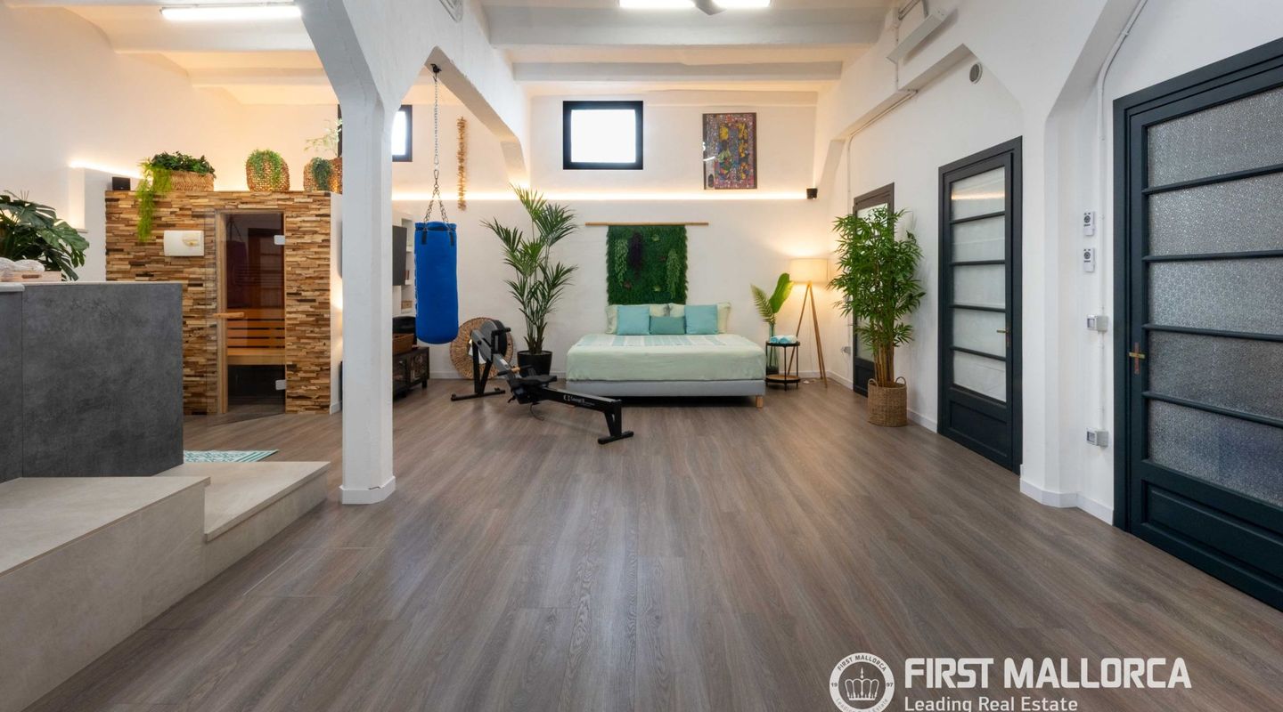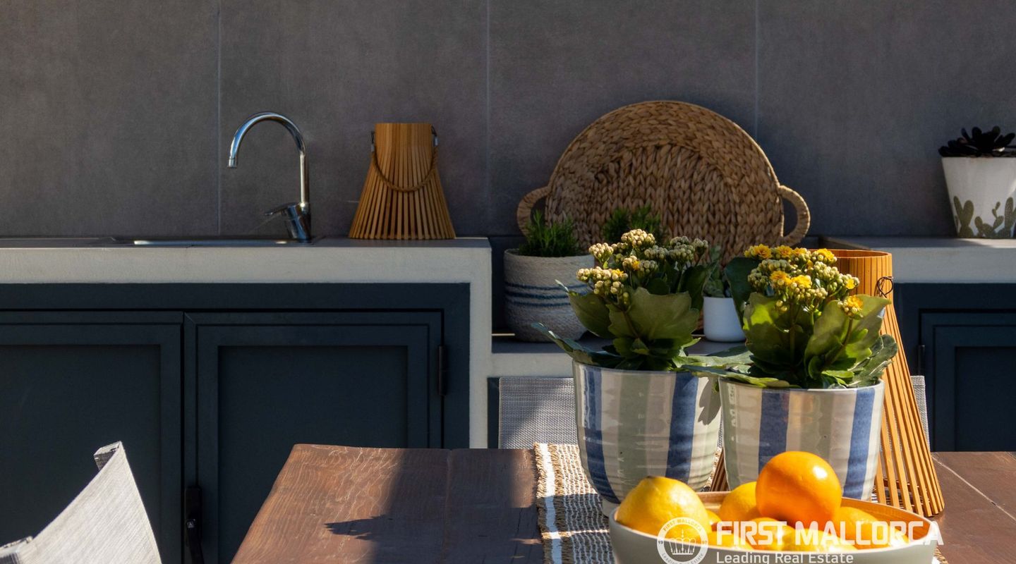 The approximately 150 m² rooftop terrace is a highlight: equipped with an outdoor kitchen, dining area, chill-out zones, and lounge spaces, it offers breathtaking panoramic views over the city and invites you to enjoy relaxed hours under the Mallorcan sun.
