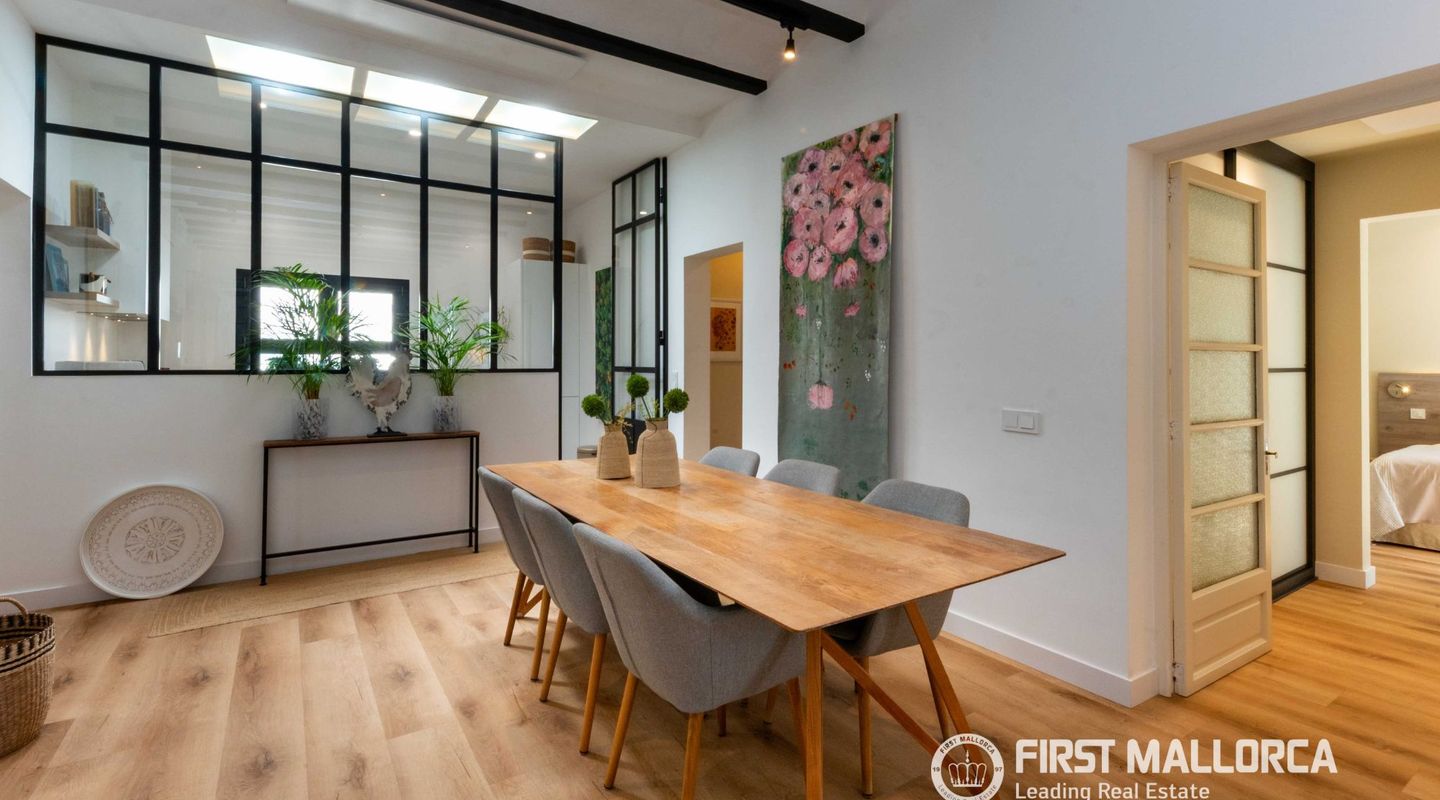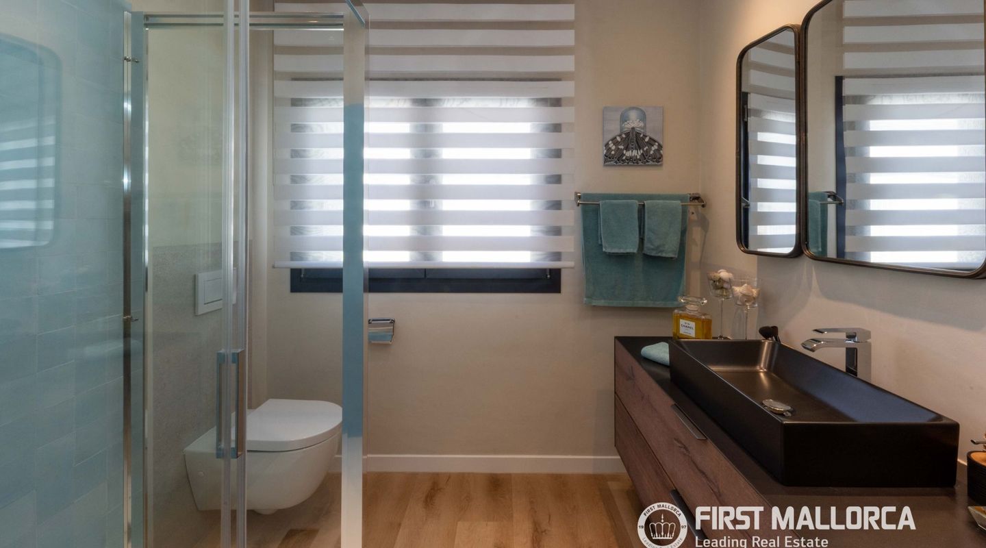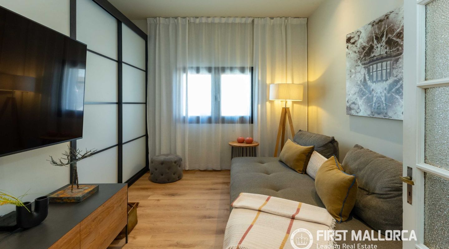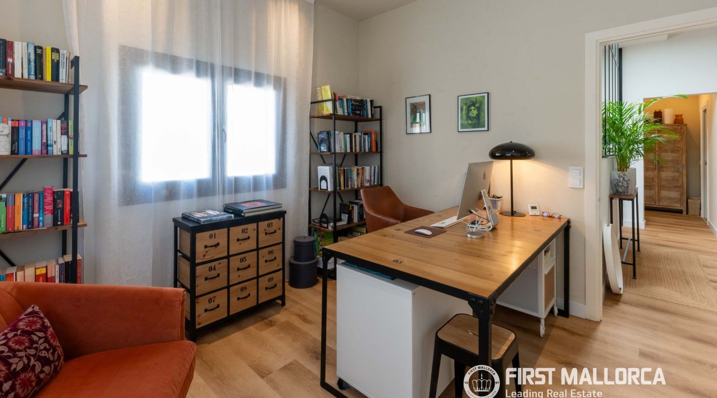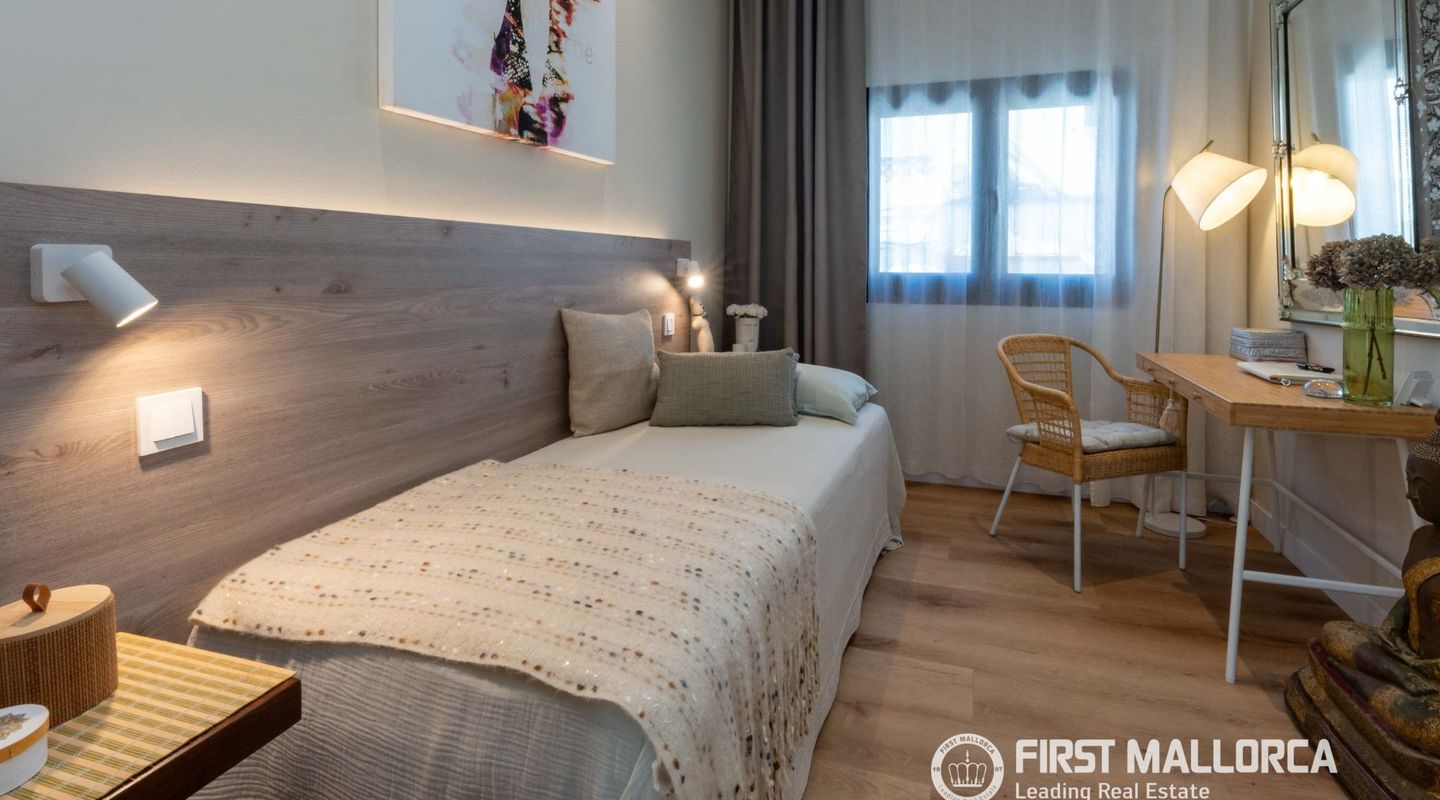 The approximately 150 m² rooftop terrace is a highlight: equipped with an outdoor kitchen, dining area, chill-out zones, and lounge spaces, it offers breathtaking panoramic views over the city and invites you to enjoy relaxed hours under the Mallorcan sun.