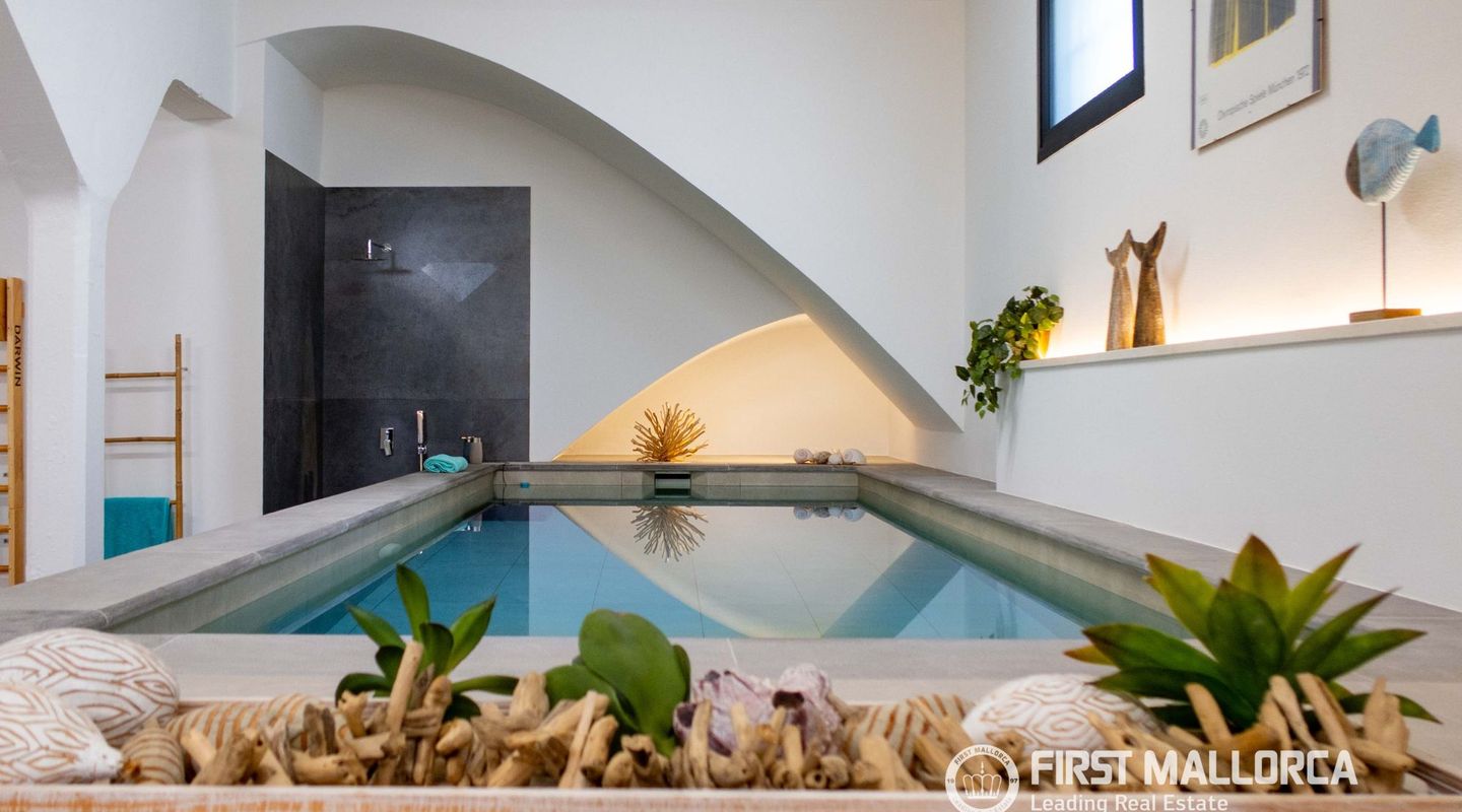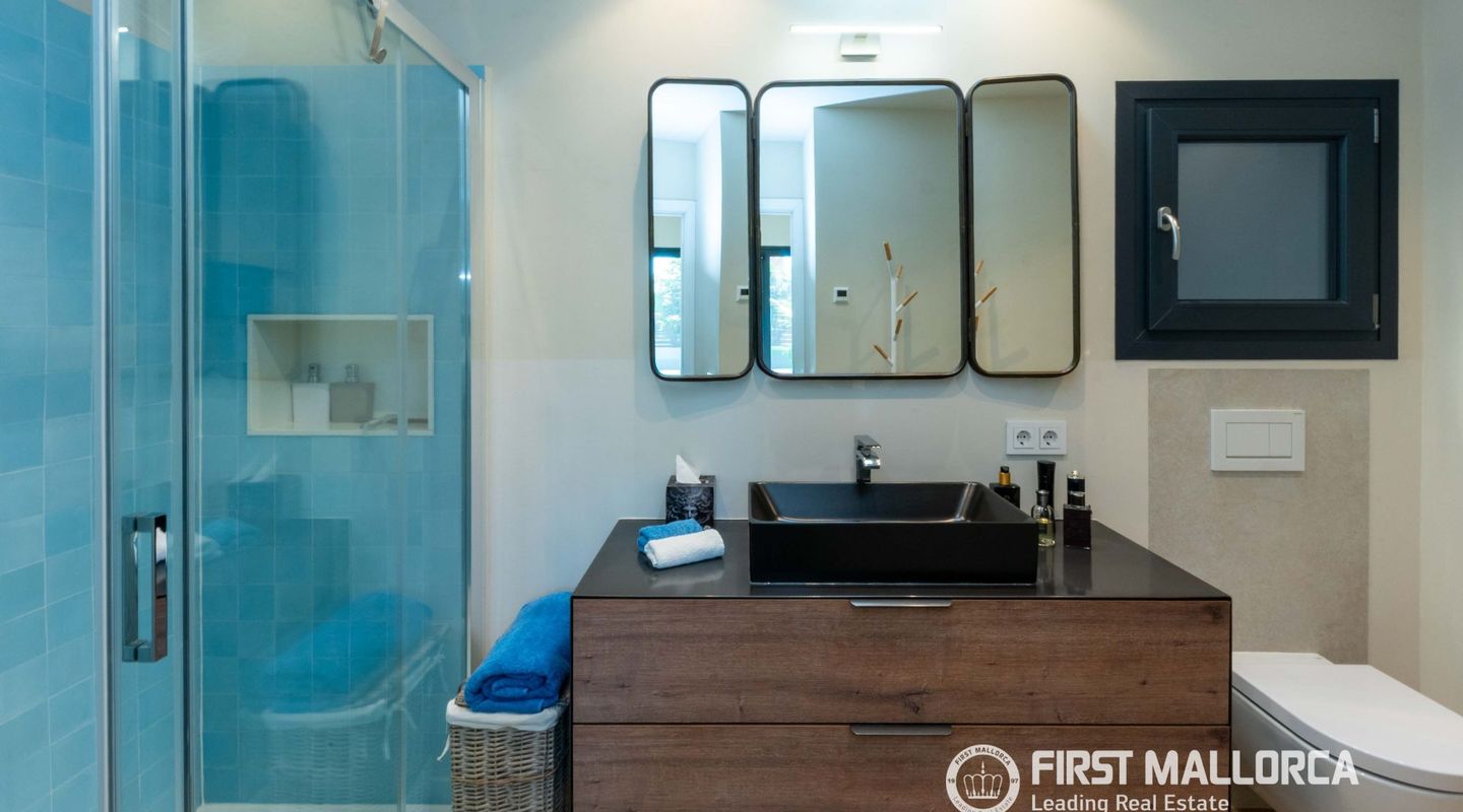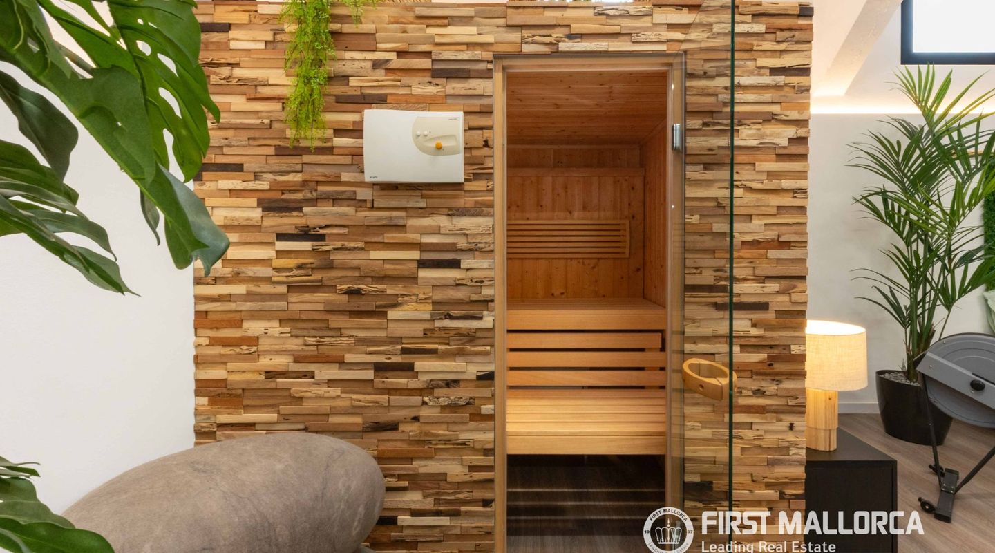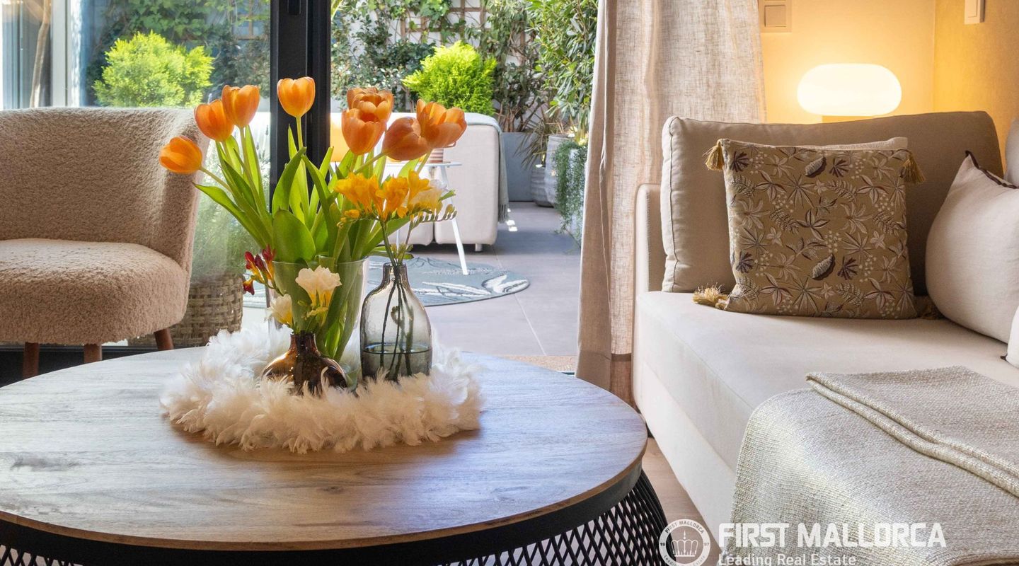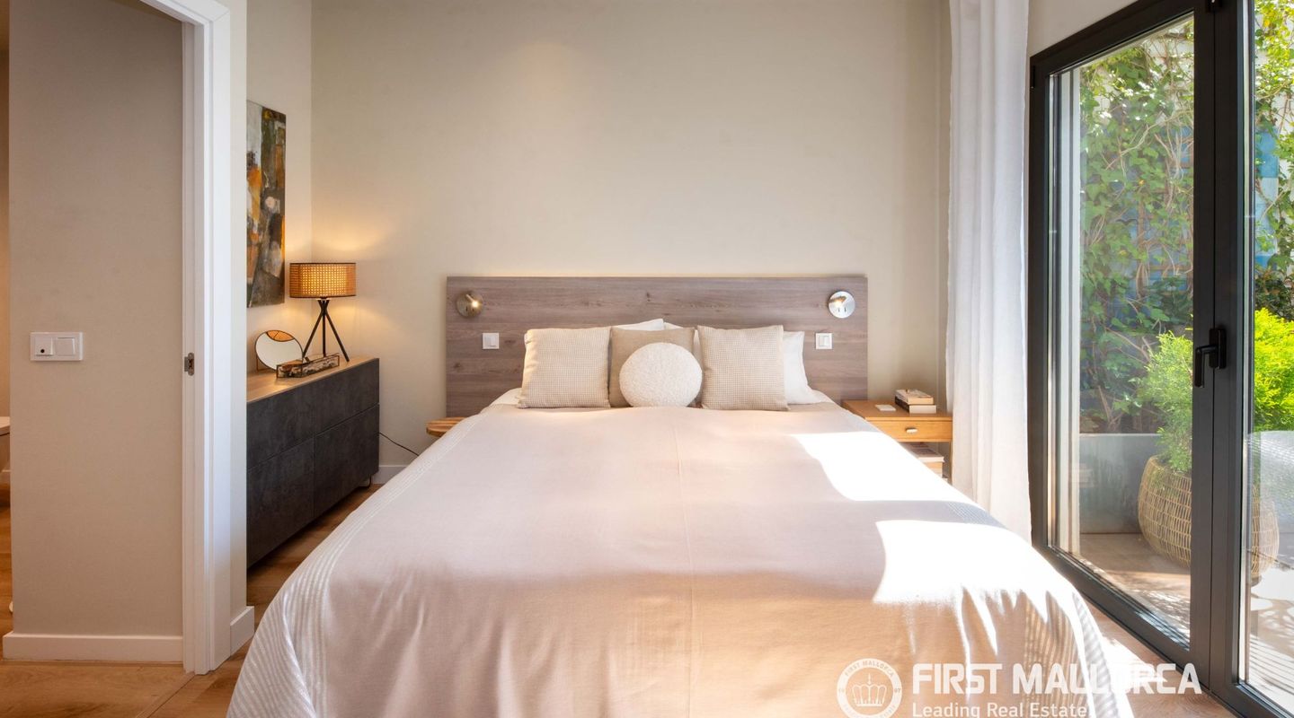 The approximately 150 m² rooftop terrace is a highlight: equipped with an outdoor kitchen, dining area, chill-out zones, and lounge spaces, it offers breathtaking panoramic views over the city and invites you to enjoy relaxed hours under the Mallorcan sun.
