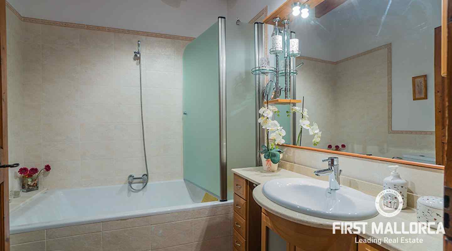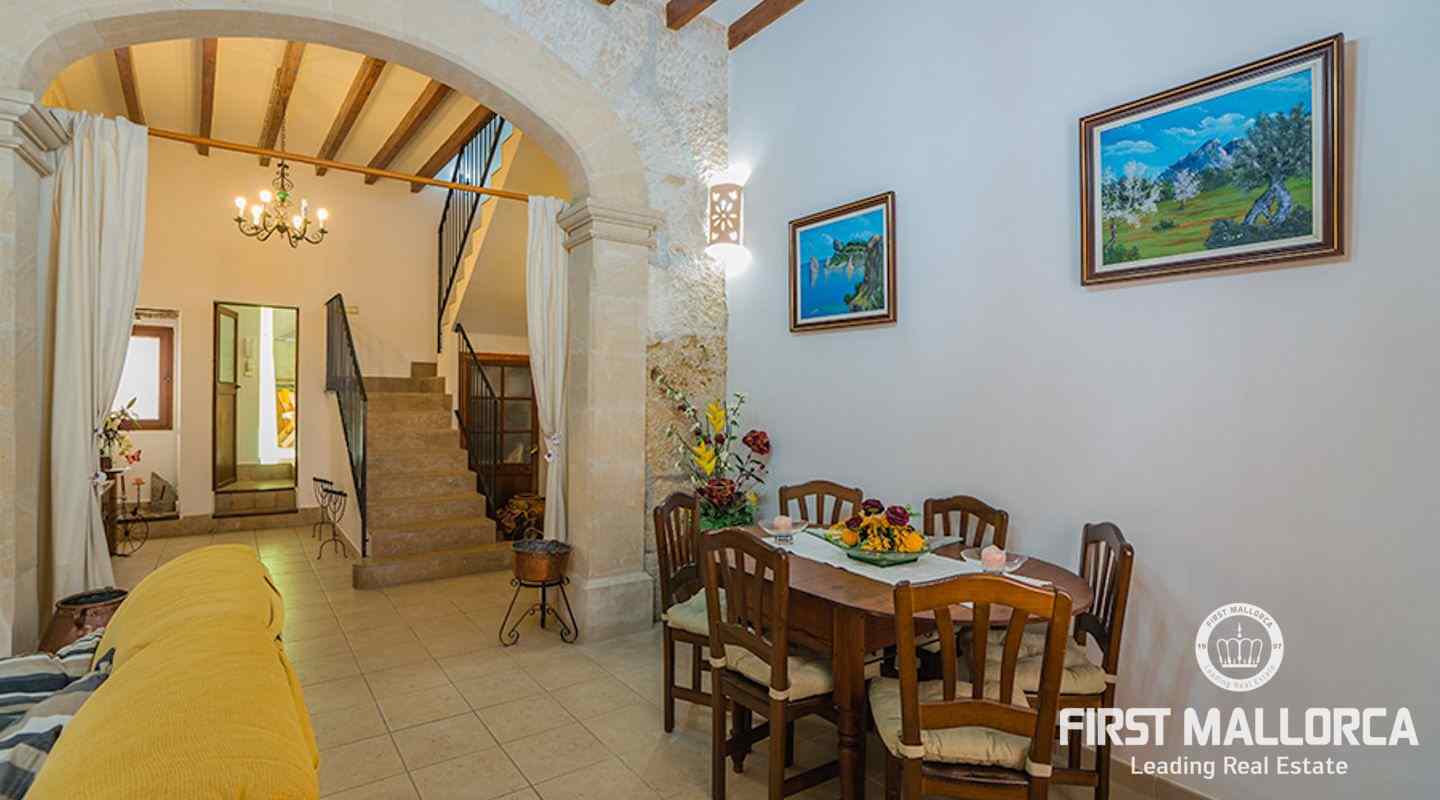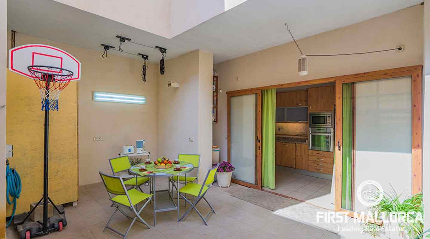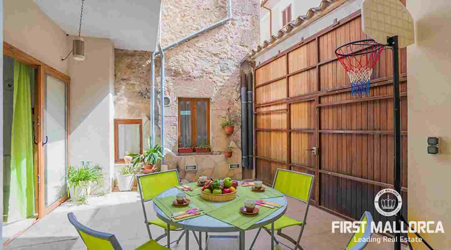 This village house is located just a few metres from the Plaza Major. The living space is distributed over a total of four bedrooms, four bathrooms and a living/dining area with adjoining fully equipped kitchen. From here, you can access the adjacent patio. This offers enough space for cosy get-togethers with family and friends. Another outdoor area in the form of a roof terrace can be reached via the second floor. From there you can enjoy a fabulous view of the village and the surrounding landscape. The property is characterised in particular by its traditional style elements such as round arches and high ceilings with wooden beams. Other features include air conditioning h/c and central heating. The charming village of Pollensa is characterised by its small streets, exclusive shops and restaurants. The marina of Puerto Pollensa with further restaurants and water sports activities is only a few minutes away by car. Please do not hesitate to contact our team at FIRST MALLORCA POLLENSA for further information.