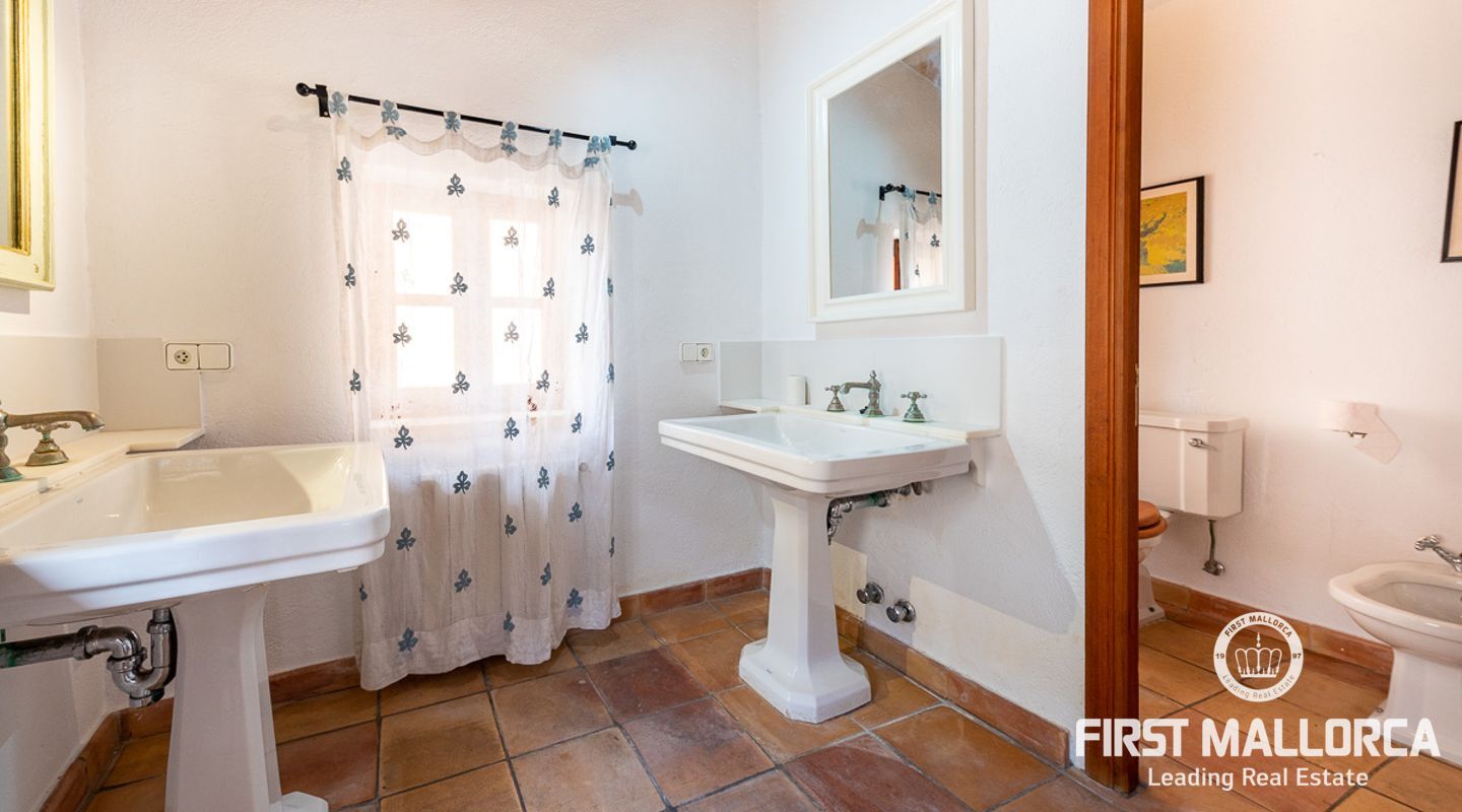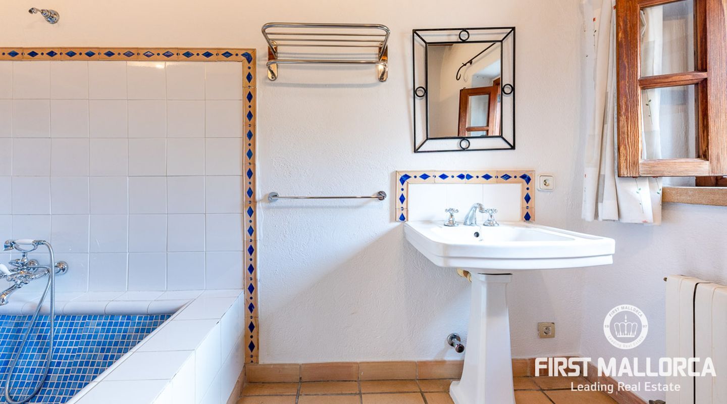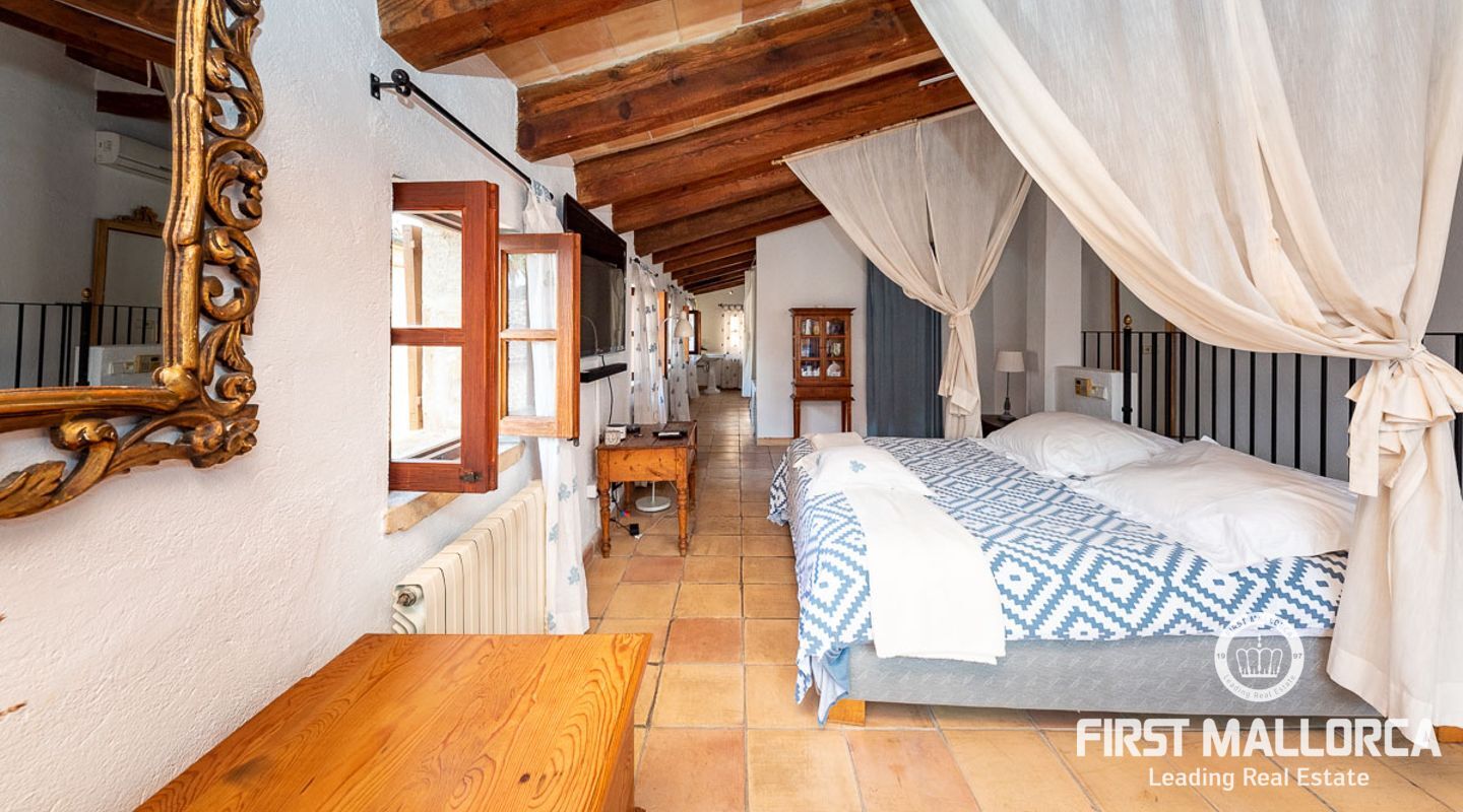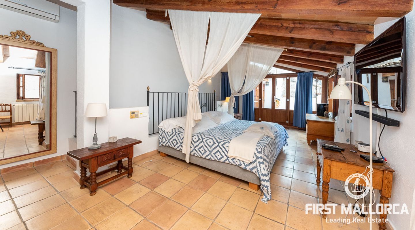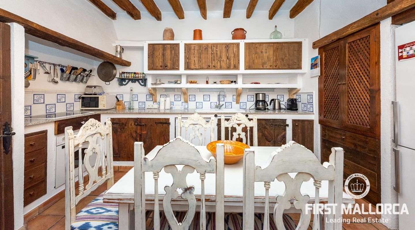 This charming townhouse, located in the historic centre of the village of Pollença, stands out in particular for its authentic original features such as the stone façade that retains the Mallorcan rustic style. The premises have a total plot size of 82m2 and constructed area of 248m2 is distributed over three floors. On the ground floor of the property we can find an open plan living room and dining room which is complemented by beautiful interior stone walls and wooden beams, you can also find the guest toilet and a fully fitted kitchen. On the second floor of the property, we are presented with two bedrooms, both of which are ensuite and a living area, which offers enough space to convert the area into a room that suits your needs. The highlight of this property is the top floor, where you find the master suite which opens out onto a terrace 17m2, that offers spectacular views of the mountains and village of Pollença. As well as being surrounded by the history and culture of this beautiful northern town, this perfect location also ensures access to all amenities and essential services. Do not hesitate to contact our FIRST MALLORCA team for more information and to arrange a viewing.