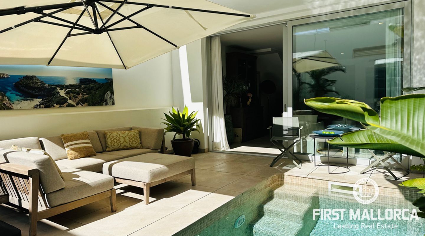 This charming village house in Portocolom has been completely refurbished to a very high standard and offers everything you need to enjoy the green surroundings and beautiful sea views, as well as being able to move around the village on foot. Located in a very quiet area of Portocolom, the house has three floors and a patio with swimming pool and lots of vegetation, where you can enjoy many hours of sunshine. It has two entrances, as it occupies the whole width of a block. Two bedrooms, one of them with bathroom en suite and another separate bathroom, guest toilet, living room with fireplace, dining room and kitchen, guest toilet, different terraces with beautiful views, winter lounge and an upper terrace, as well as air conditioning h/c and underfloor heating, are some of the qualities of this magnificent town house that invites you to enjoy our Mediterranean lifestyle 365 days a year. Portocolom is a very special enclave that offers all kinds of services and amenities. Golf courses, beaches and beautiful coves are within walking distance of this quintessential fishing village, with the best fish restaurants in the area.