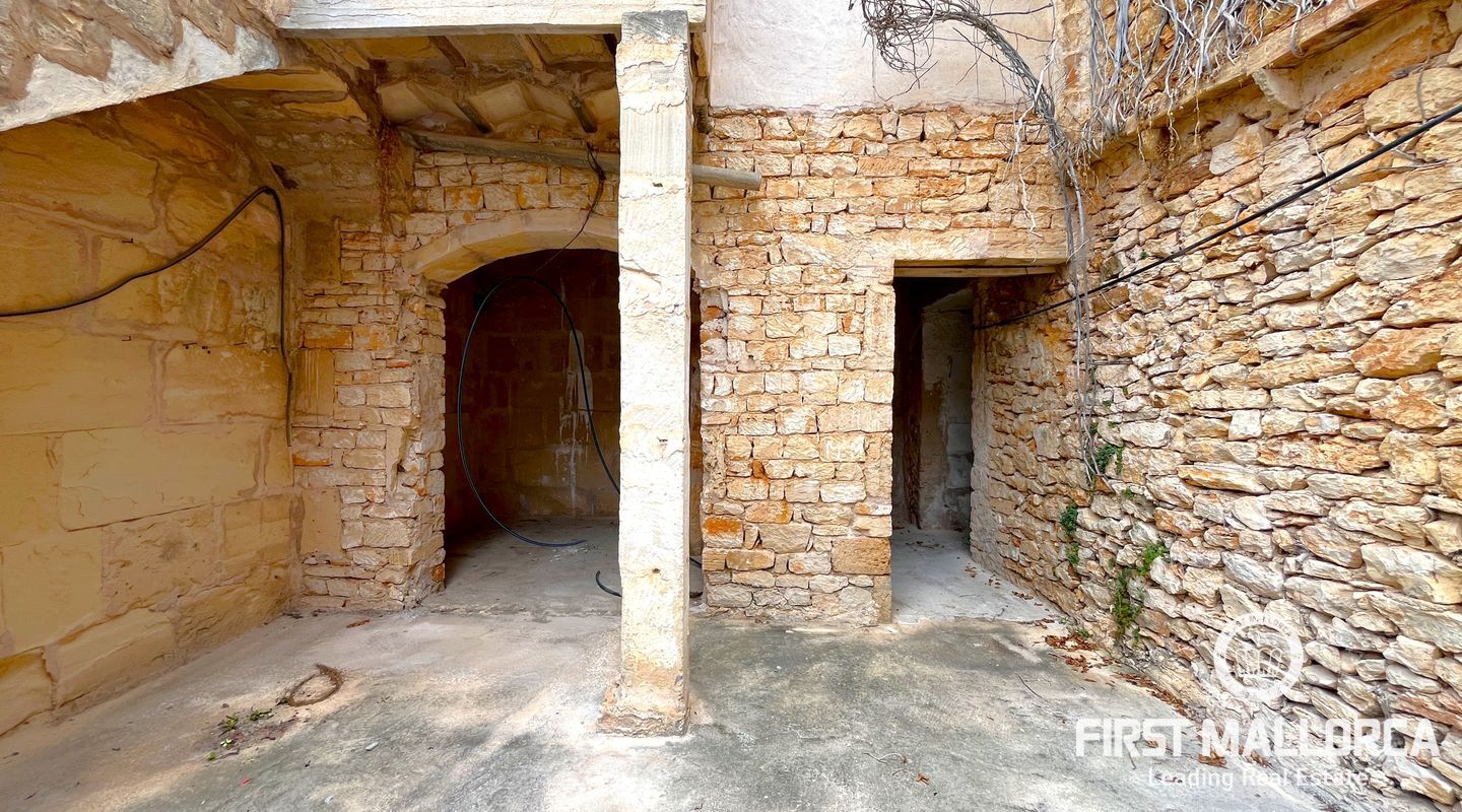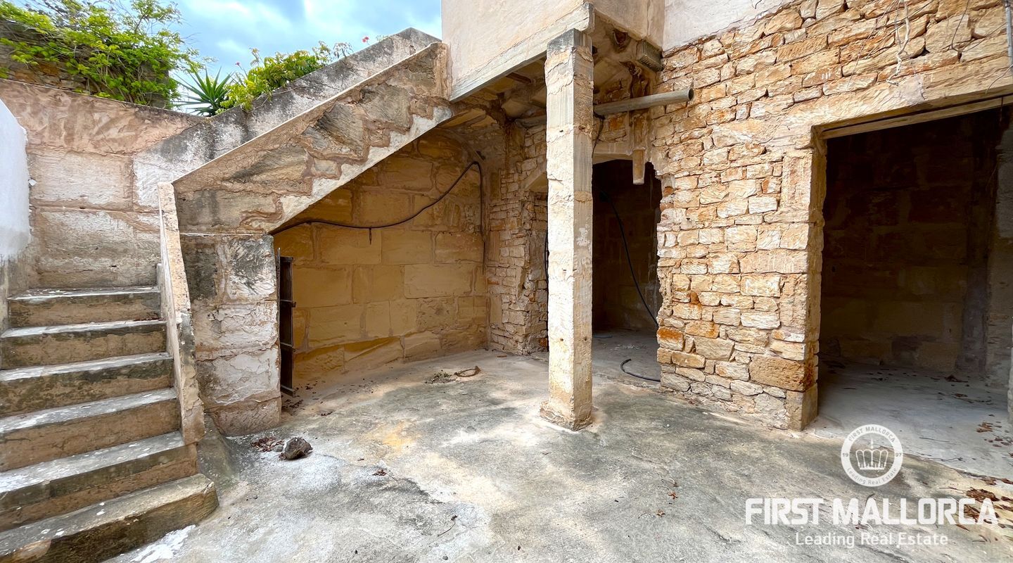 It has a total of 206 m2 built area, distributed on the ground floor with a garage and an interior patio, the ideal place for an outdoor kitchen and a small pool to create a cozy atmosphere surrounded by Mallorcan and sandstone cladding. On the first floor, there are two bedrooms, a toilet, a living room, a kitchen, a terrace, and a balcony. All these spaces offer a wide variety of options for a renovation with a layout adaptable to any taste.