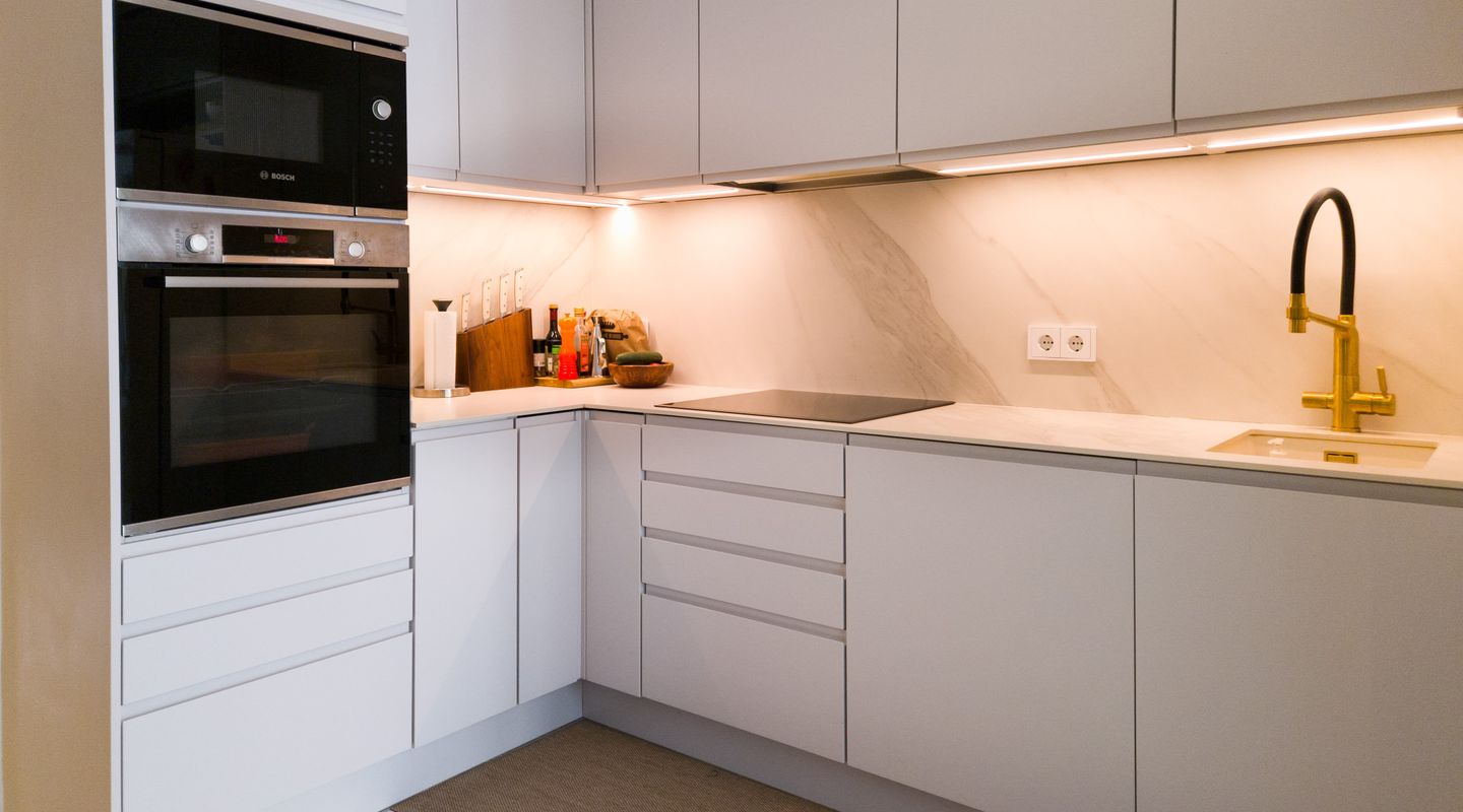 Every window is double-glazed with UV protection and designed to tilt or fully open, flooding the home with natural light and fresh air. A state-of-the-art water system delivers softened, filtered, and chilled drinking water throughout. The sleek, modern kitchen is fitted with premium Bosch appliances and seamlessly complements the home’s contemporary aesthetic.