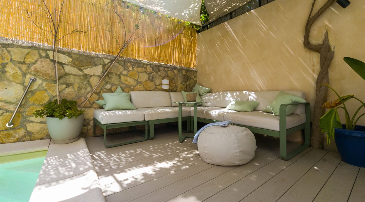 Refurbished to the highest standard in late 2023, the home offers approximately 260 m² of thoughtfully designed living space. Micro cement floors run throughout, paired with underfloor heating and integrated air conditioning powered by a highly efficient, low-consumption heat pump. Smart home technology ensures effortless control of climate systems and the plunge pool, whether on-site or remotely.