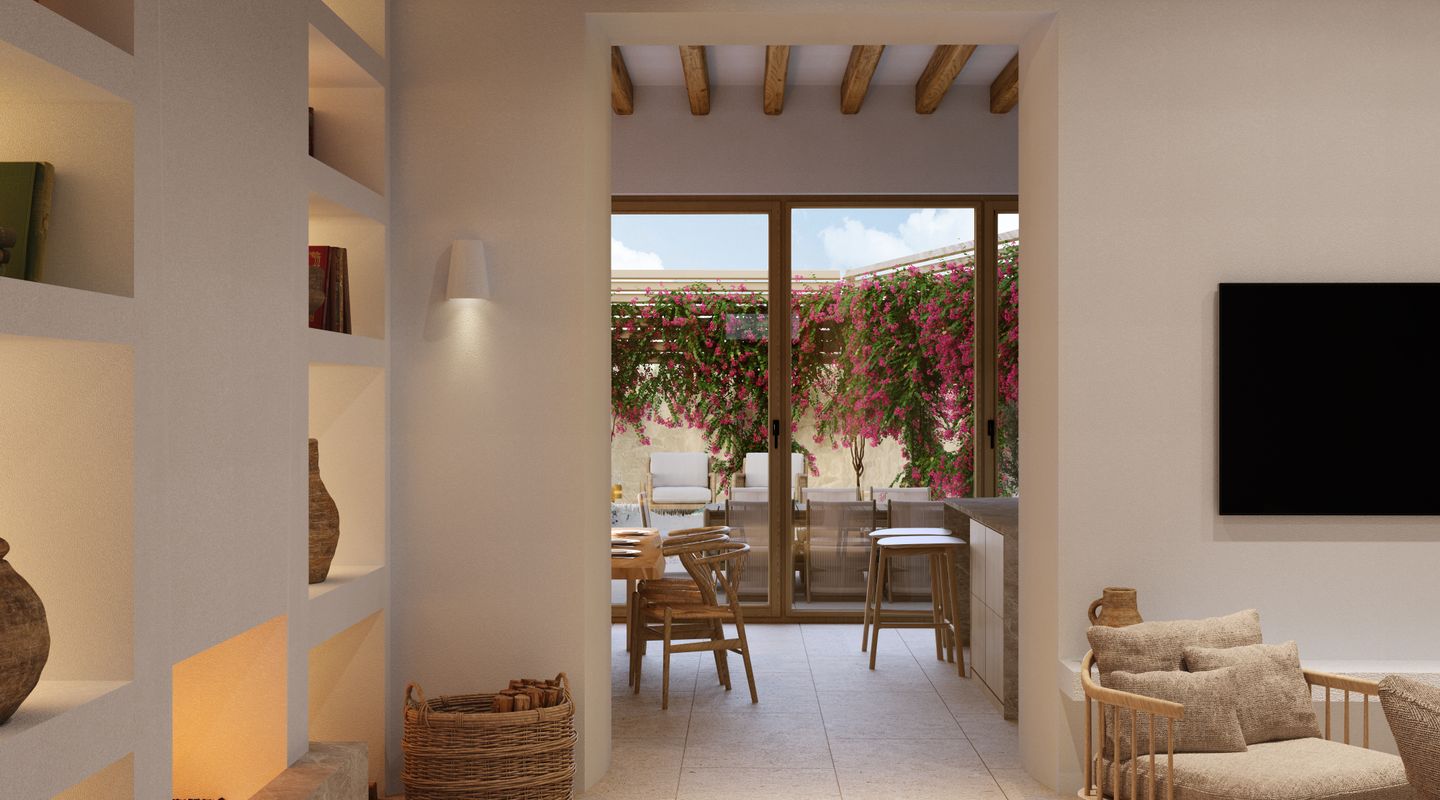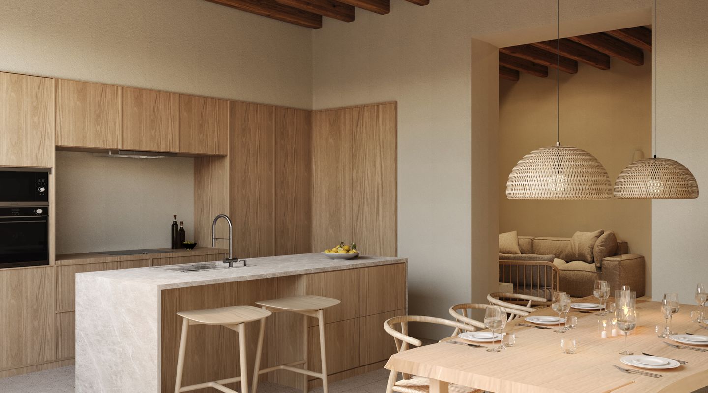 The residence blends traditional Mallorcan charm with high-end contemporary design, preserving elements that maintain its historic character while adding modern features such as integrated air conditioning and underfloor heating, ensuring maximum comfort throughout the year.