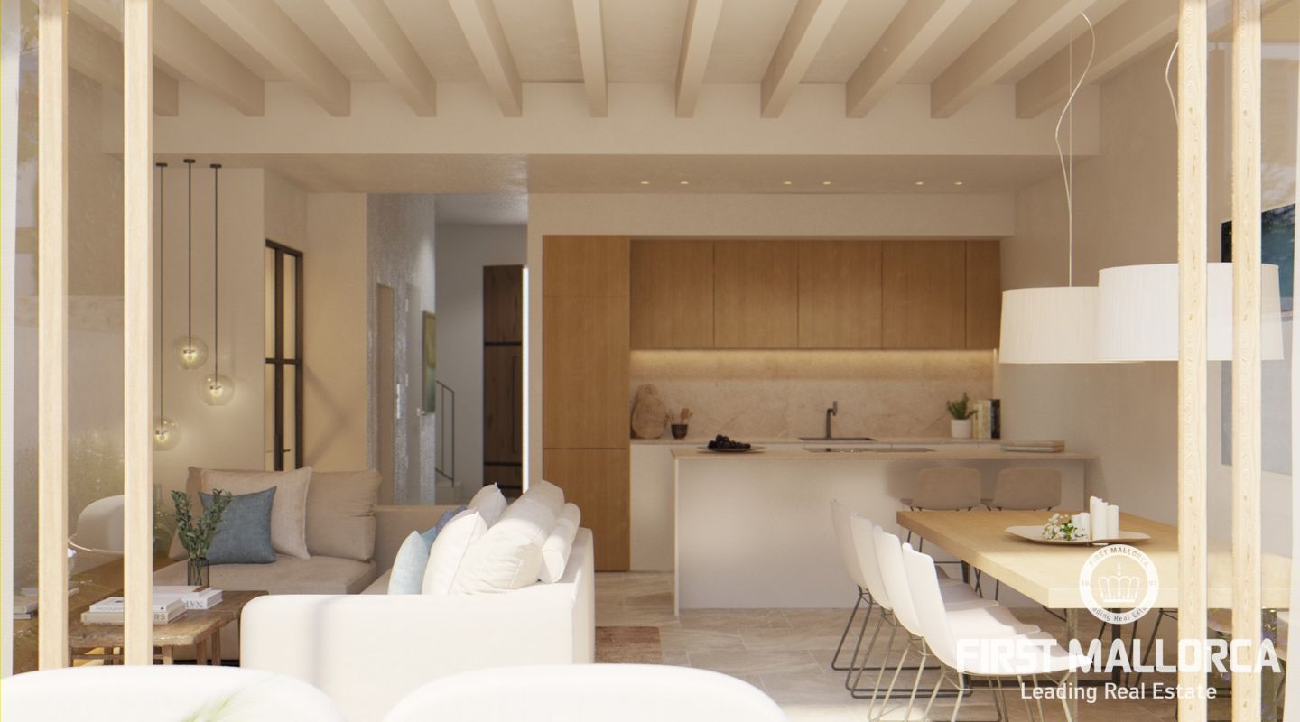 All units will have three floors and a private courtyard. The garage and the open living-dining area with integrated kitchen are located on the ground floor. At this point, you can freely design the upper floors in terms of room layout. The first floor offers enough space for three full bedrooms, two bathrooms and a laundry room. The upper floor lends itself to being used as a master bedroom with a private terrace overlooking the countryside or the village. However, the area is large enough to also accommodate two bedrooms.