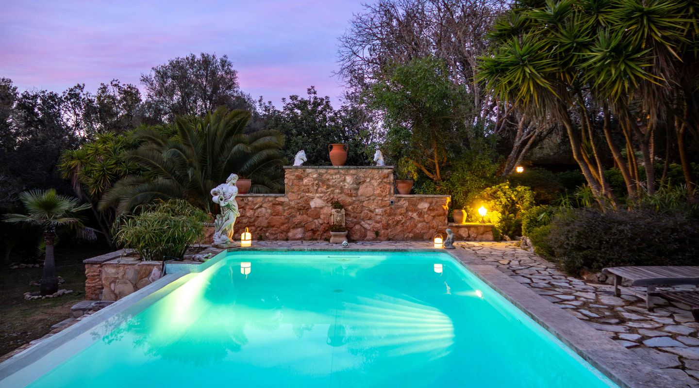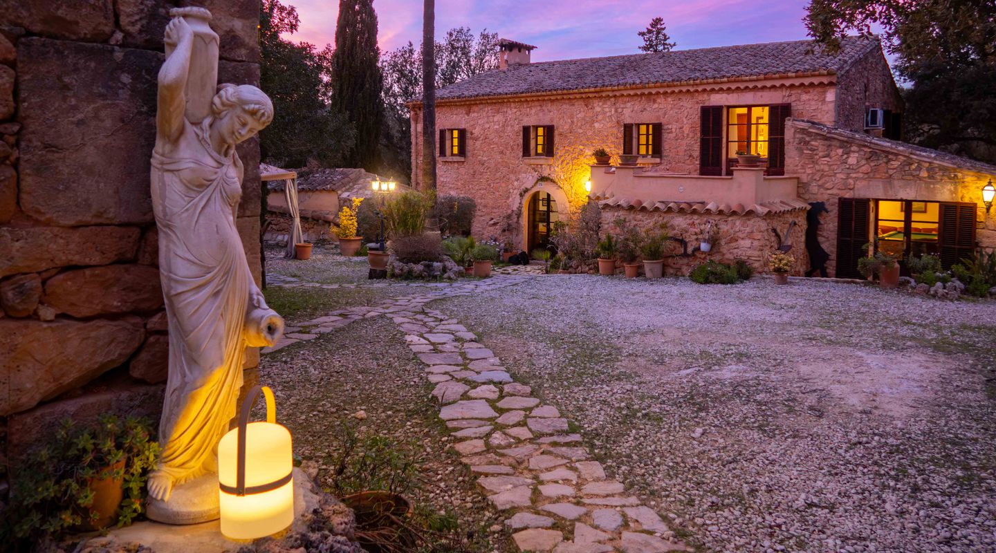 With approximately 600 m² of built space on an extensive plot of over 43,000 m², the property offers privacy, room to breathe, and a privileged natural environment, just 20 minutes from the airport and 30 minutes from Palma city center. The main house, spread over two floors, stands out for its warm and elegant atmosphere.