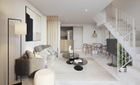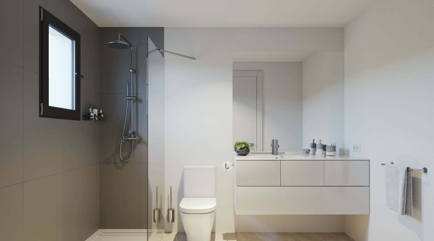 The villas will be handed over with furnished kitchens, hot/cold air conditioning by aerothermal energy and an outdoor parking space. At this stage of construction, you can also have a great influence on the design of your new home. For example, you can still change the floor coverings or kitchen fronts or decide to build a private pool in the garden.