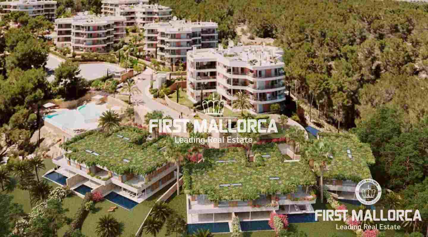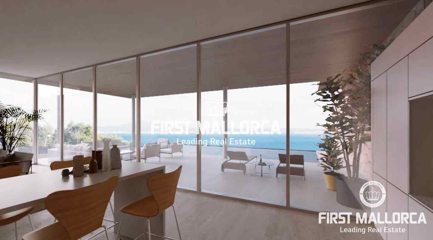 This luxury villa with views located in the much sought-after south-west of the island, in Sol de Mallorca, between Palma and Port Adriano. The semi-detached property enjoys an excellent location surrounded by a green zone and Mediterranean gardens, with direct access to a small sandy bay.
