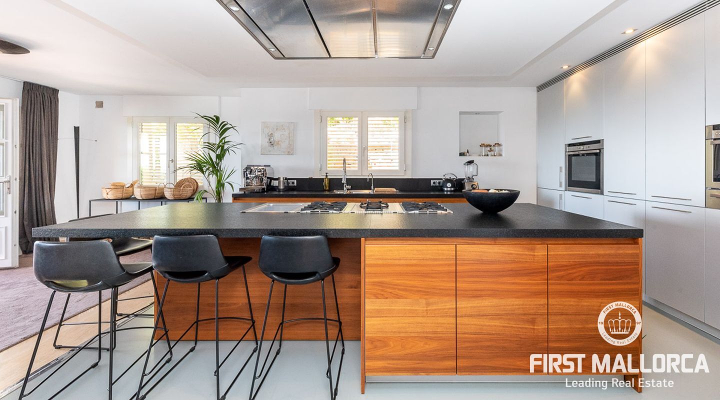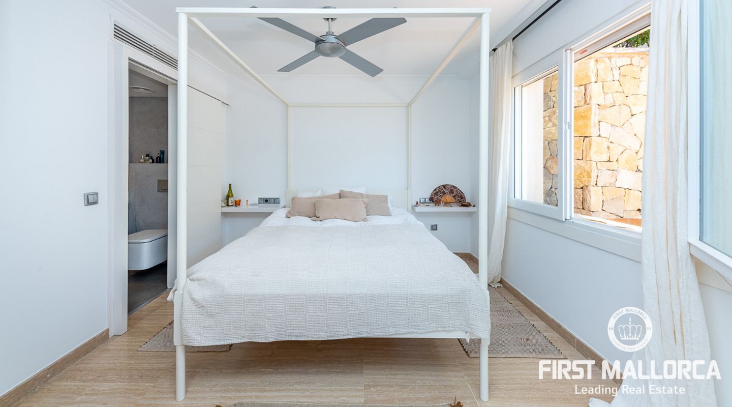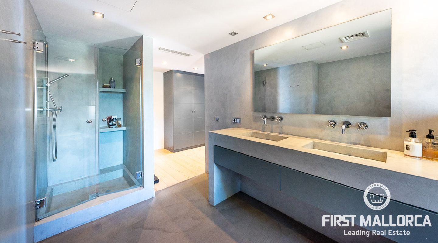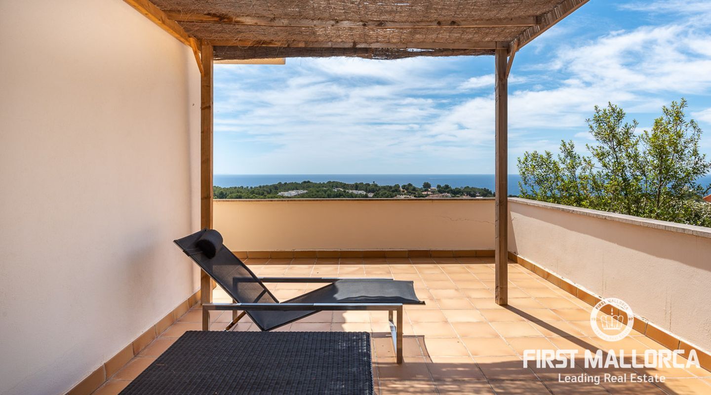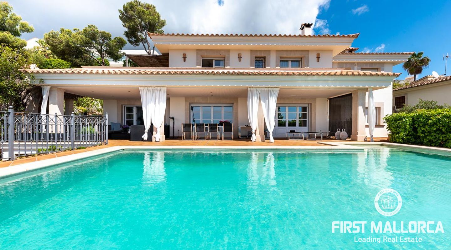 We are proud to present this sophisticated villa offering panoramic sea and golf views from its elevated position in the upmarket residential area of Anchorage Hill. It is easy to feel at home here immediately thanks to its spacious and bright interior which is totally connected to the generous covered and open terraces, allowing one to enjoy to the fullest the essence of Mediterranean living. Great care has been taken to create a comfortable and practical but yet very elegant family home which is also prepared for entertaining with family and friends at its highest level. Unqiue features of this fine piece of Mallorca real estate include: hot & cold AC, marble flooring, lift, barbecue, extensive storage and private garaging for 4 vehicles. The extensive sea views and enjoyed from all rooms and bedrooms as well as from the stunning pool area. Anchorage Hill in Bendinat is one of the island's absolut top residential areas, allowing easy access to virtually everything - the elegent Marina of Puerto Portals, the Royal Bendinat Golf Course, the extraordinary beaches of the southwest coast and still only 10 minutes into the city centre of Palma de Mallorca.