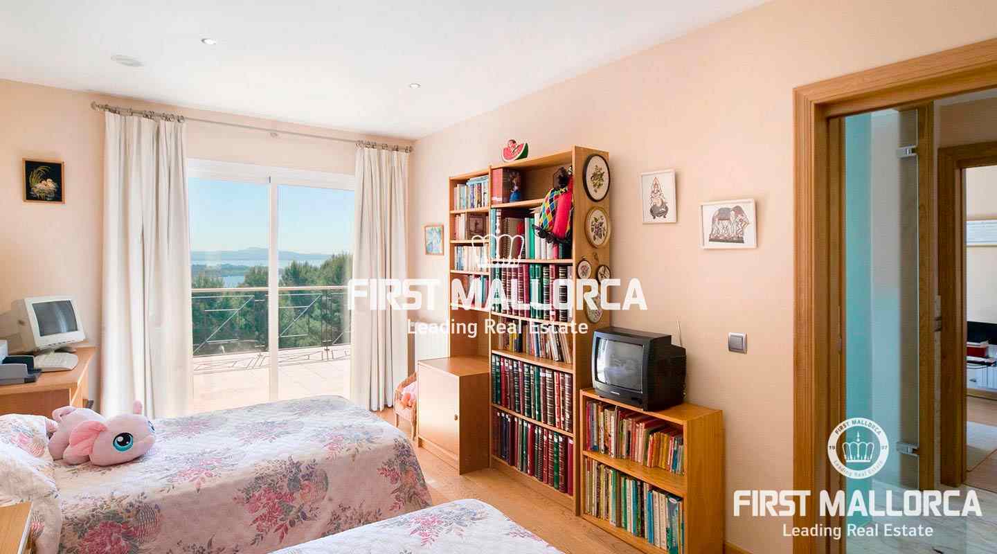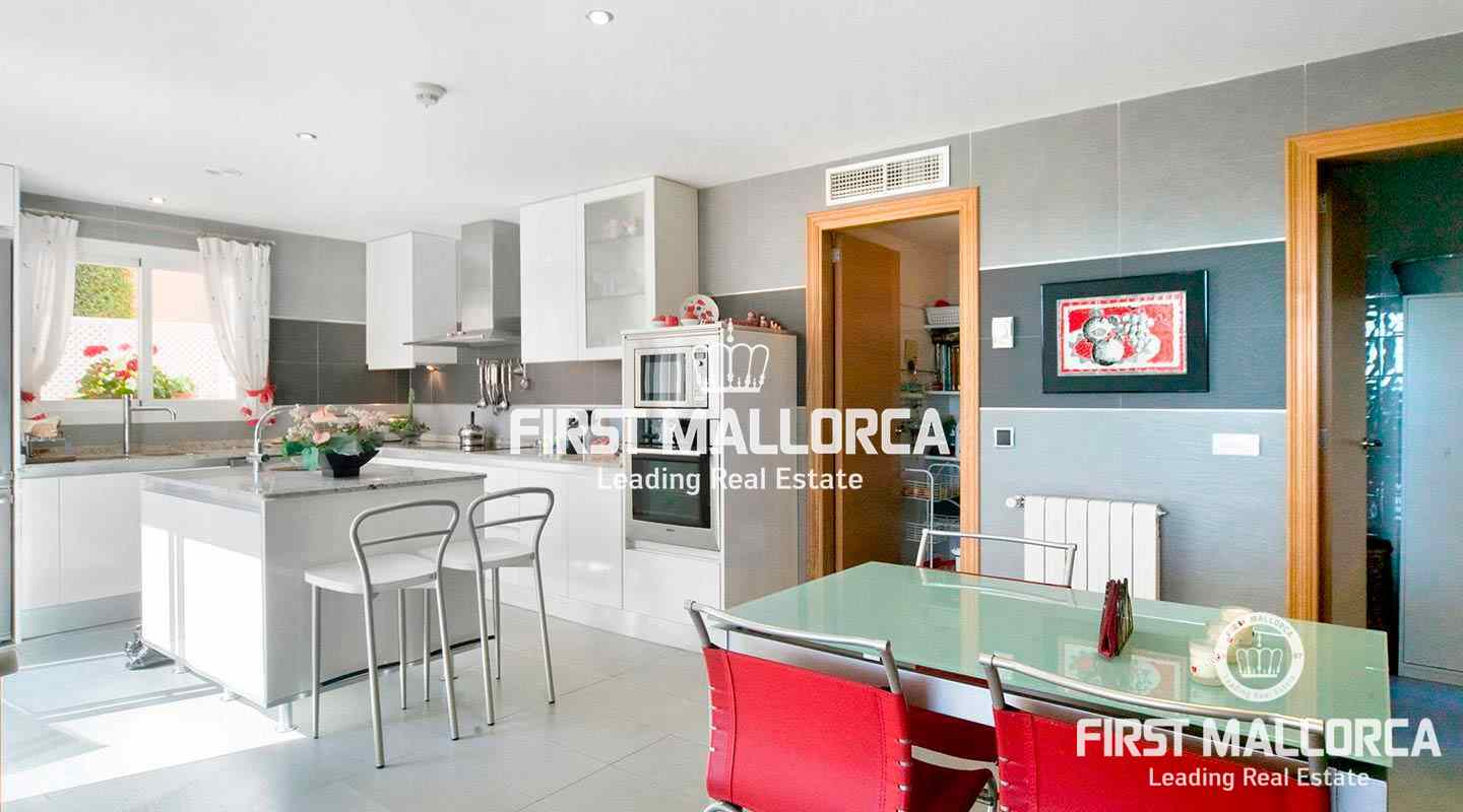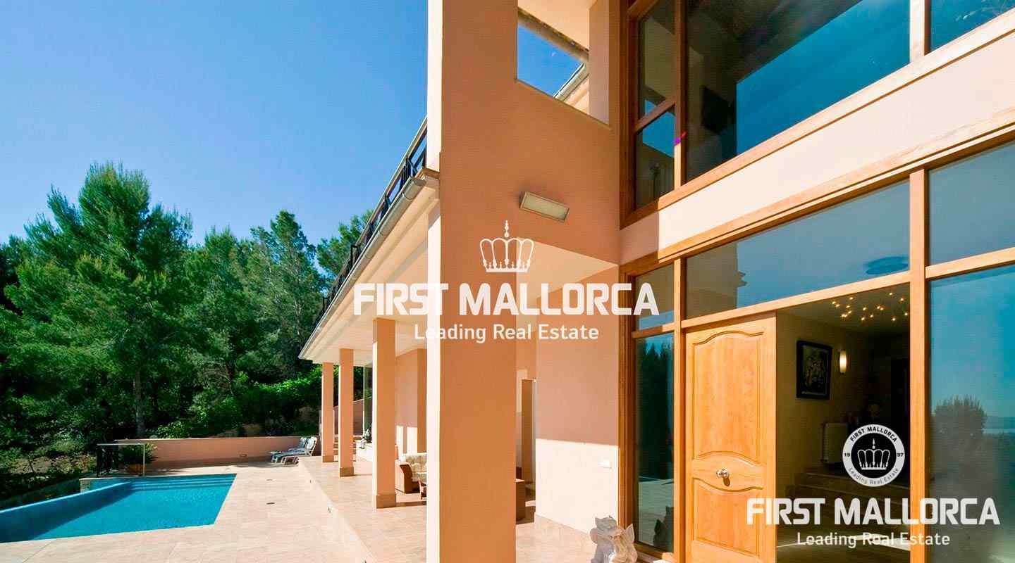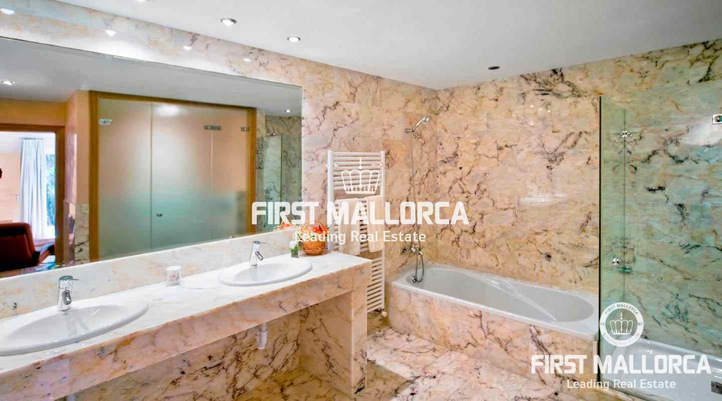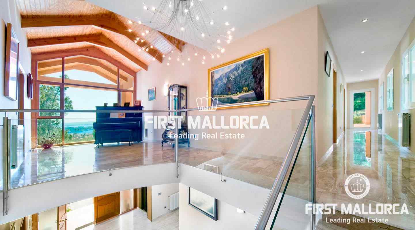 This pristine, bright and sunny villa situated in the exclusive residential area of Bendinat enjoys extensive views towards the bay of Palma. The property has a landscaped Mediterranean garden and is adjacent to a green zone ensuring privacy. On the ground floor, the villa has a double height ceiling entrance hall, a spacious living room with fireplace, a dining room and a live-in kitchen. There is also a laundry room, an interior garden patio, a guest bedroom suite and a guest-WC on the same floor. A marble staircase leads up to the first floor, where one finds the master bedroom with bathroom en suite and dressing room, as well as 2 other bedrooms sharing an interconnecting bathroom. Further features of the property include central heating, air conditioning h/c, parquet and marble flooring, double garage with lift access to the living level and a private swimming pool. Bendinat is undoubtedly one of Mallorca's top addresses thanks to its peaceful residential neighbourhoods and still easy access to the centre of Palma in 10 minutes by car. The international airport can be reached in less than 20 minutes.