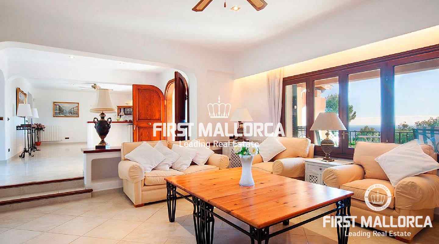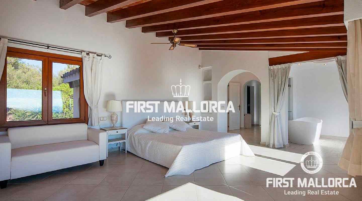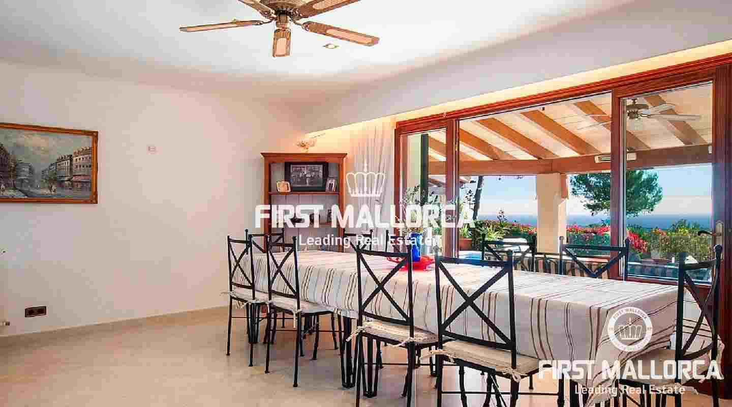 This Mallorca property has 5 bedrooms, 4 of them with en-suite bathrooms and the spacious master bedroom additionally with a dressing room and a well-appointed bathroom. The living-dining room is laid out over 2 levels with direct access out to the sea view terraces and the garden patio. The fully equipped kitchen is directly connected to the dining room and has an adjacent utility room. Further features include partial air conditioning hot/ cold, BBQ, summer kitchen and a garage. The villa is sold completely furnished.