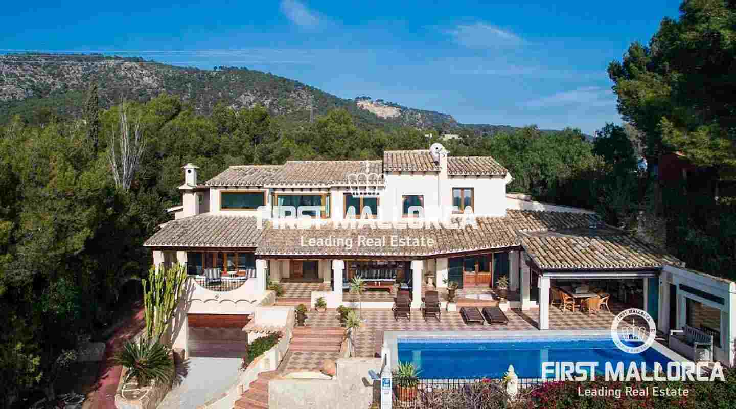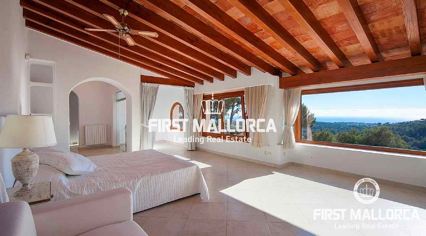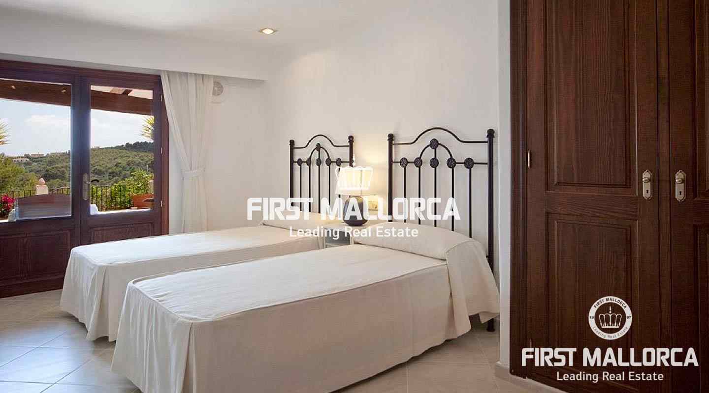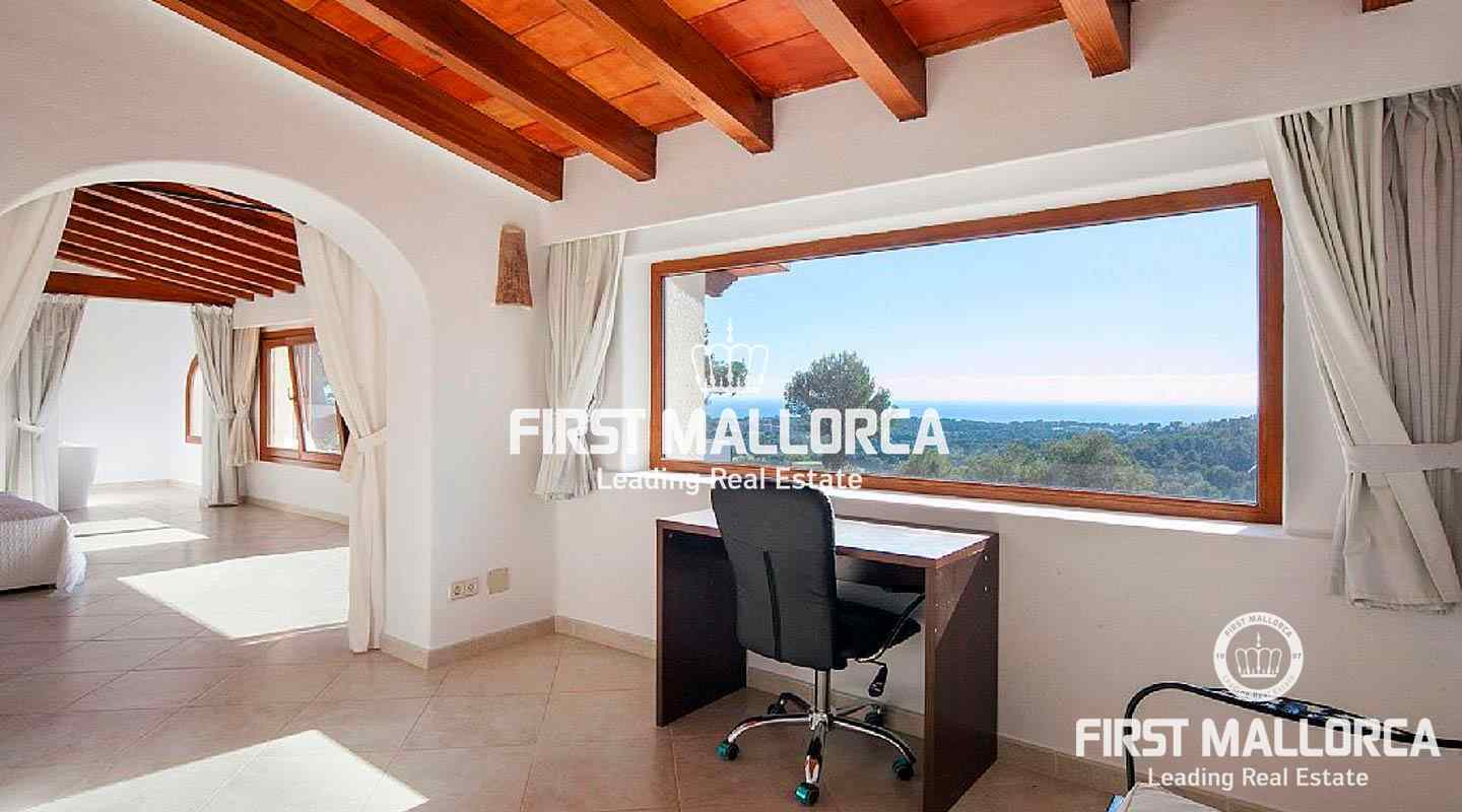This Mallorca property has 5 bedrooms, 4 of them with en-suite bathrooms and the spacious master bedroom additionally with a dressing room and a well-appointed bathroom. The living-dining room is laid out over 2 levels with direct access out to the sea view terraces and the garden patio. The fully equipped kitchen is directly connected to the dining room and has an adjacent utility room. Further features include partial air conditioning hot/ cold, BBQ, summer kitchen and a garage. The villa is sold completely furnished.