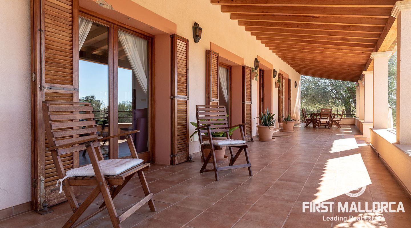 The constructed area of approx. 300m2 offers, on one level, a large living room with fireplace and high ceilings with wooden beams, a dining room, a fully equipped kitchen with a utility room, 4 bedrooms, 3 bathrooms, one of them en suite. From the living and dining room you have access to a huge covered terrace. Outside there is a large (72m2) swimming pool with a partially covered pool terrace. In the basement there is also a spacious garage with space for 5 cars and a storage room. The equipment includes gas central heating, double glazing, fireplace, terracota floors, complete kitchen, etc.