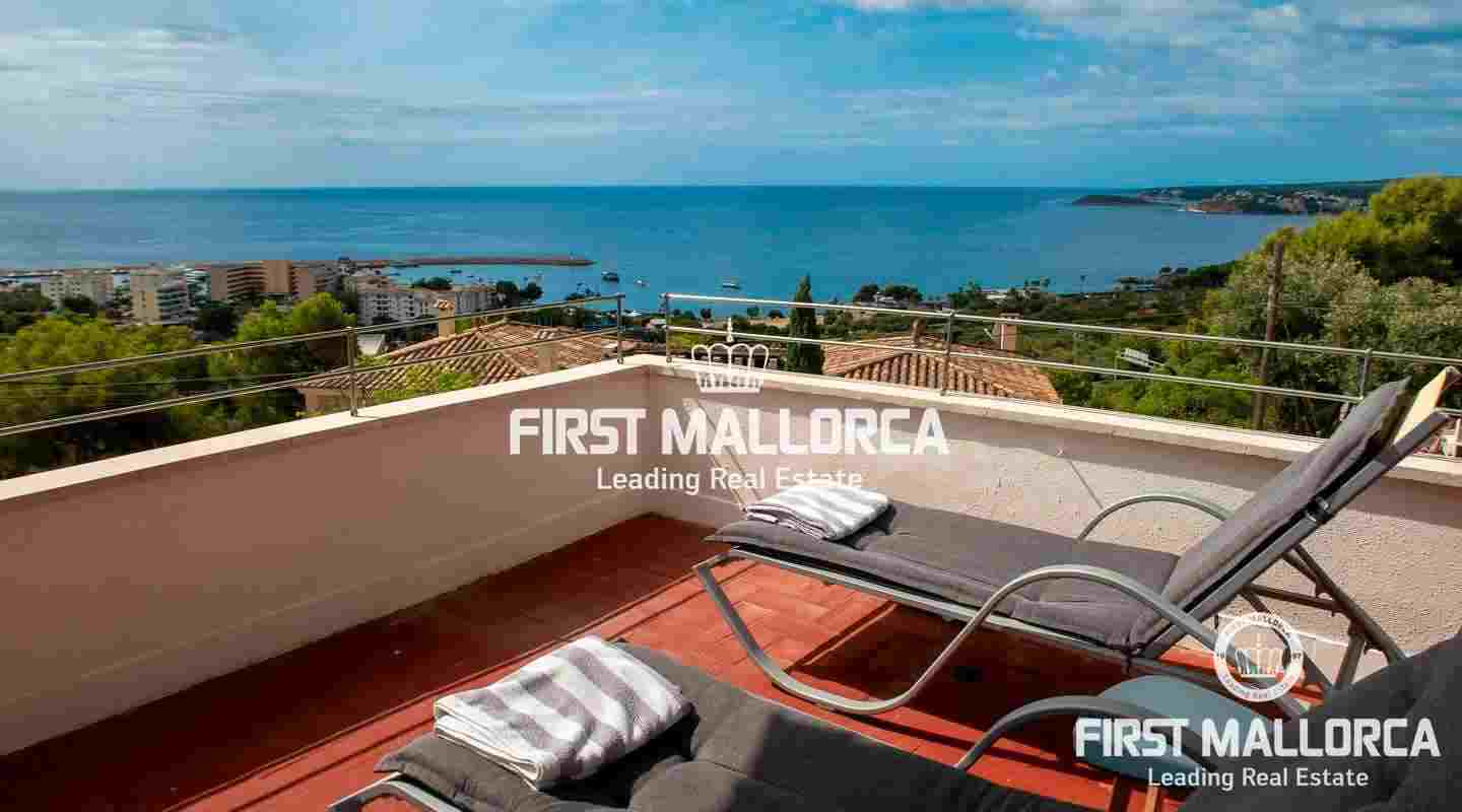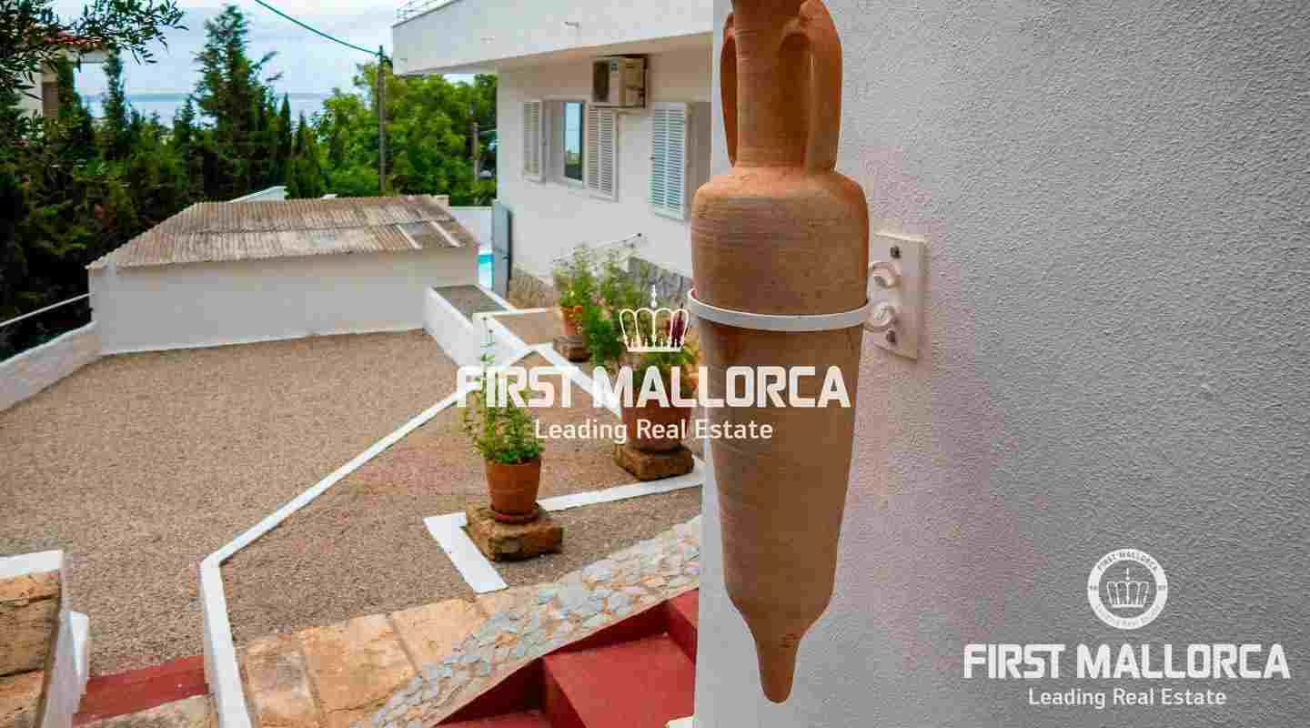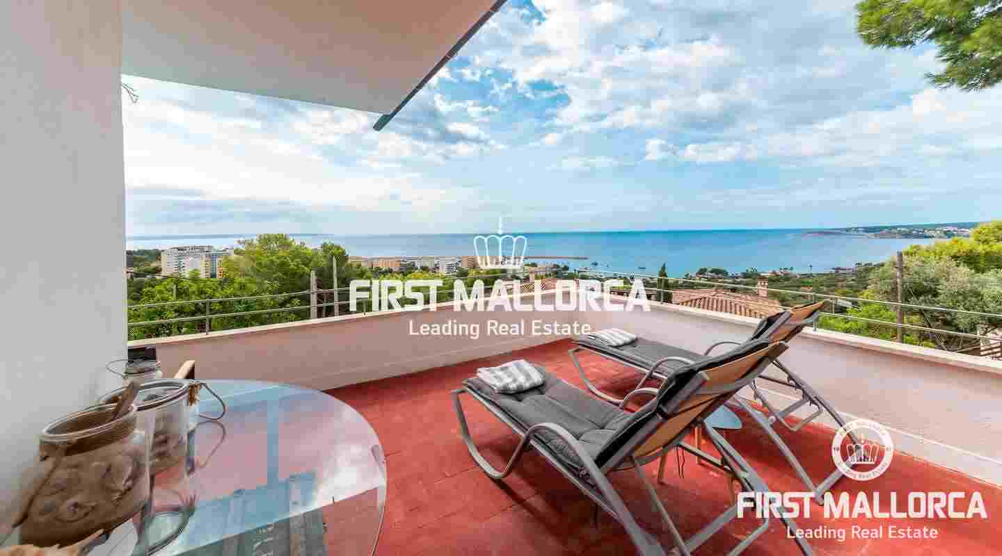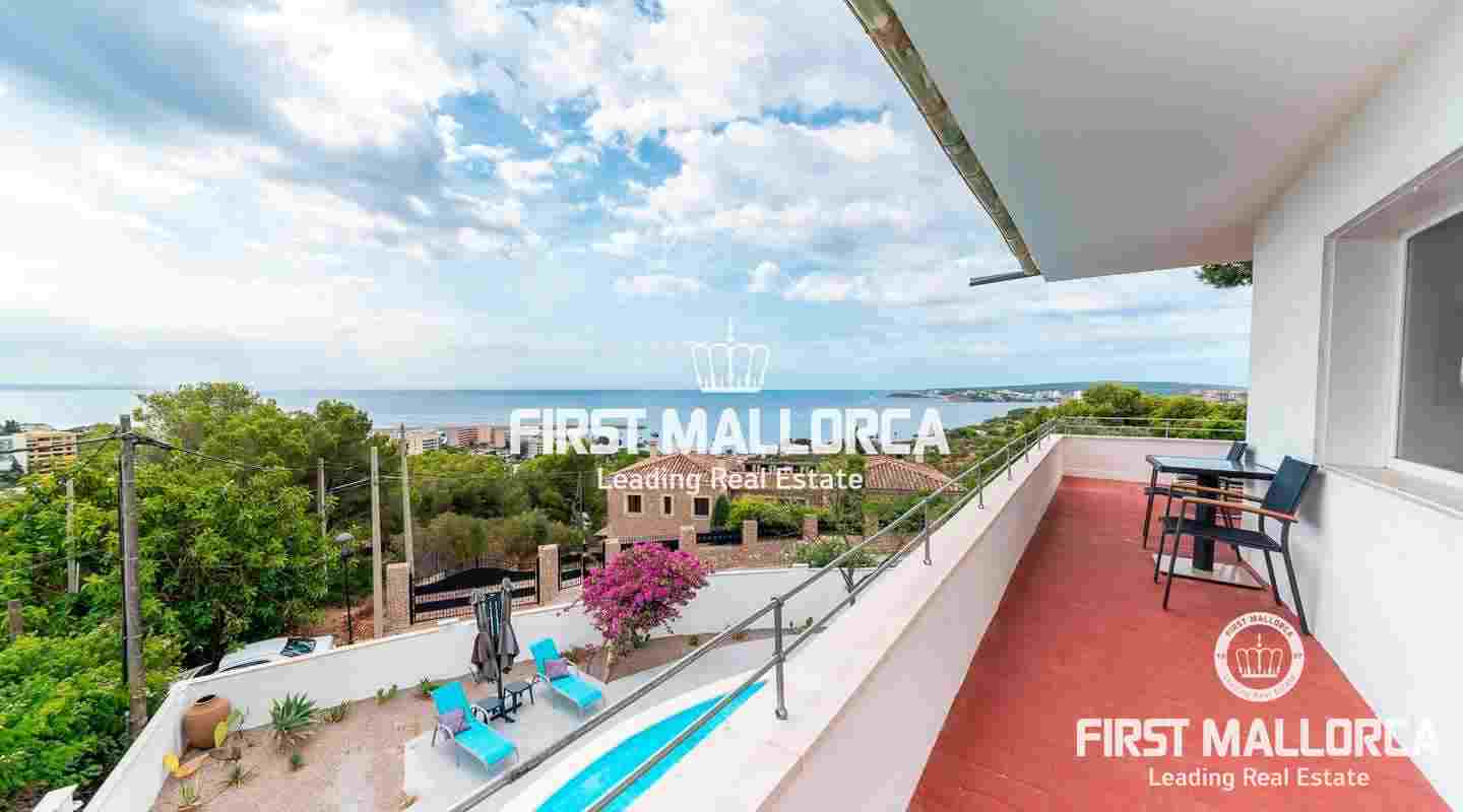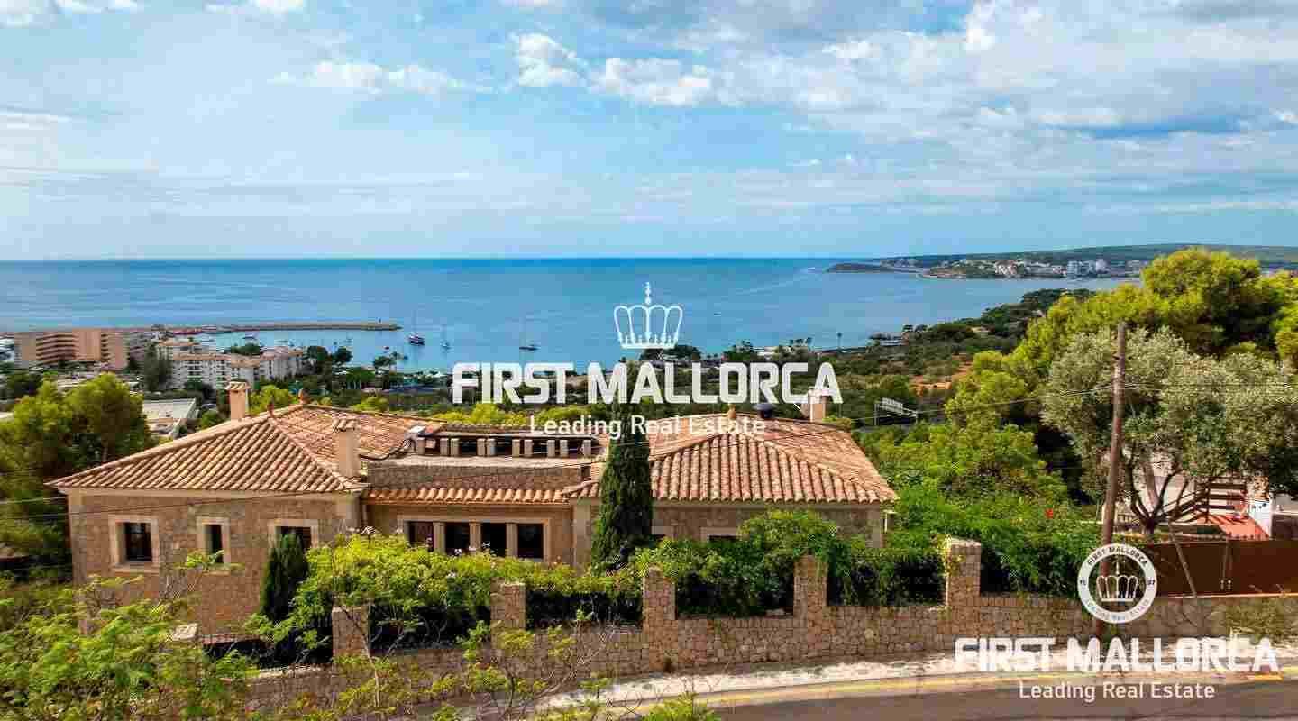 The villa is located in Costa d'en Blanes above the noble port of Puerto Portals and offers an excellent view over the entire bay of Palma. The orientation of the property invites you to enjoy the Mallorcan sun all day while looking directly at the port of Puerto Portals and Palmanova. The property currently has 3 bedrooms and a constructed area of almost 350 square meters, which can be expanded by 150 square meters. Further features: air conditioning hot / cold, guest apartment, garage, outside parking space, laundry room and various storage rooms. Costa d'en Blanes is a quiet residential area just minutes from the exclusive marina of Puerto Portals. The area offers 24-hour security, various tennis courts, private parking and access to Costa d'en Blanes beach. The center of Palma can be reached in just 10 minutes and the international airport in less than 20 minutes by car. There are several international private schools and golf courses in the area.