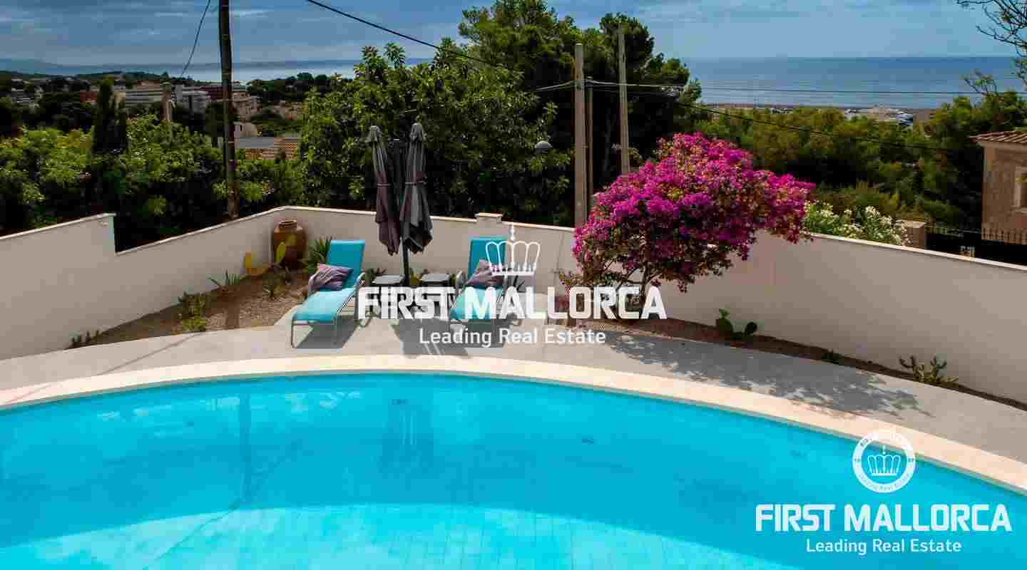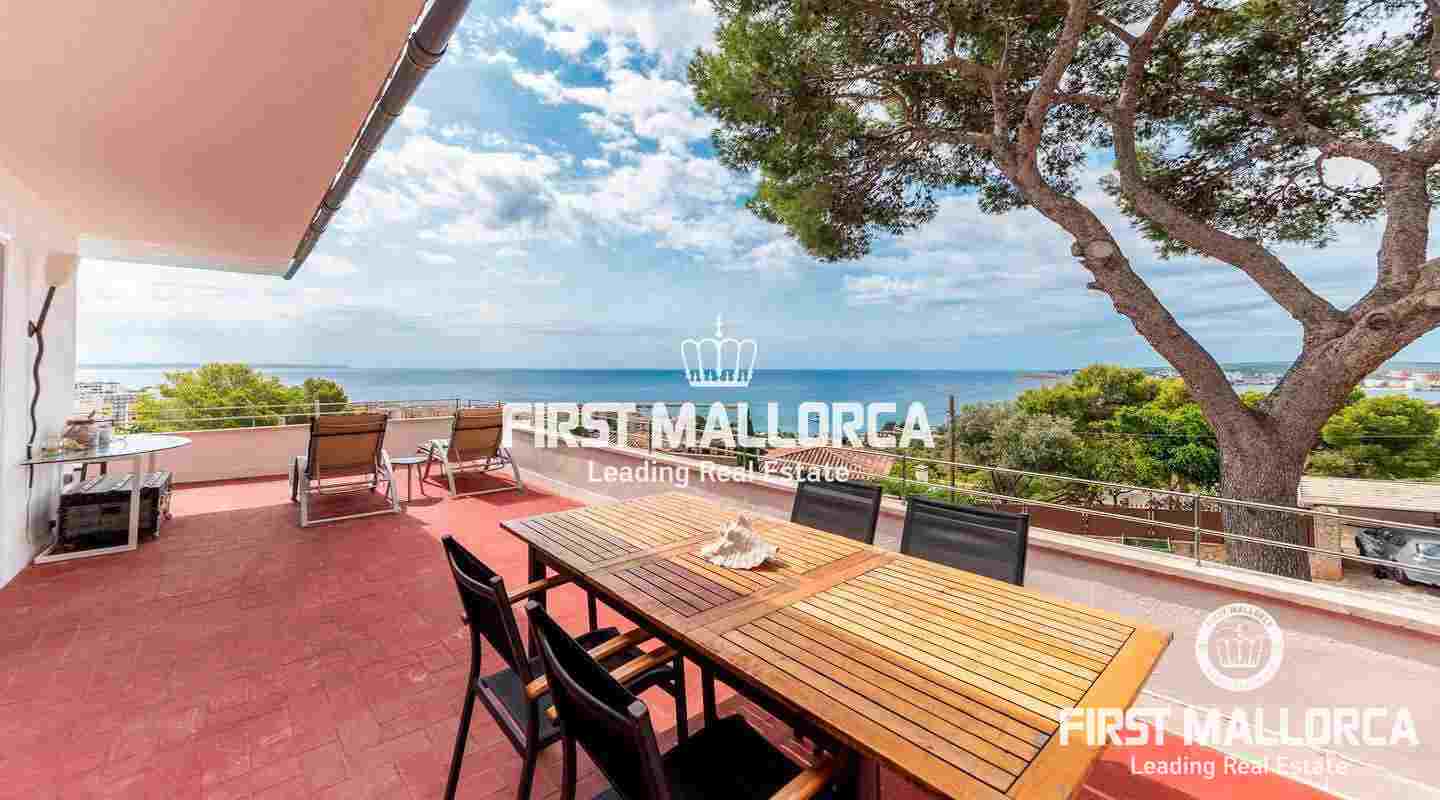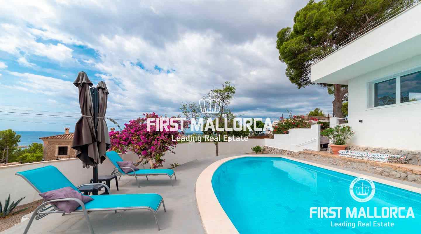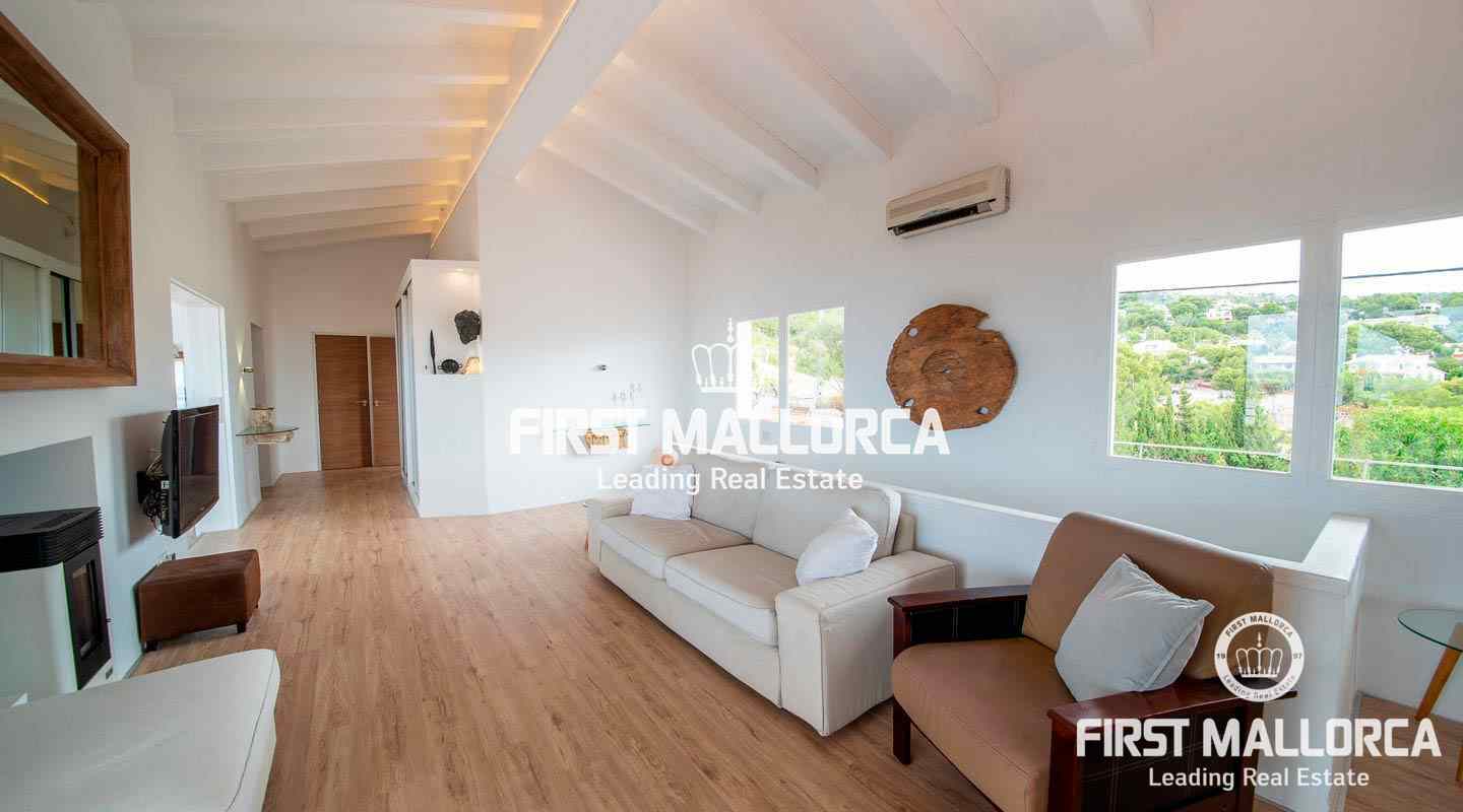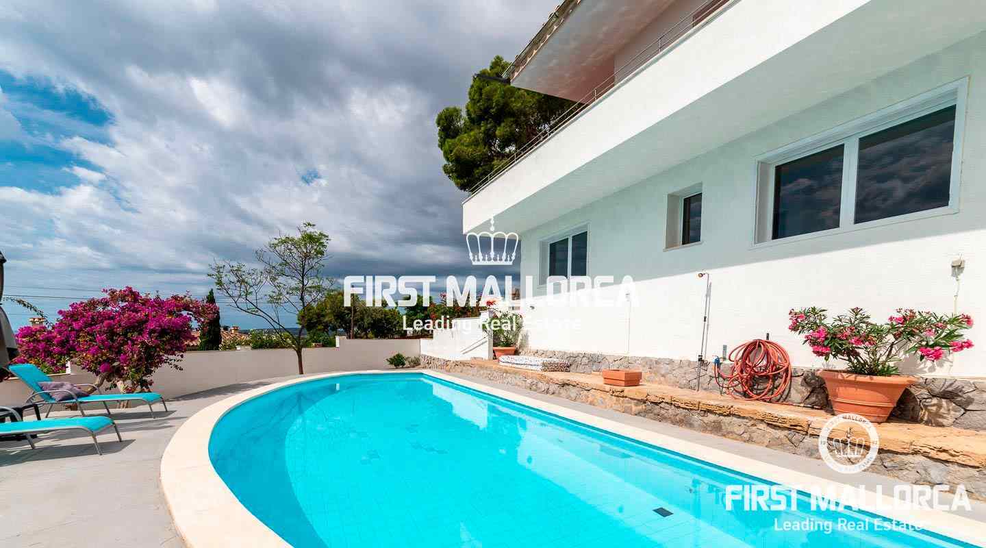 The villa is located in Costa d'en Blanes above the noble port of Puerto Portals and offers an excellent view over the entire bay of Palma. The orientation of the property invites you to enjoy the Mallorcan sun all day while looking directly at the port of Puerto Portals and Palmanova. The property currently has 3 bedrooms and a constructed area of almost 350 square meters, which can be expanded by 150 square meters. Further features: air conditioning hot / cold, guest apartment, garage, outside parking space, laundry room and various storage rooms. Costa d'en Blanes is a quiet residential area just minutes from the exclusive marina of Puerto Portals. The area offers 24-hour security, various tennis courts, private parking and access to Costa d'en Blanes beach. The center of Palma can be reached in just 10 minutes and the international airport in less than 20 minutes by car. There are several international private schools and golf courses in the area.