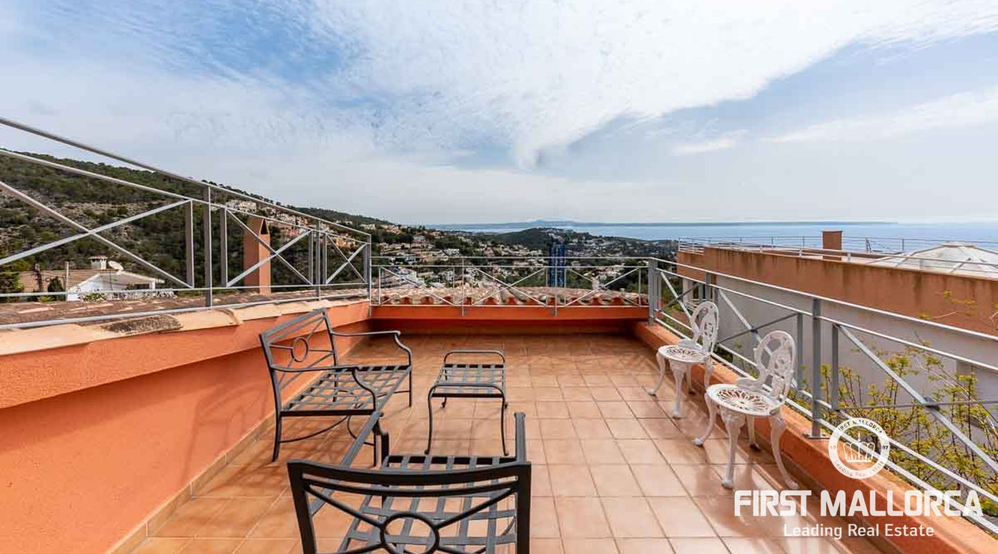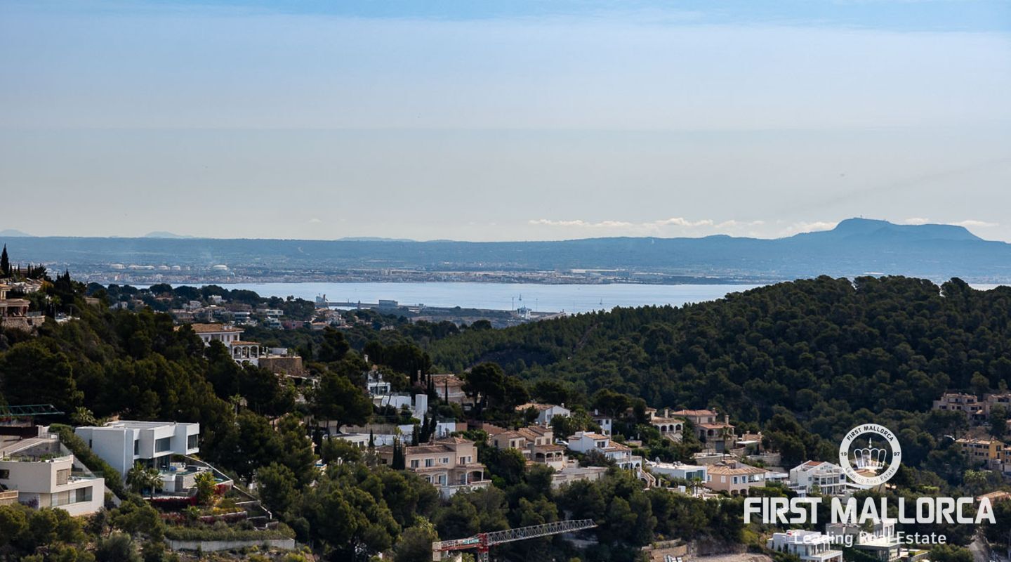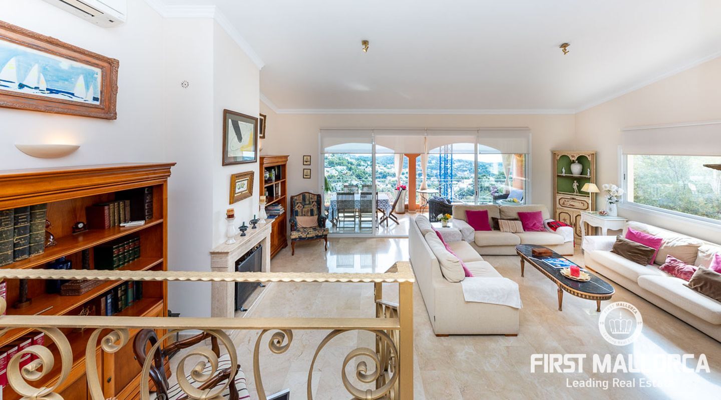 This Mediterranean-style villa with impressive sea views and holiday rental licence is located in a quiet area of Costa d'en Blanes and is ideal for families. On the ground floor, the property impresses with an open-plan living and dining area with high ceilings. The connection to the spacious terrace is flowing. From here you have an impressive view over the area, mountains and all the way to the bay of Palma. In the main house, the property has a total of 4 bedrooms and 2 bathrooms. Another highlight is the elevated and sheltered outdoor area behind the property with pool, covered terrace and separate guest house. This level offers stunning sea views and invites you to enjoy the sun of Mallorca and the Mediterranean outdoor lifestyle.