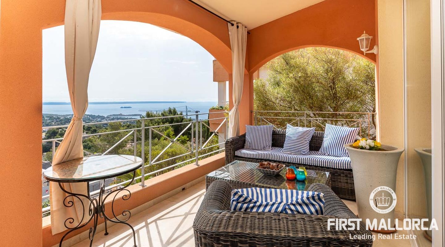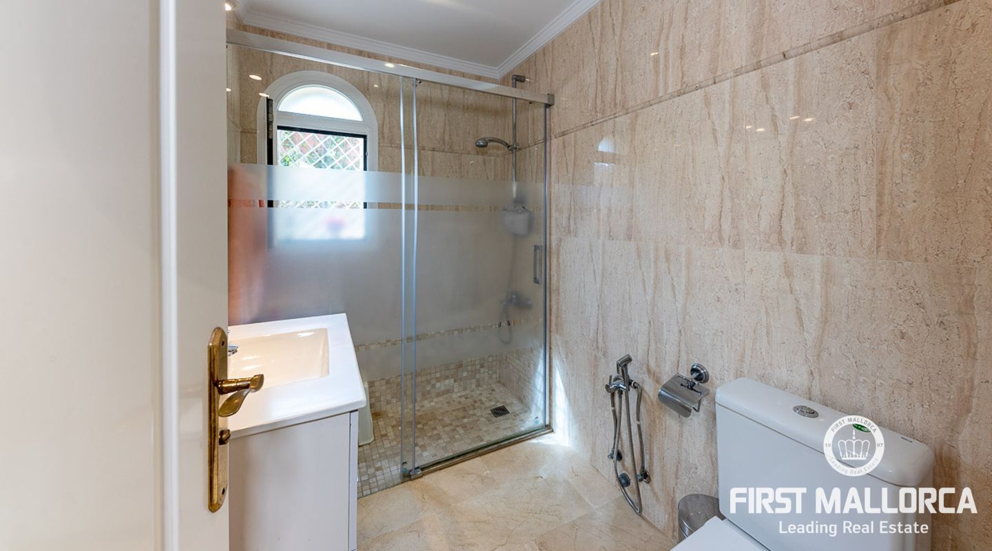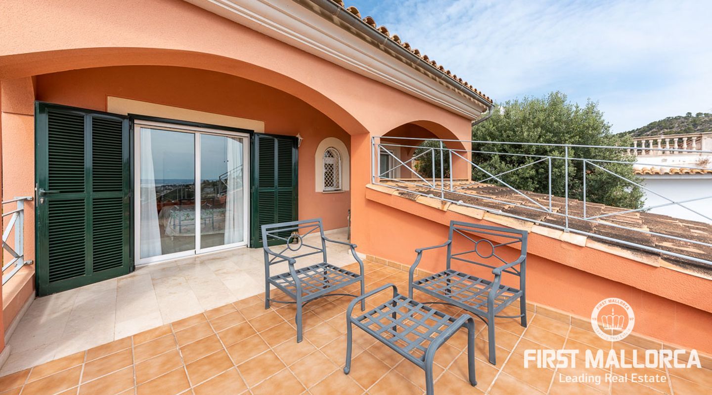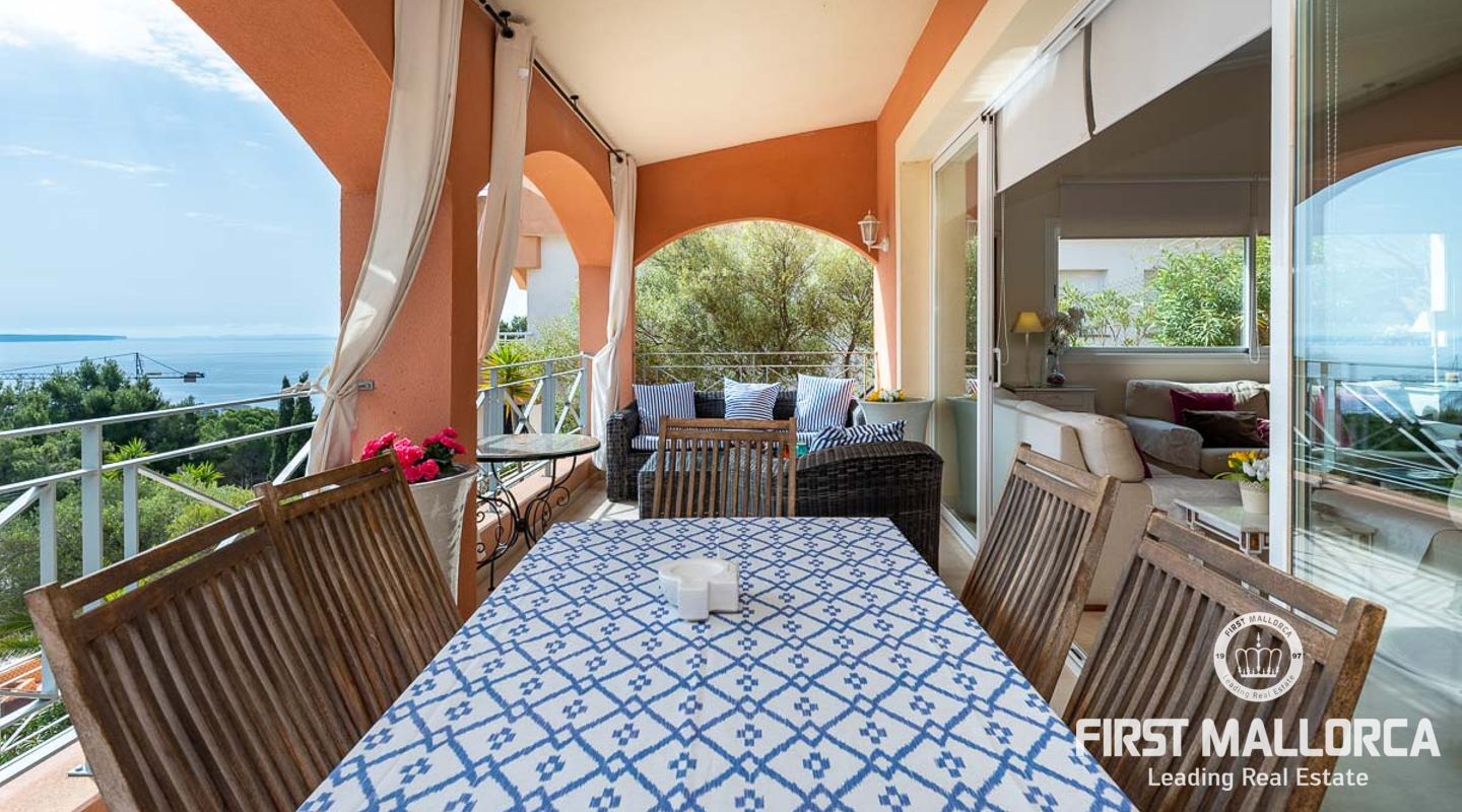 This Mediterranean-style villa with impressive sea views and holiday rental licence is located in a quiet area of Costa d'en Blanes and is ideal for families. On the ground floor, the property impresses with an open-plan living and dining area with high ceilings. The connection to the spacious terrace is flowing. From here you have an impressive view over the area, mountains and all the way to the bay of Palma. In the main house, the property has a total of 4 bedrooms and 2 bathrooms. Another highlight is the elevated and sheltered outdoor area behind the property with pool, covered terrace and separate guest house. This level offers stunning sea views and invites you to enjoy the sun of Mallorca and the Mediterranean outdoor lifestyle.