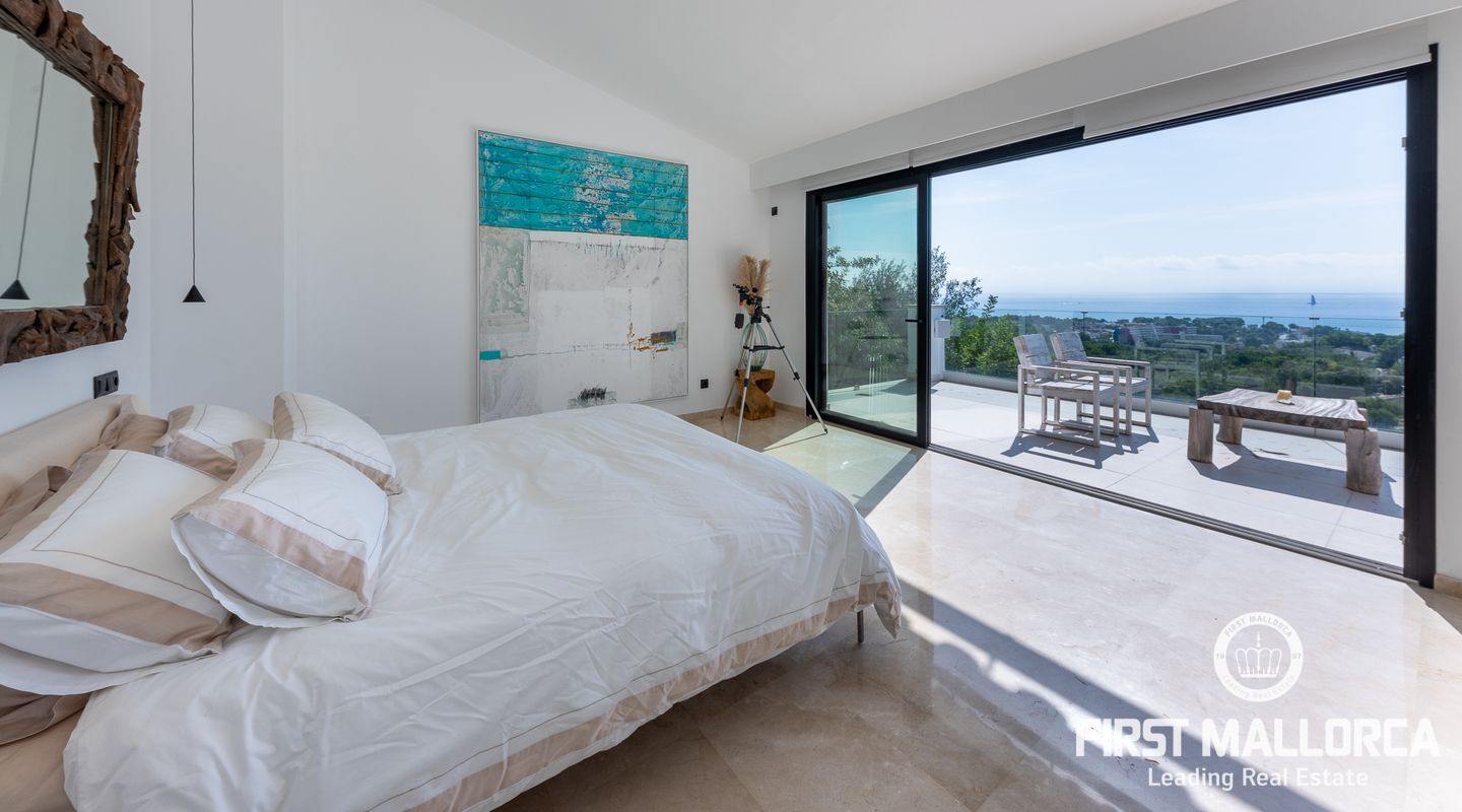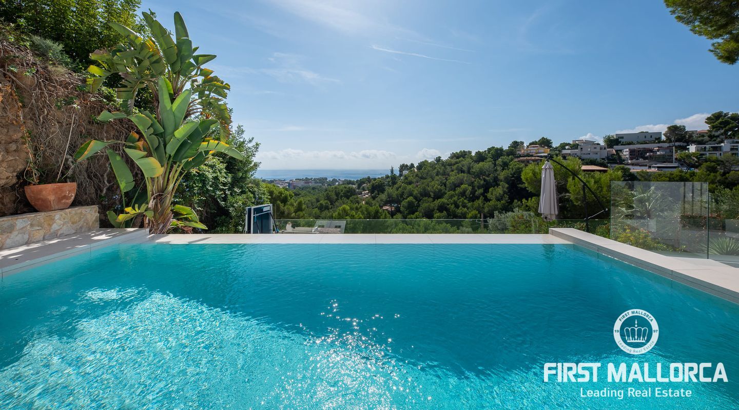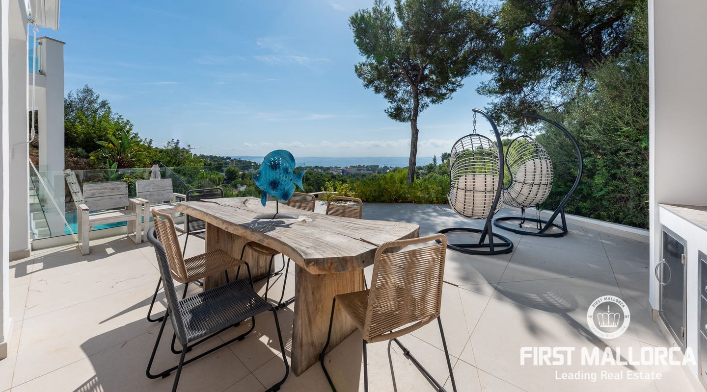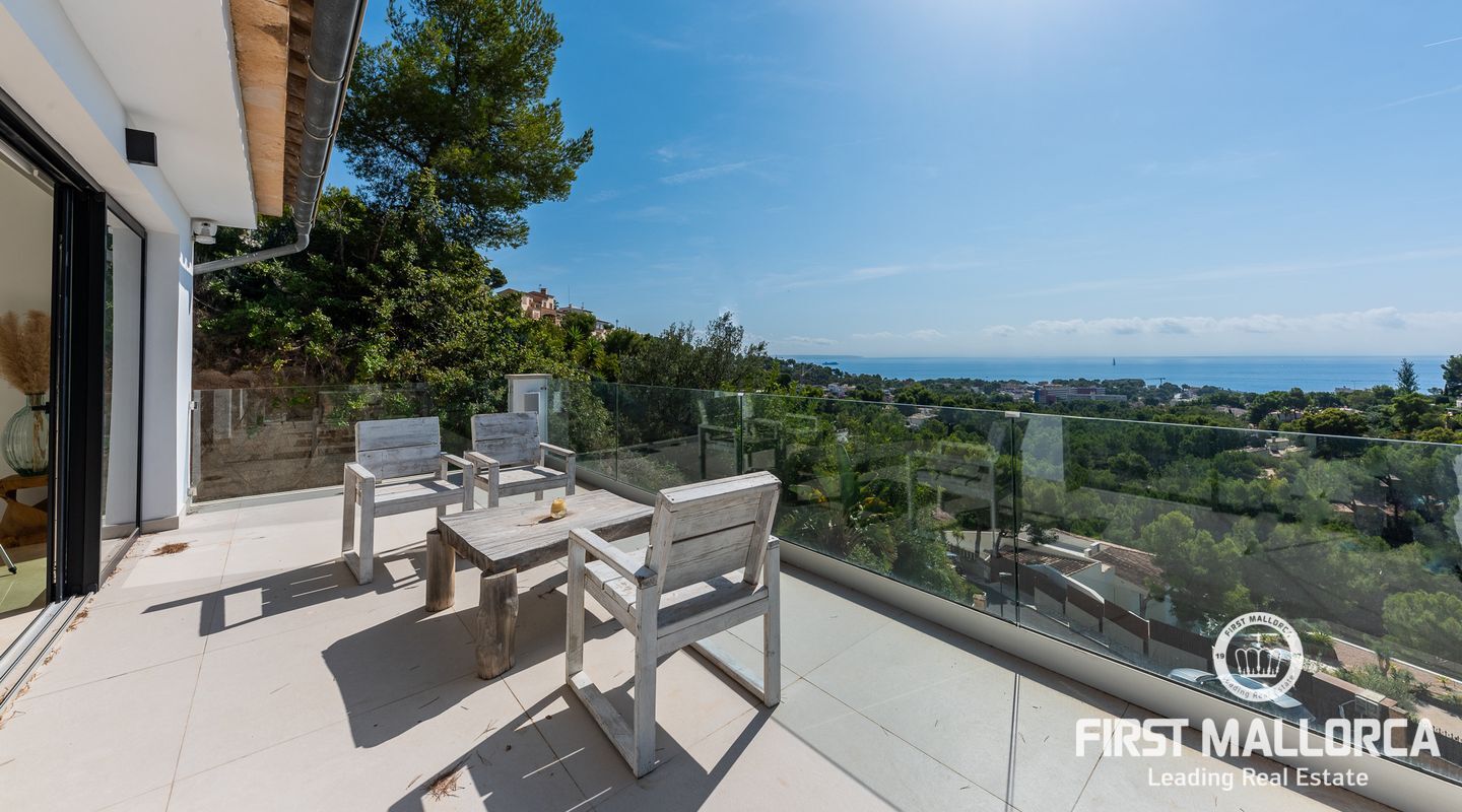 This wonderful and completely renovated villa presents itself technically as well as visually in perfect condition. You will live here comfortably and carefree, whether you want to use the property as a holiday residence or as your first home. You can comfortably take your lift to the different floors and enjoy one of the most beautiful views of Mallorca over the Mediterranean Sea and the Bay of Palma, both from inside and outside and on every level. This view is framed by a lot of green nature and this also makes this sought-after location very unique. Spend wonderful moments in the very spacious, well-equipped and private outdoor areas and in winter equally cosy evenings by the fireplace. Last but not least, the official holiday rental licence makes this property an all-round good investment.